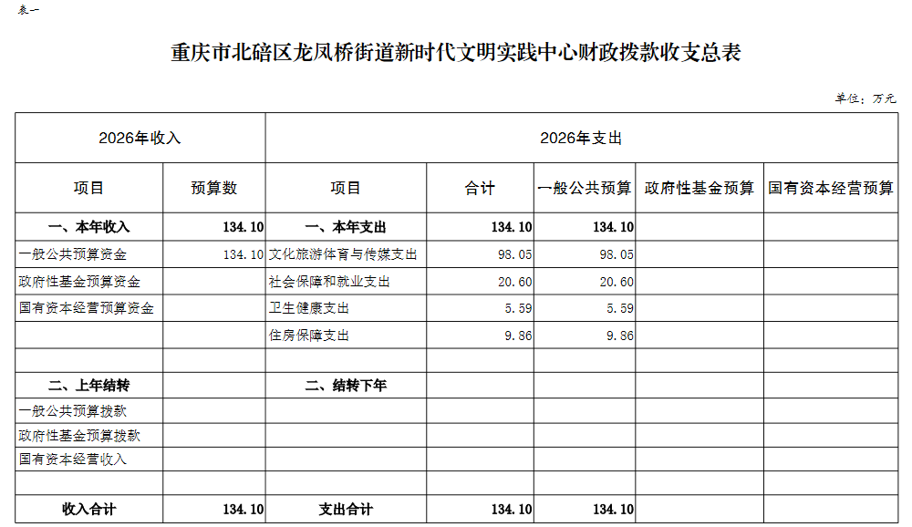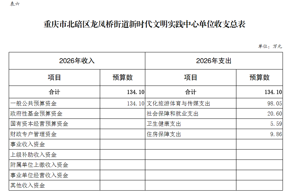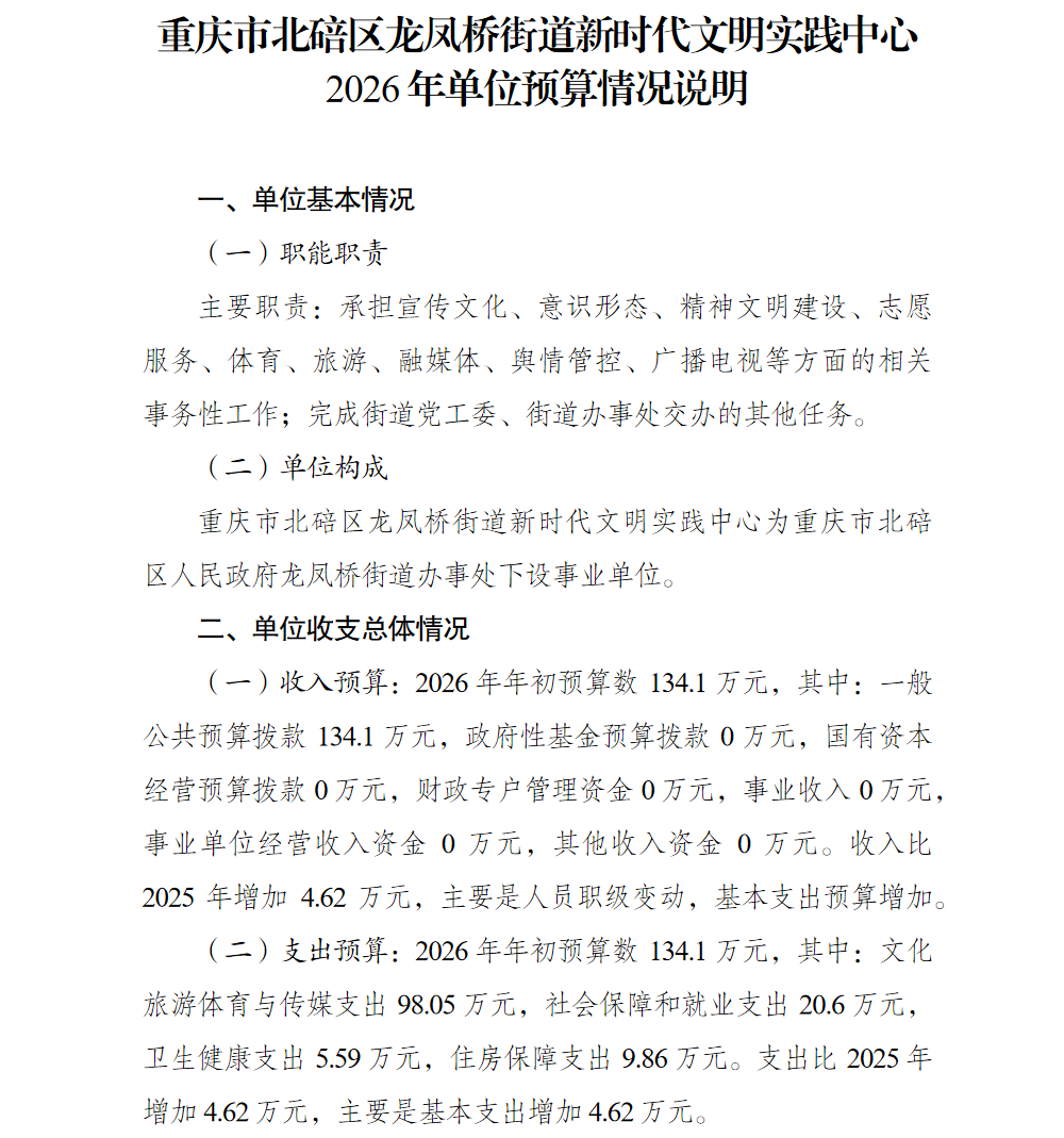 重庆市北碚区龙凤桥街道新时代文明实践中心2026年单位预算情况说明及附表.pdf