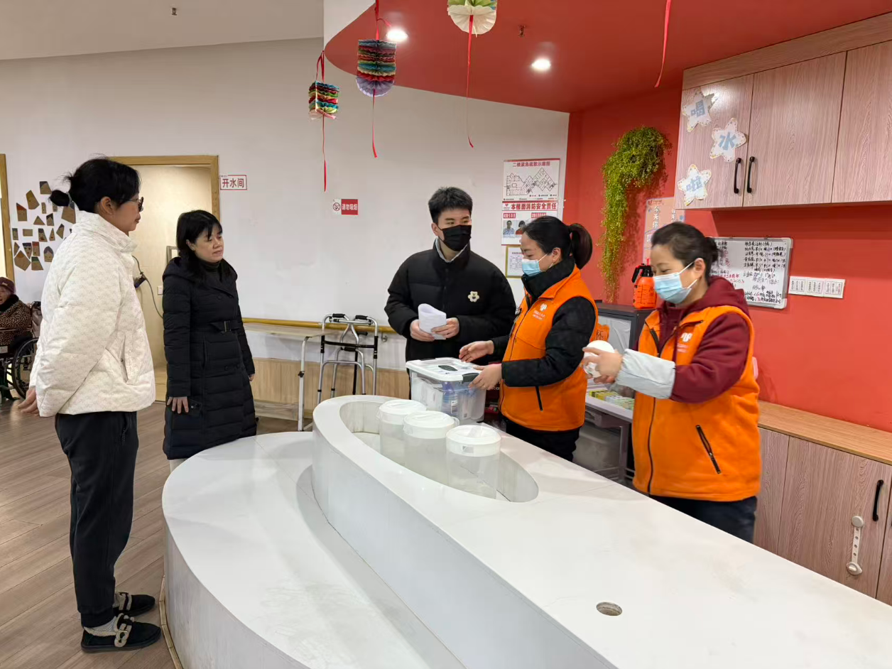 二、1月19日,区疾控中心检查街道养老服务中心,重点查看老年人日常照料服务流程,应急物资储备,院感防控措施落实情况等,切实保障院内老年人安全、健康,街道秦委员陪同。