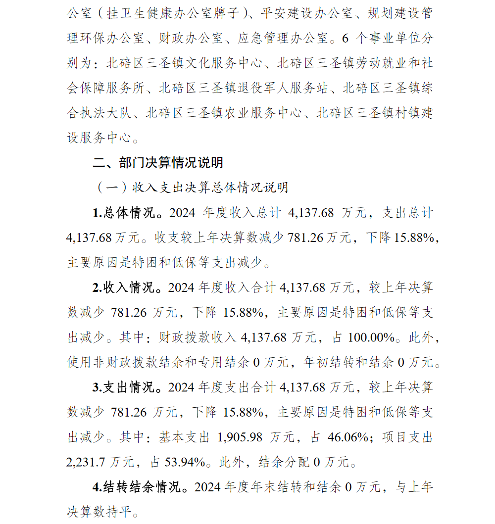 重庆市北碚区三圣镇人民政府2024年部门决算情况说明
