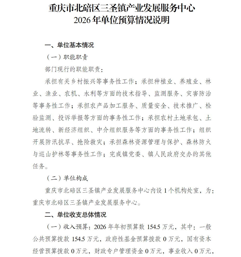 重庆市北碚区三圣镇产业发展服务中心2026年单位预算情况说明及附表.pdf