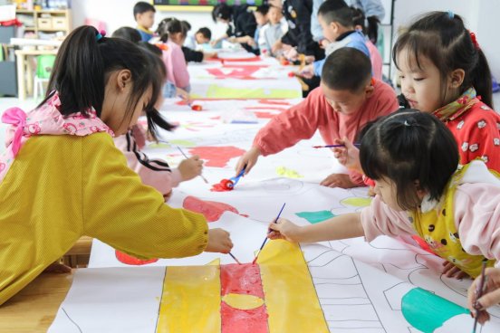 近日,三圣镇联合辖区幼儿园精心组织“长卷绘祖国,小手涂满爱”主题活动。32名小朋友以10米长卷为创意载体,用五彩画笔描绘爱国符号,在沉浸式创作中完成了一堂生动的爱国启蒙课。