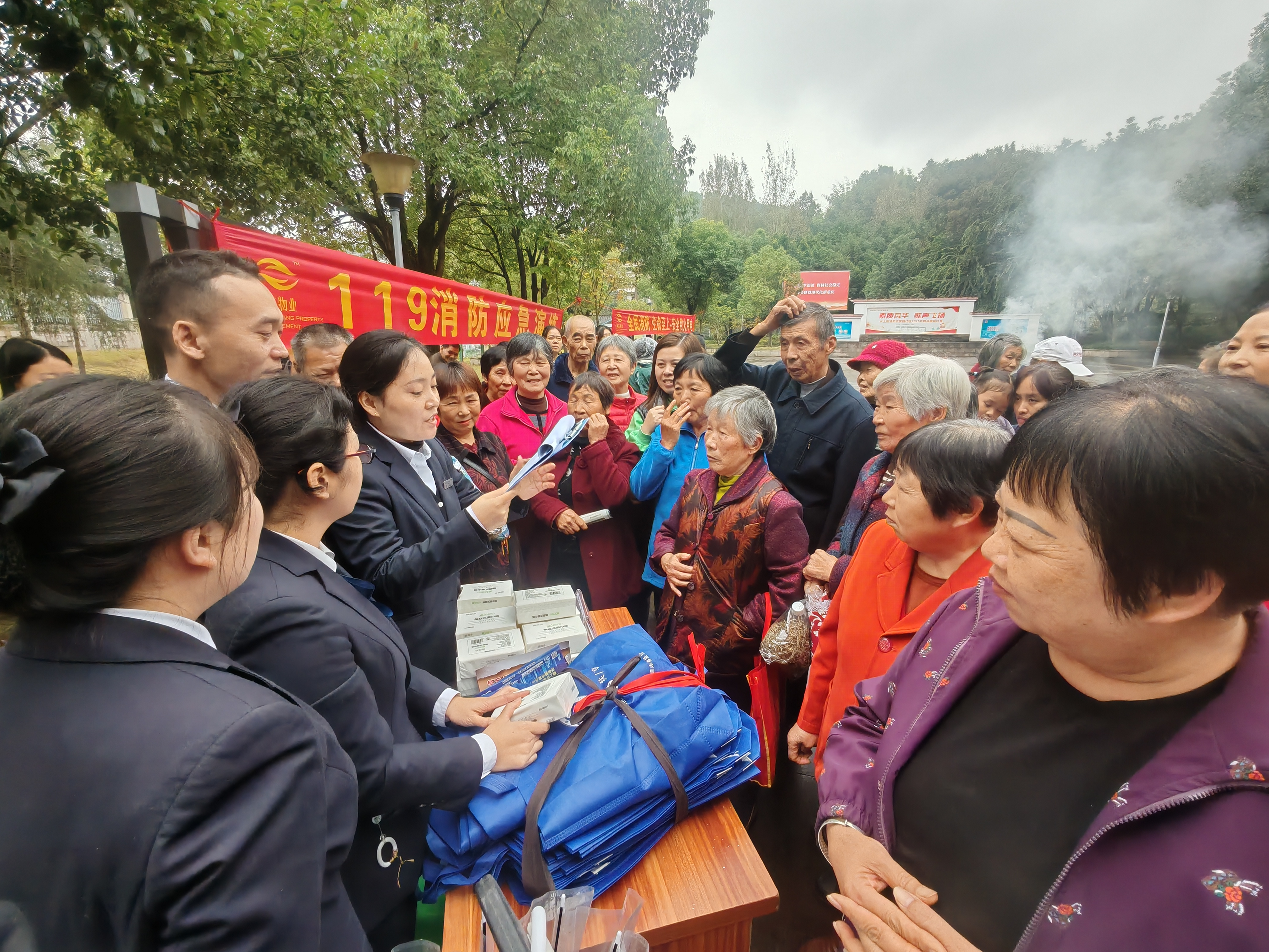通过现场消防演练和消防器材实操、派发宣传单、消防知识问答等形式向居民普及火灾防控相关知识,并帮助其掌握一些消防器材的使用方法。
