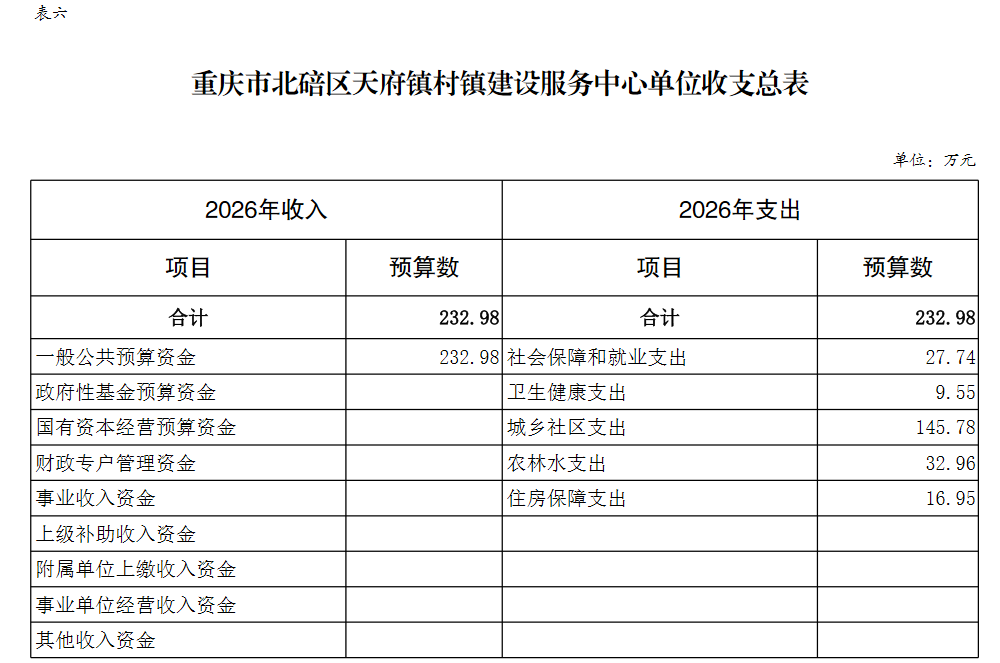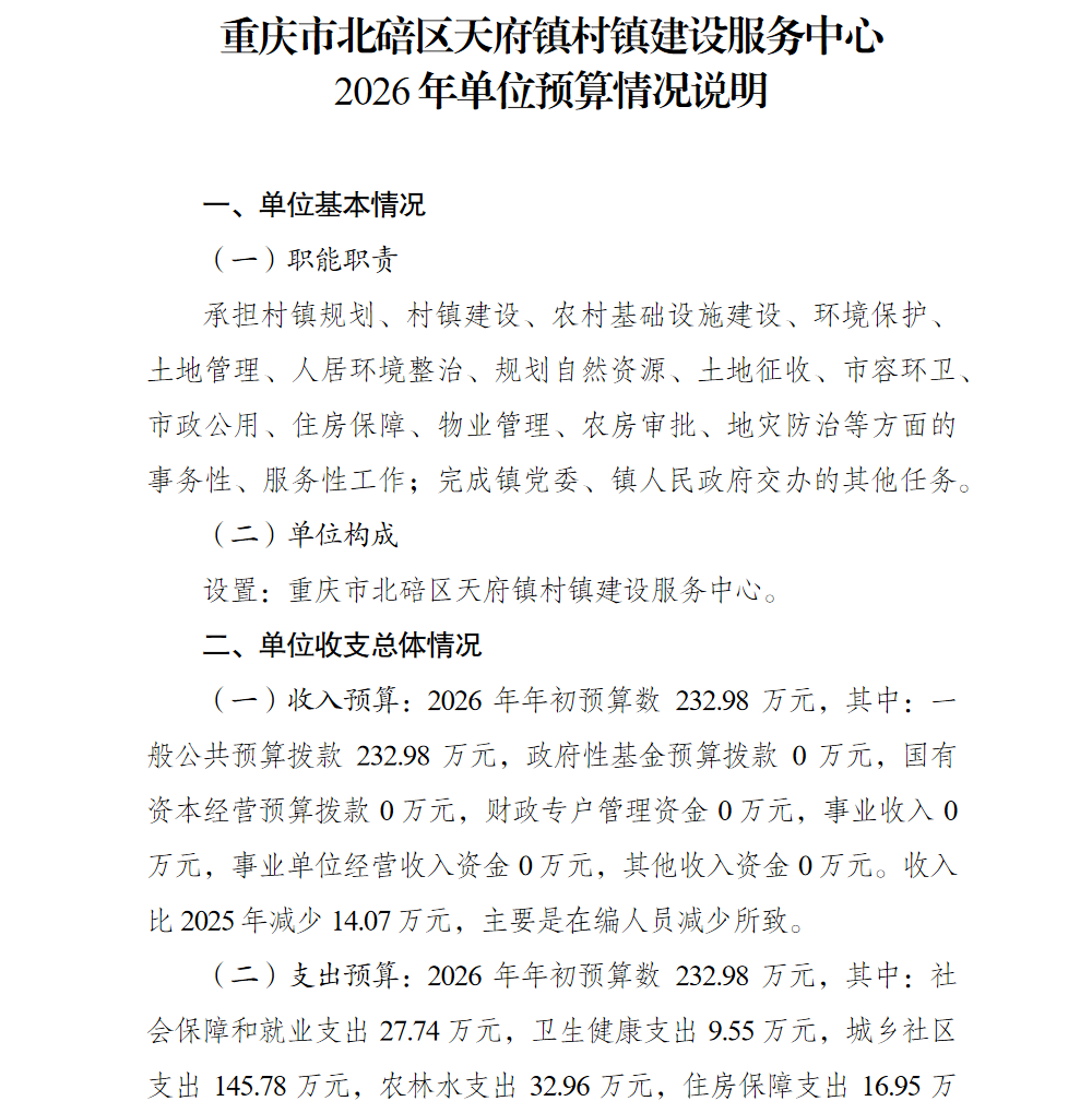 重庆市北碚区天府镇村镇建设服务中心2026年单位预算情况说明及附表.pdf