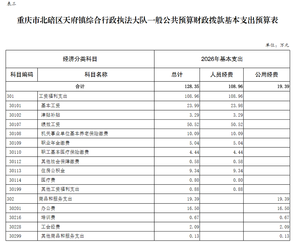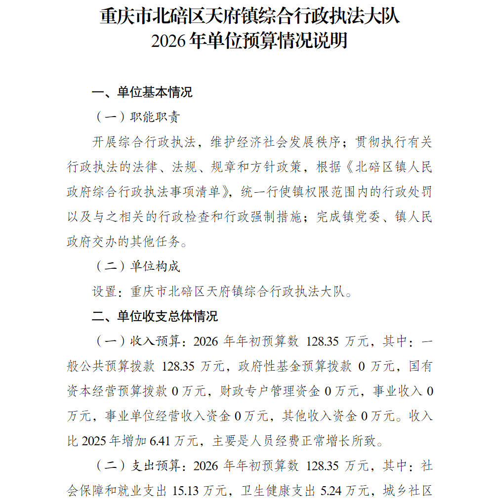 重庆市北碚区天府镇综合行政执法大队2026年单位预算情况说明及附表.pdf