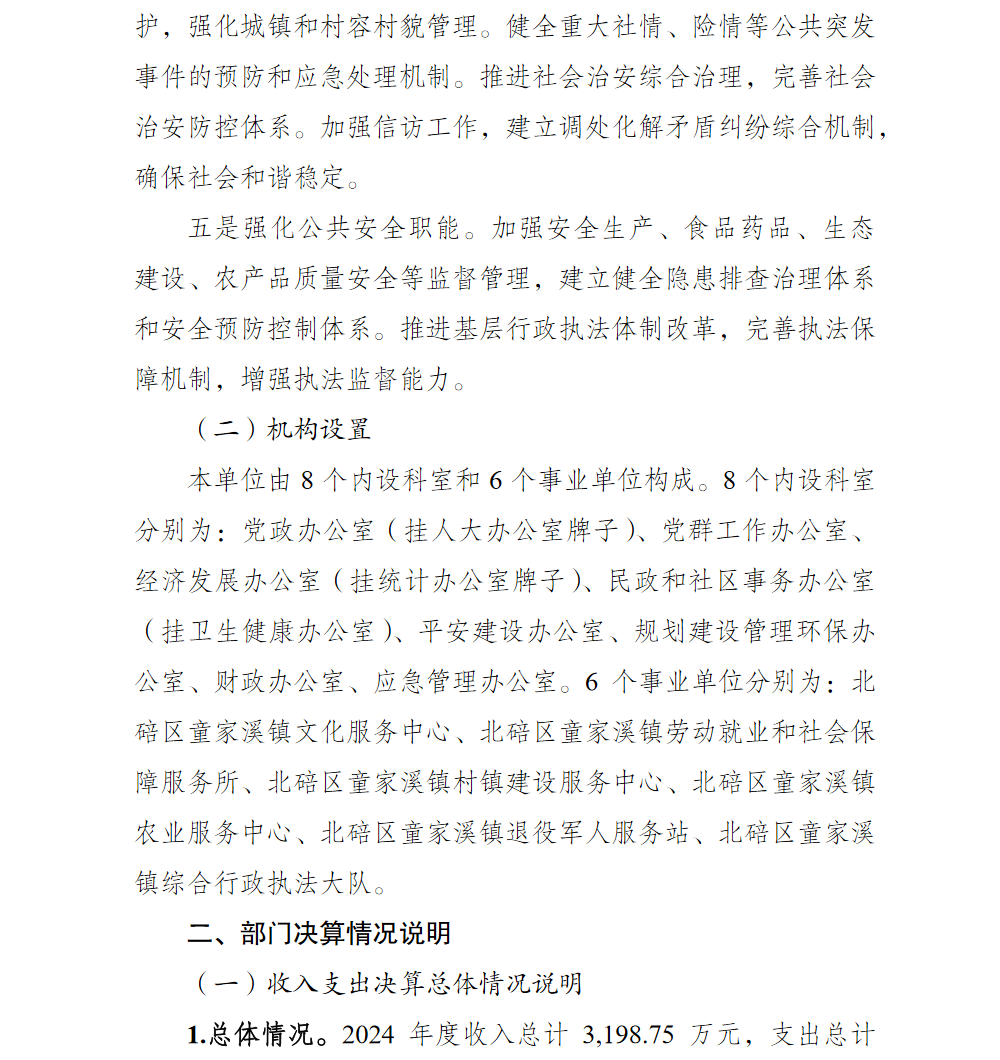 重庆市北碚区童家溪镇人民政府2024年部门决算情况说明