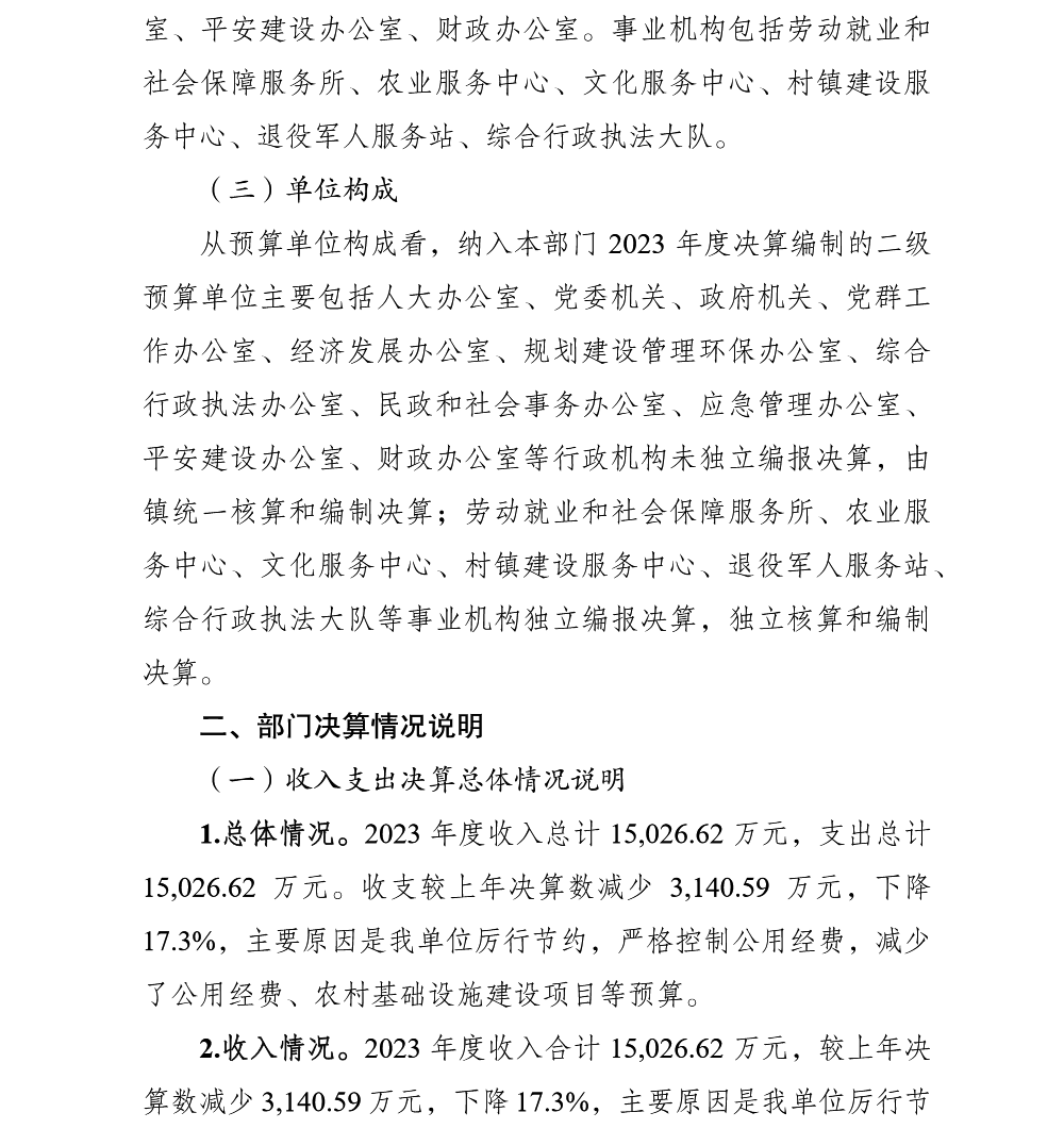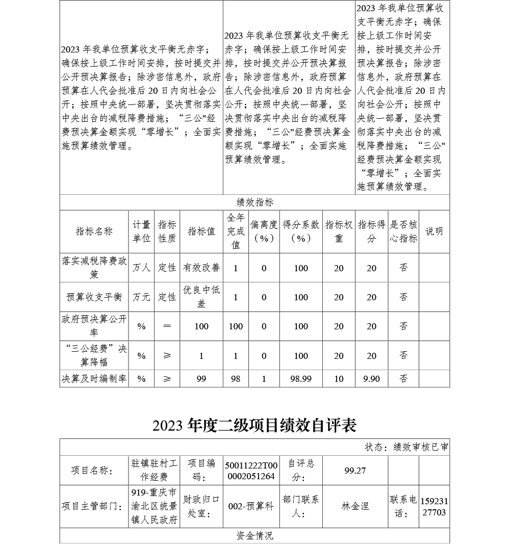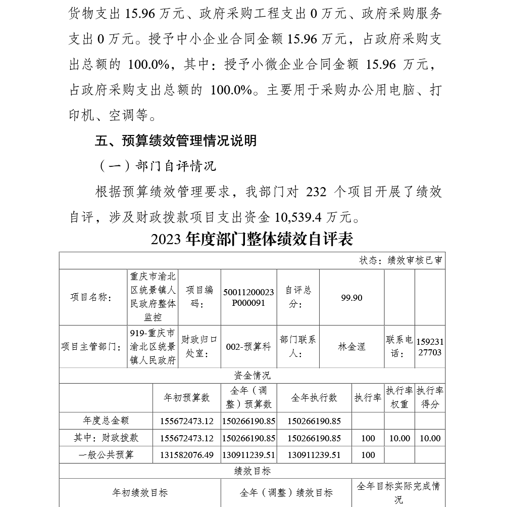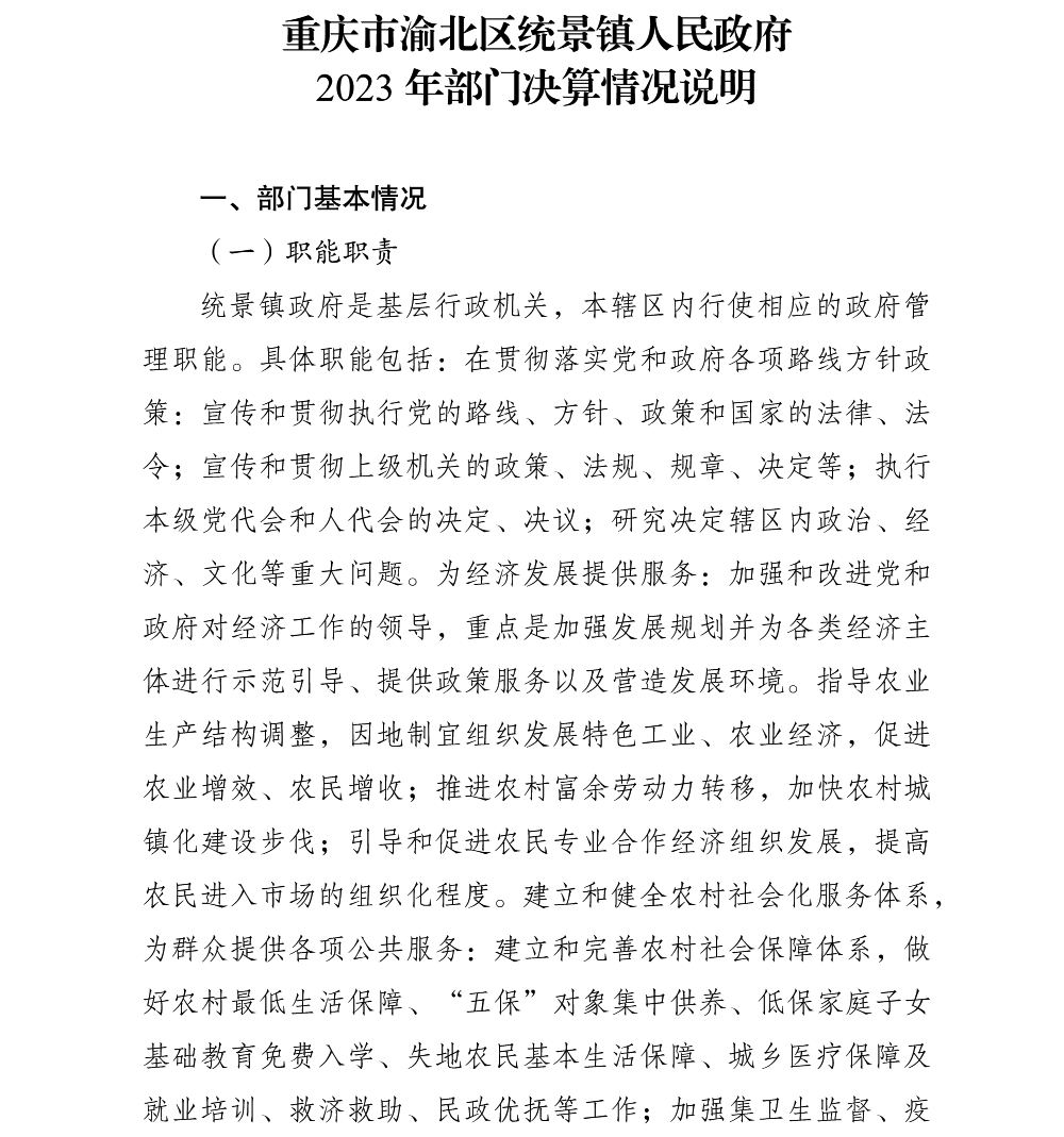 重庆市渝北区统景镇人民政府2023年部门决算公开