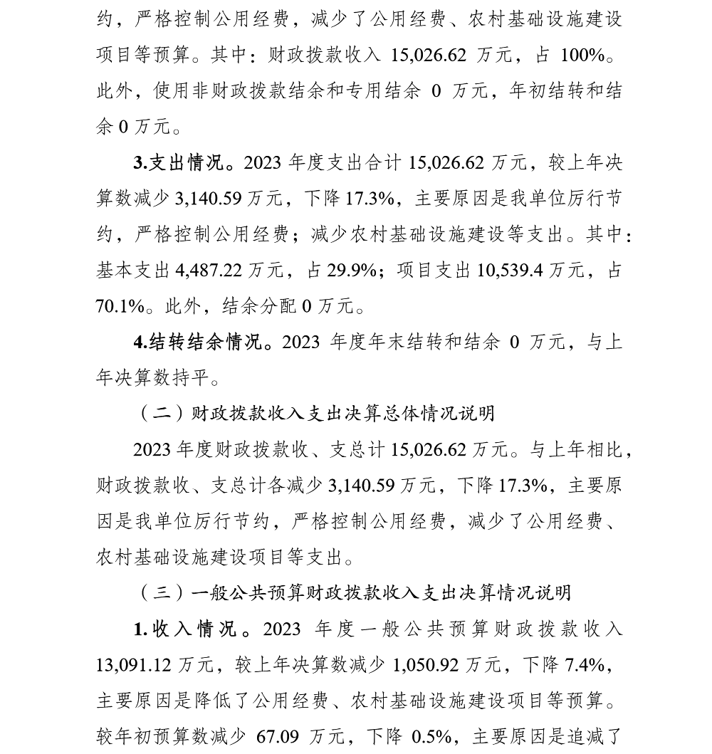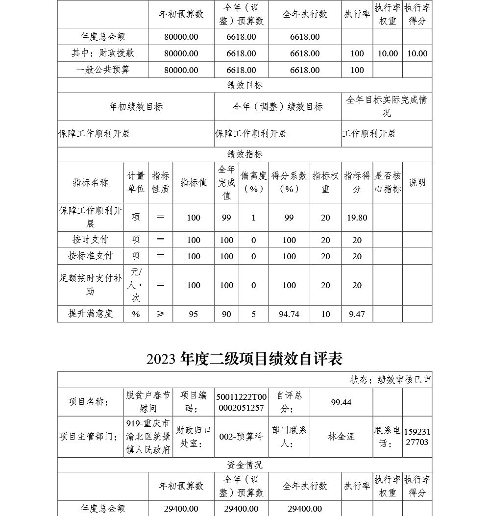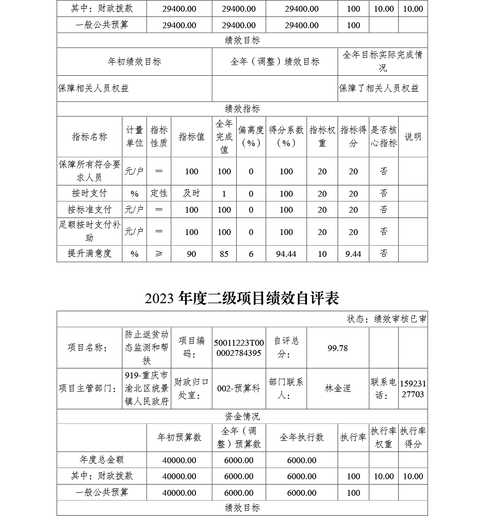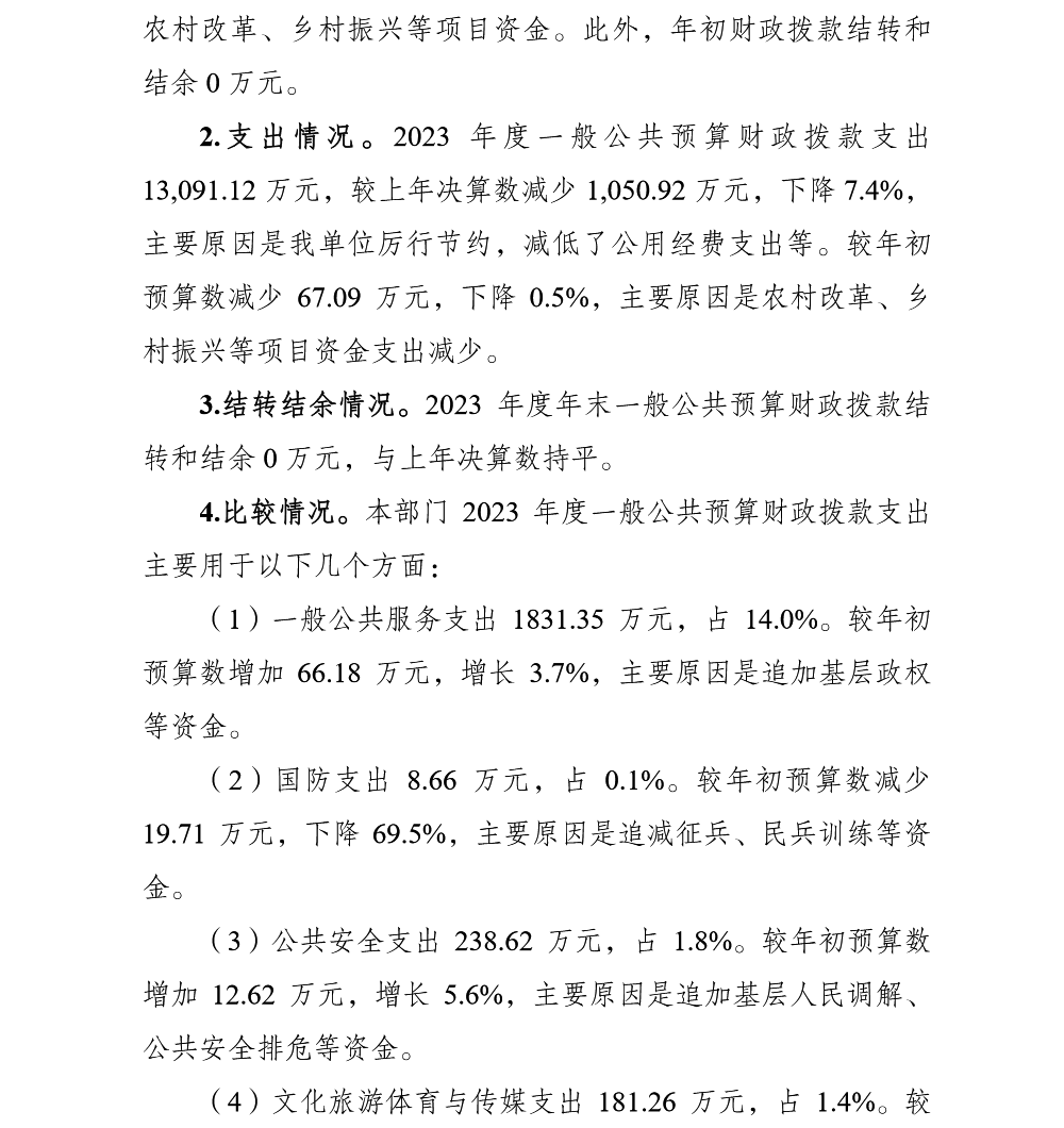重庆市渝北区统景镇人民政府2023年部门决算公开