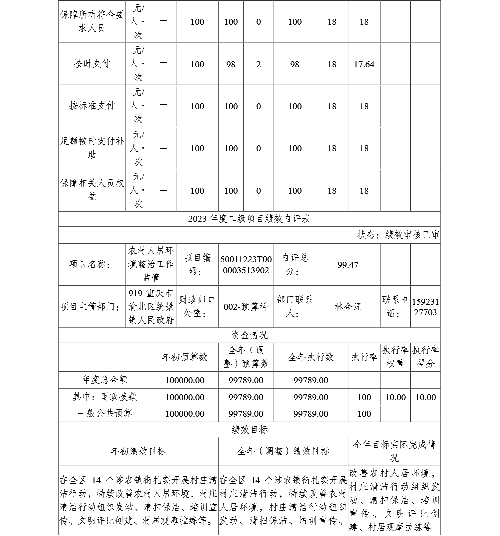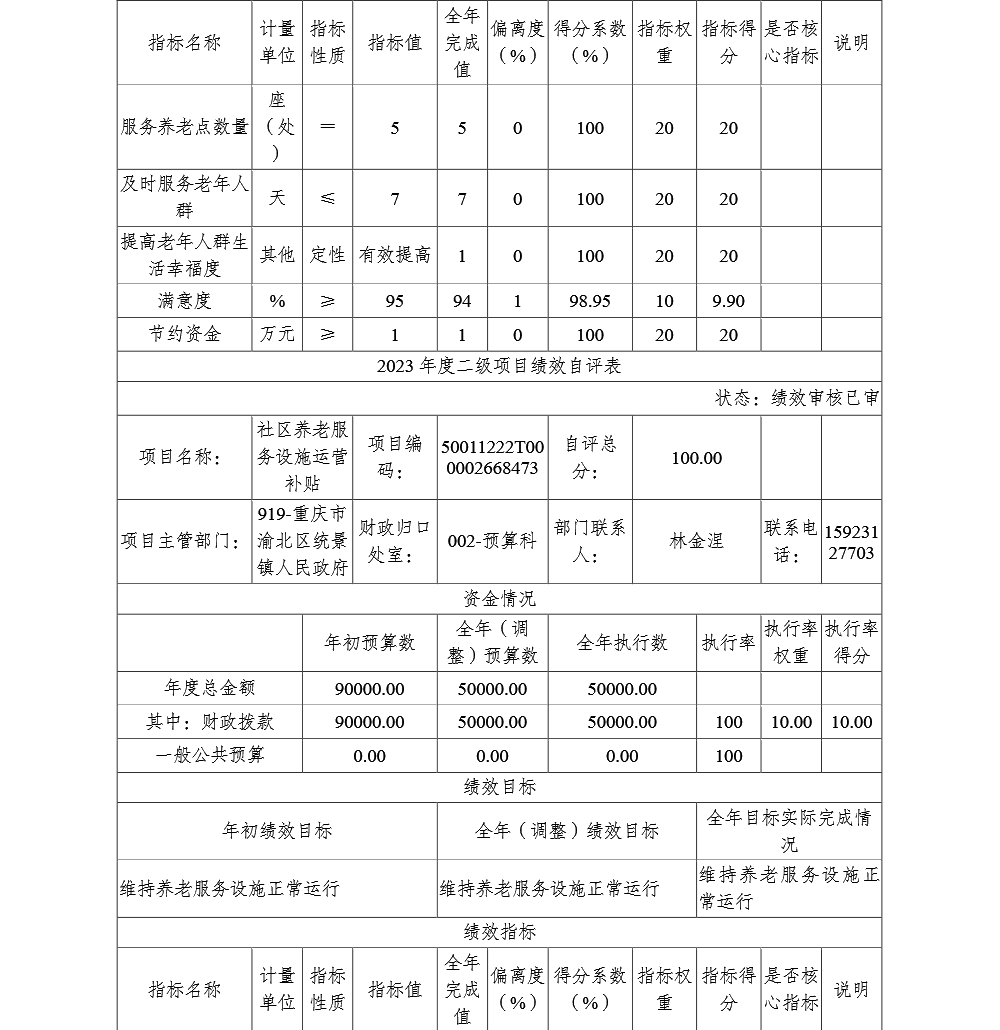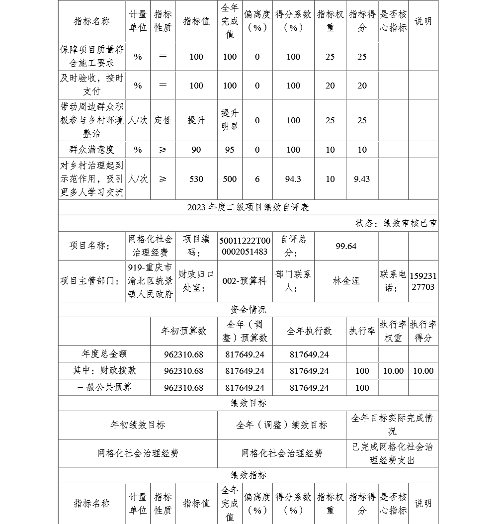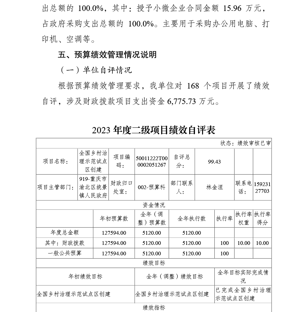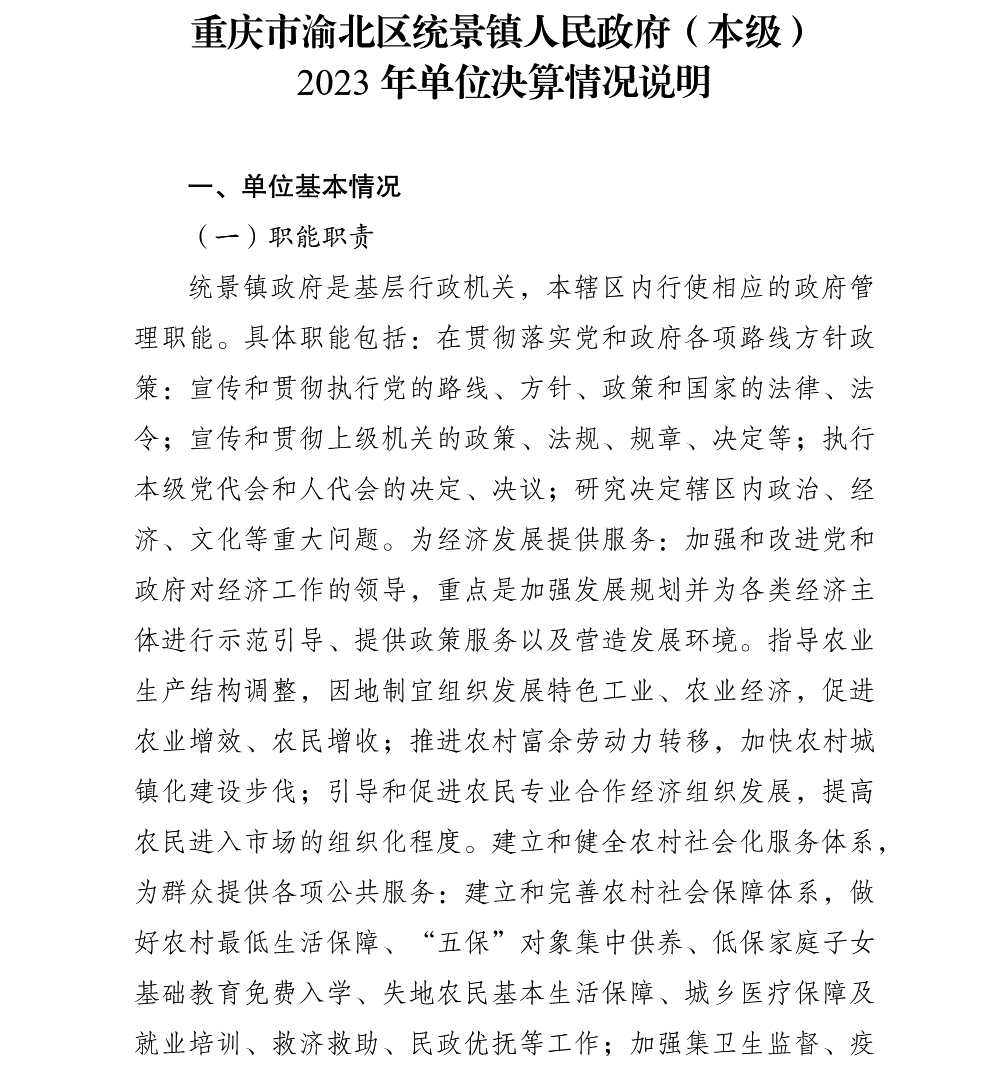 重庆市渝北区统景镇人民政府(本级)2023年部门决算公开