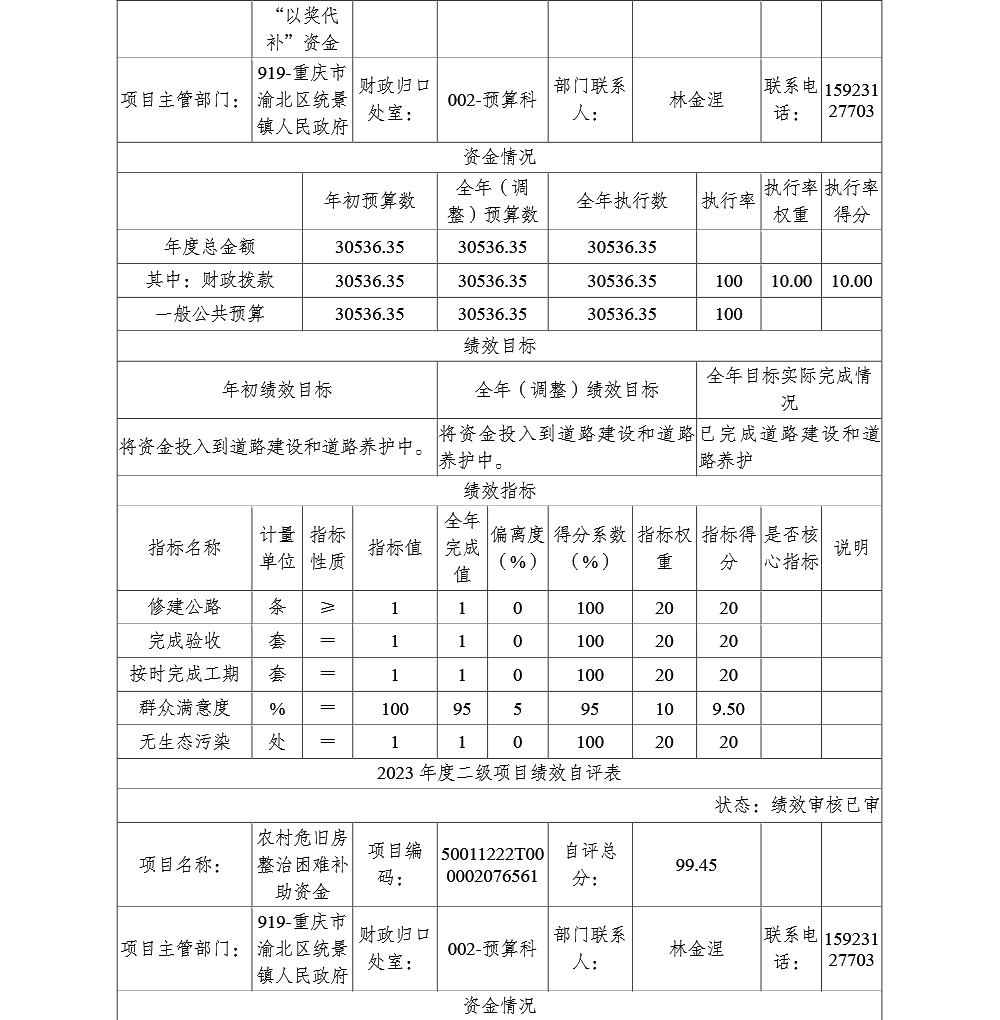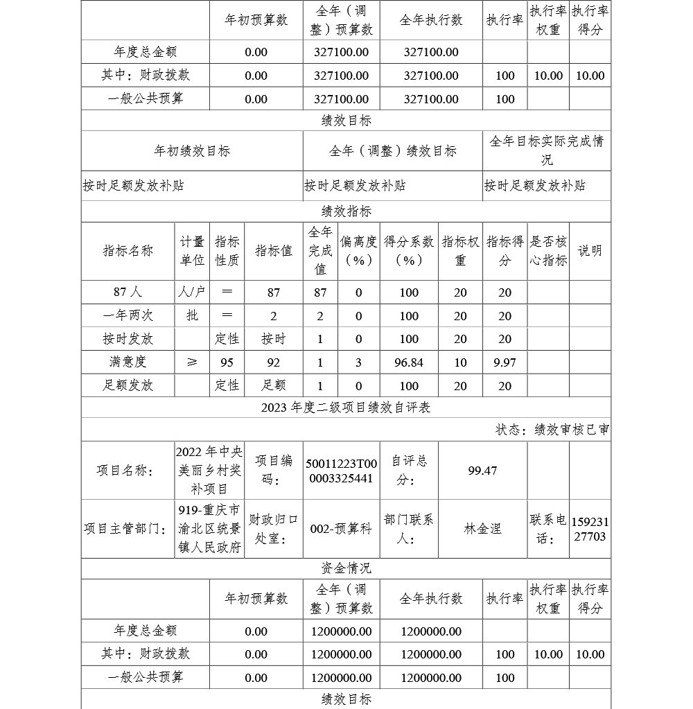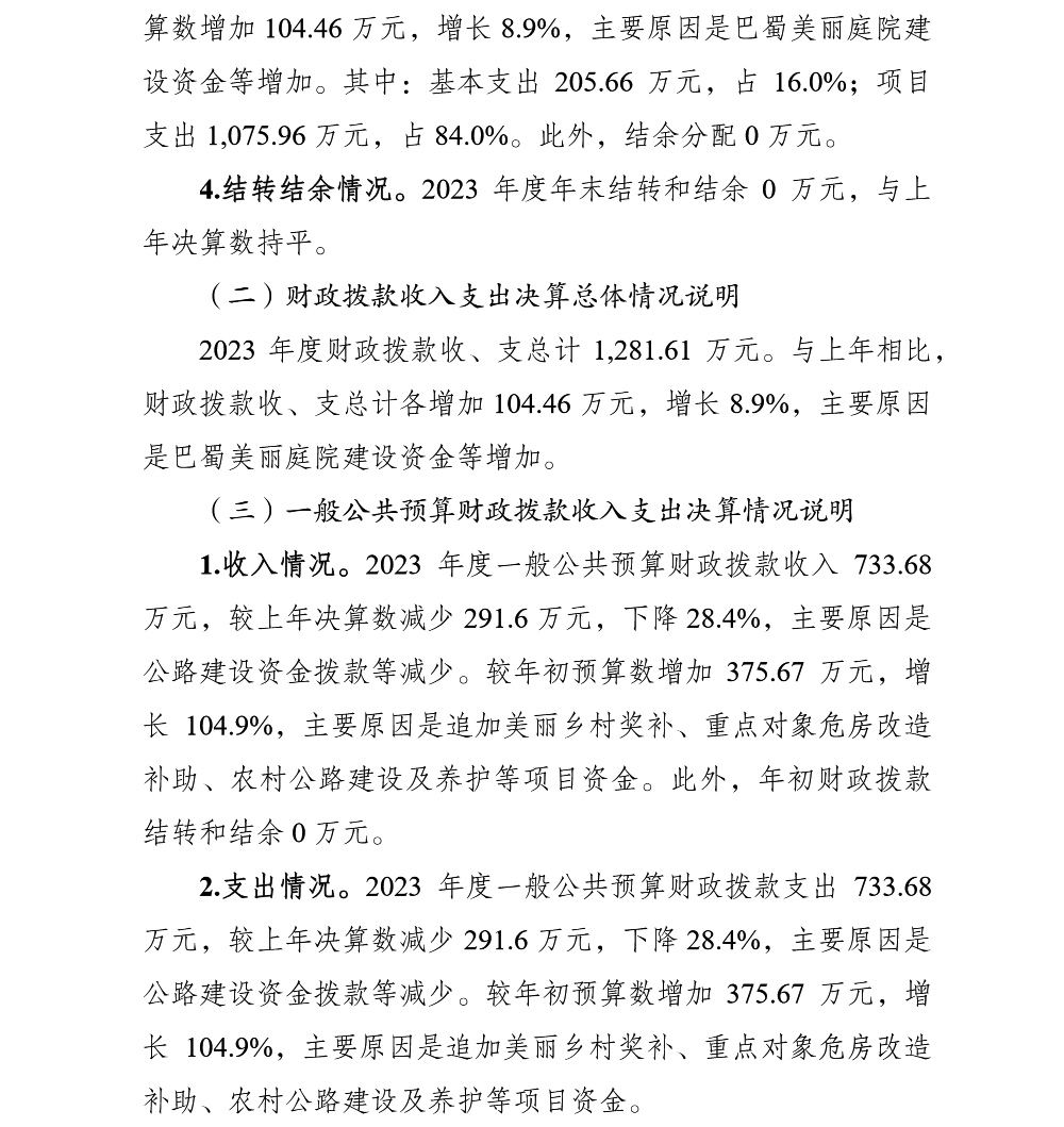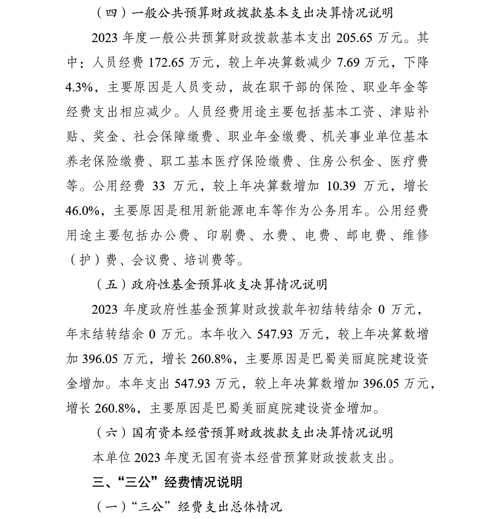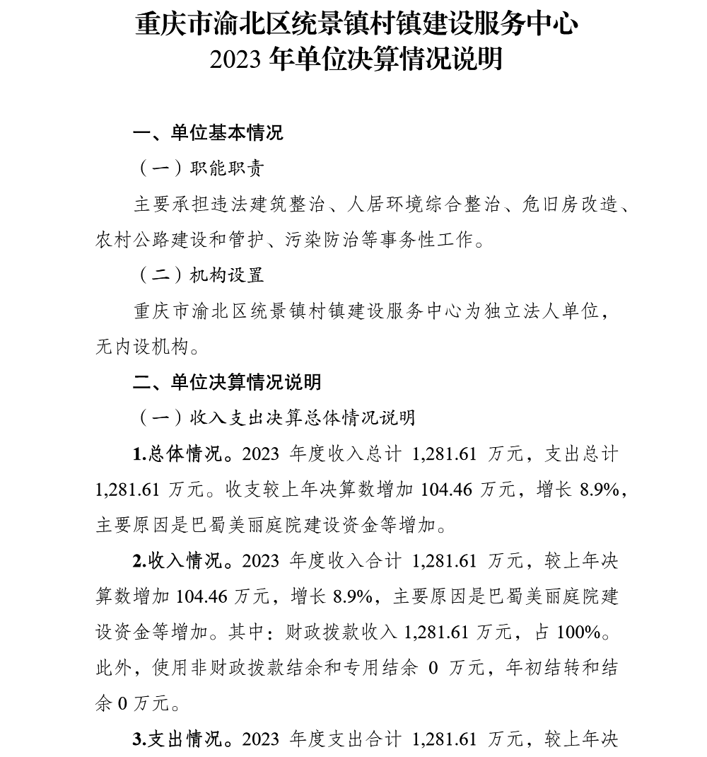 重庆市渝北区统景镇村镇建设服务中心2023年部门决算公开