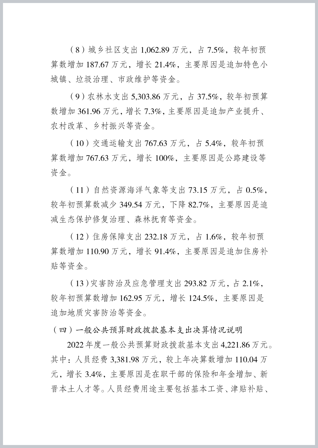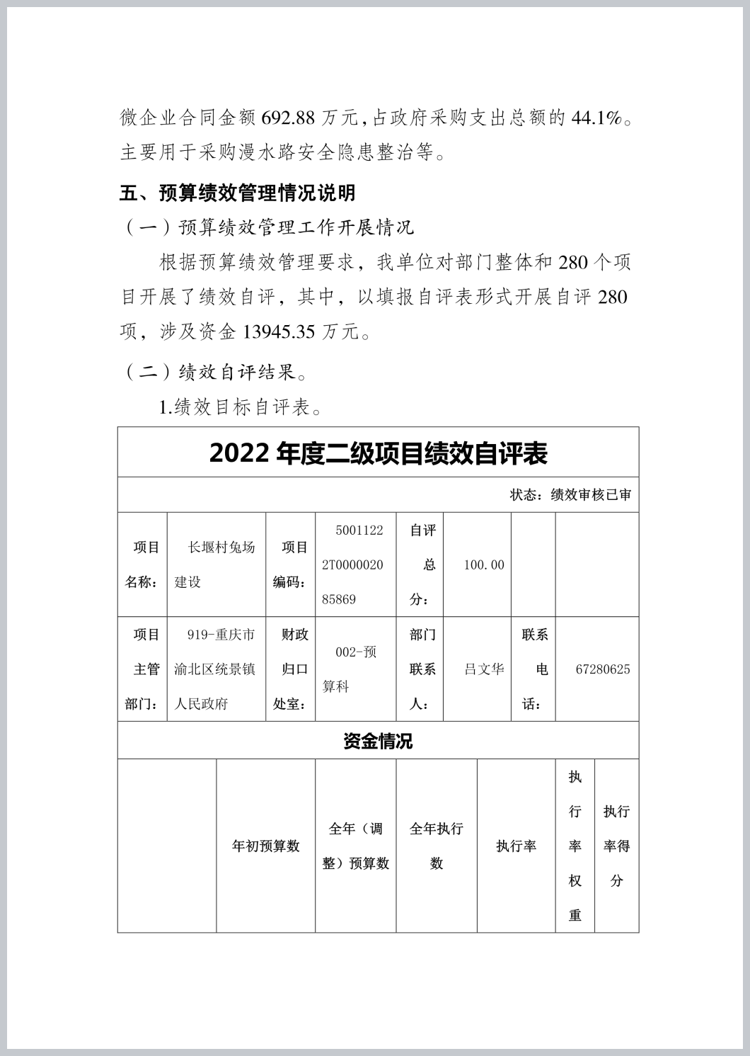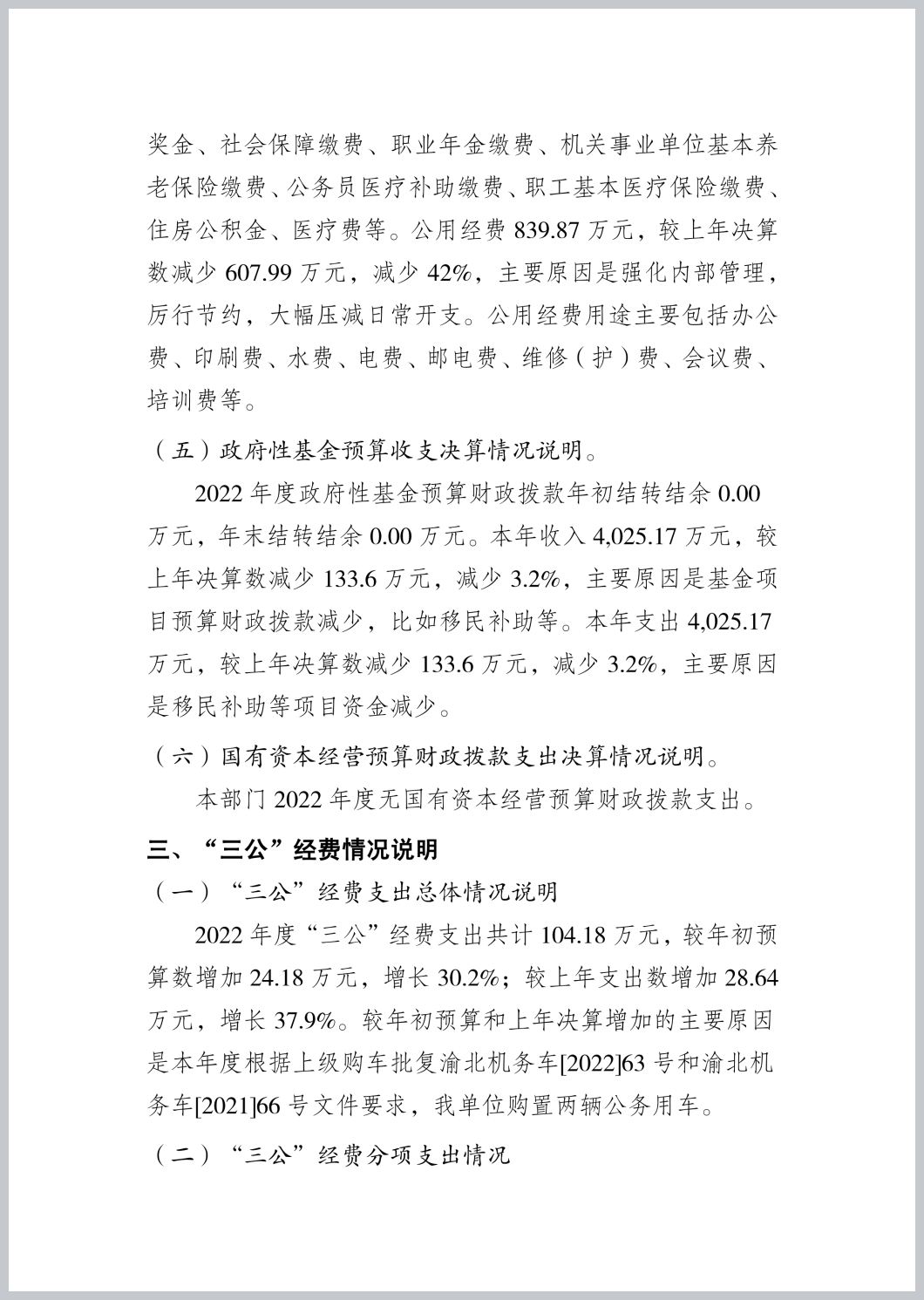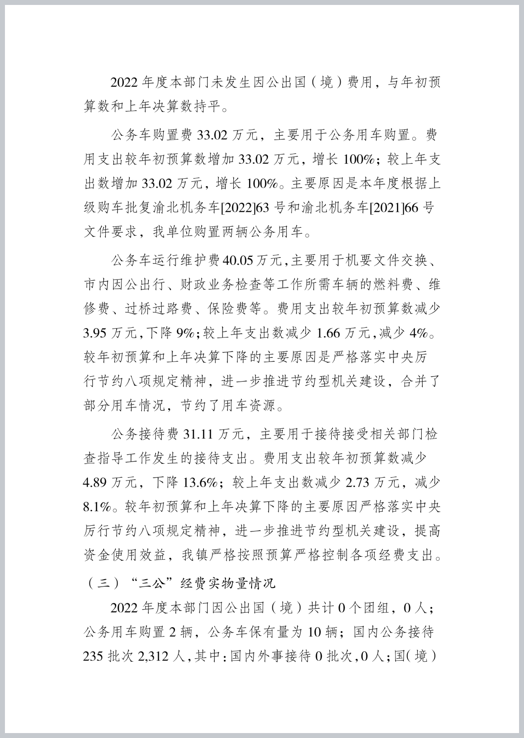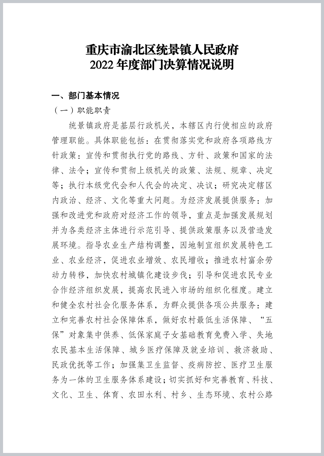 重庆市渝北区统景镇人民政府2022年部门决算公开
