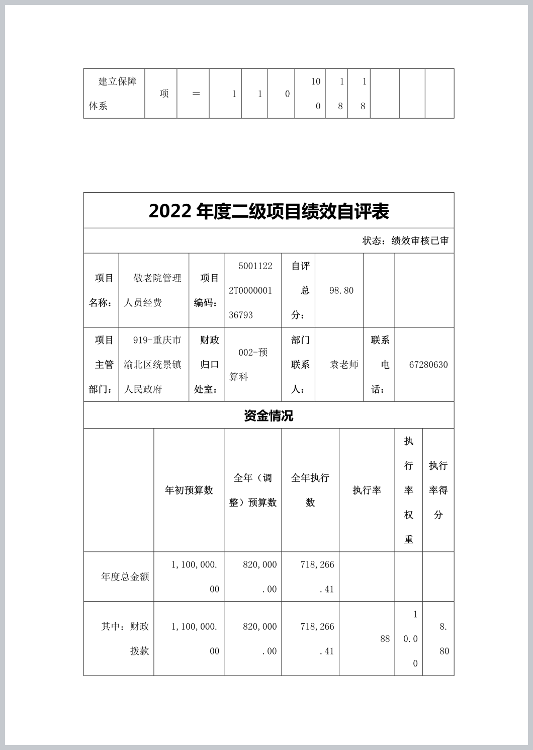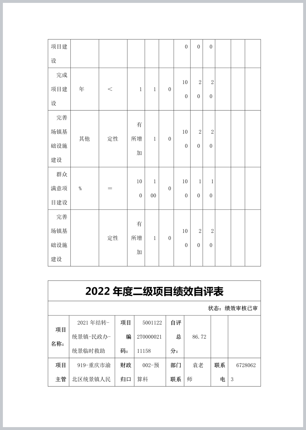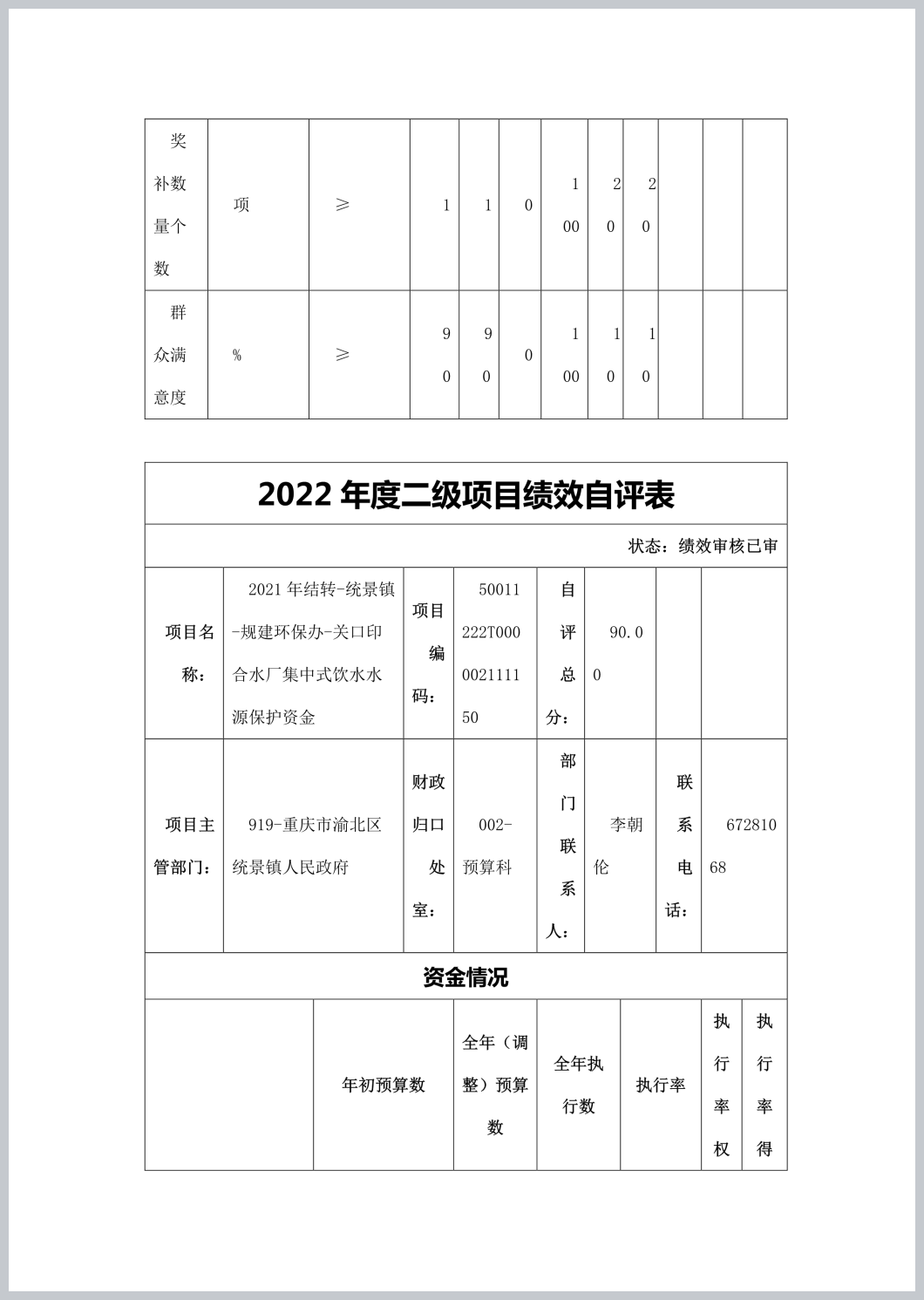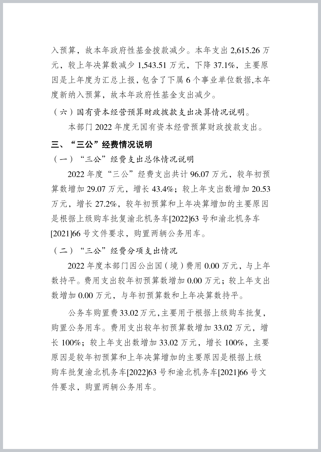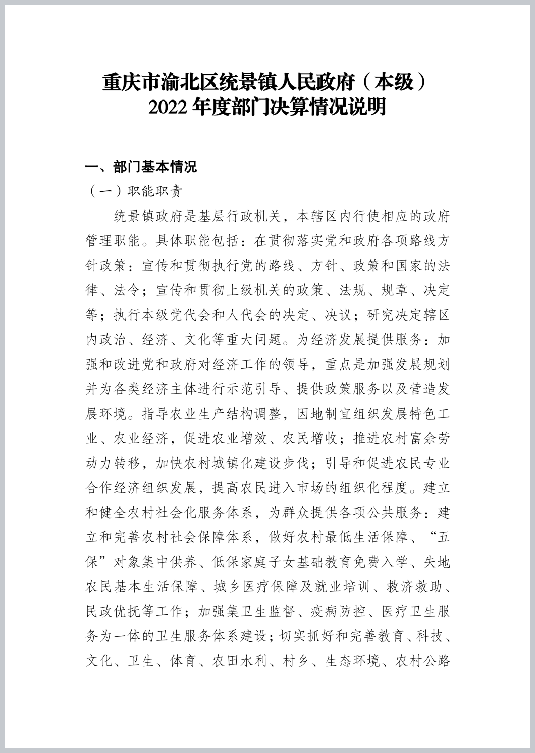 重庆市渝北区统景镇人民政府(本级)2022年部门决算公开