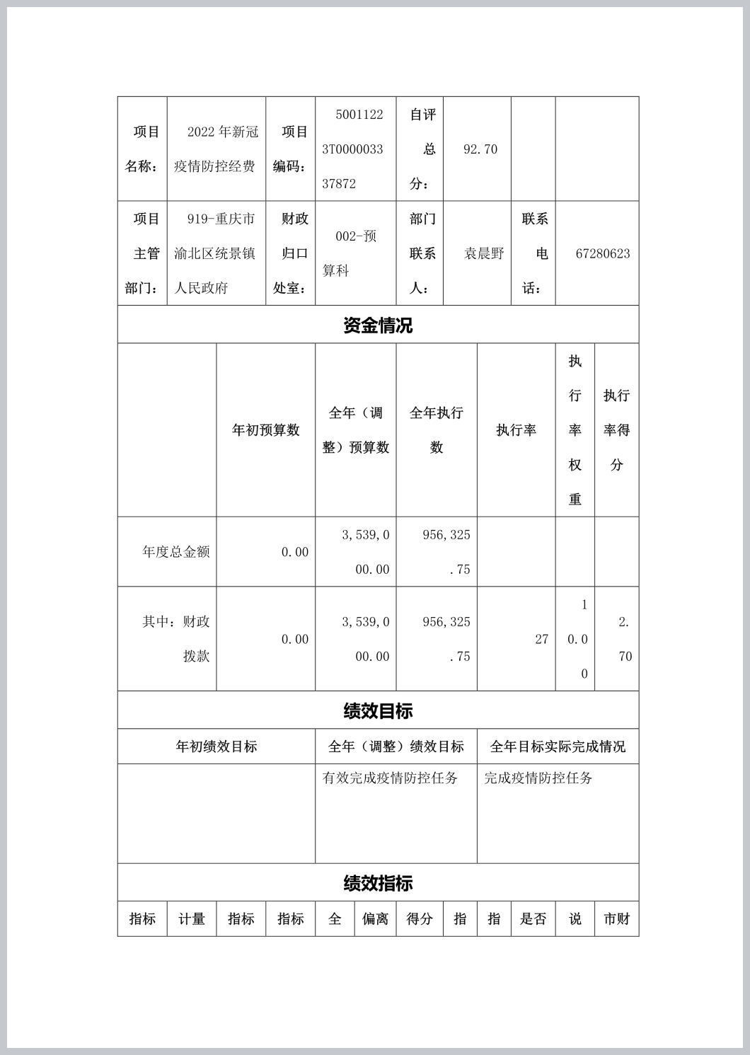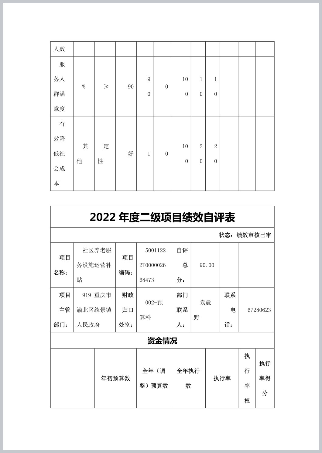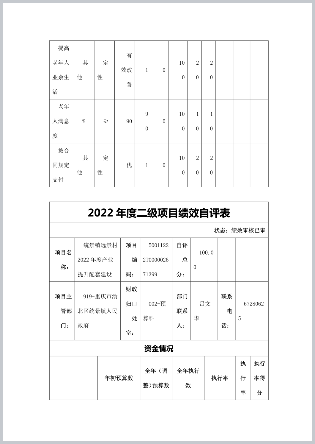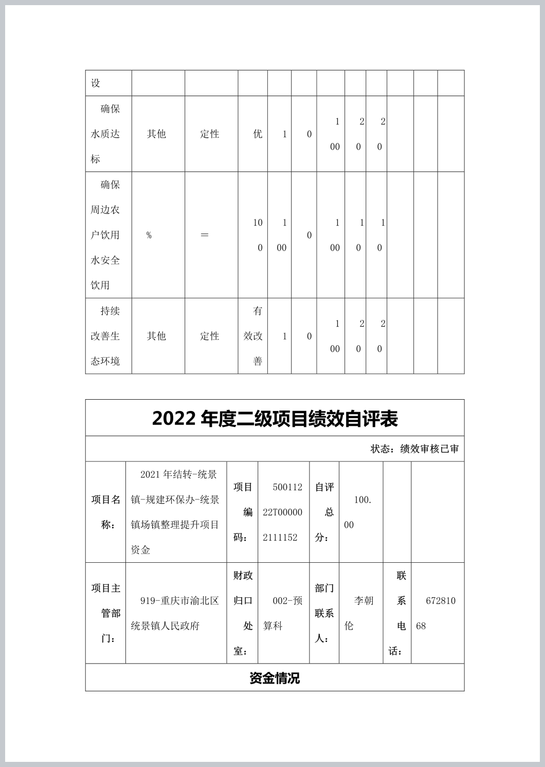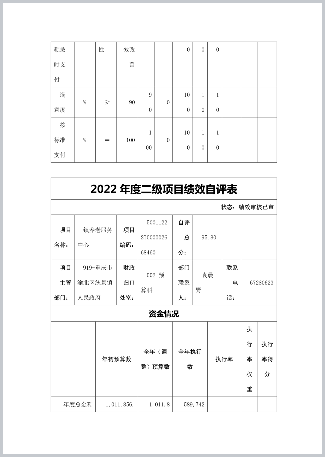 重庆市渝北区统景镇人民政府(本级)2022年部门决算公开