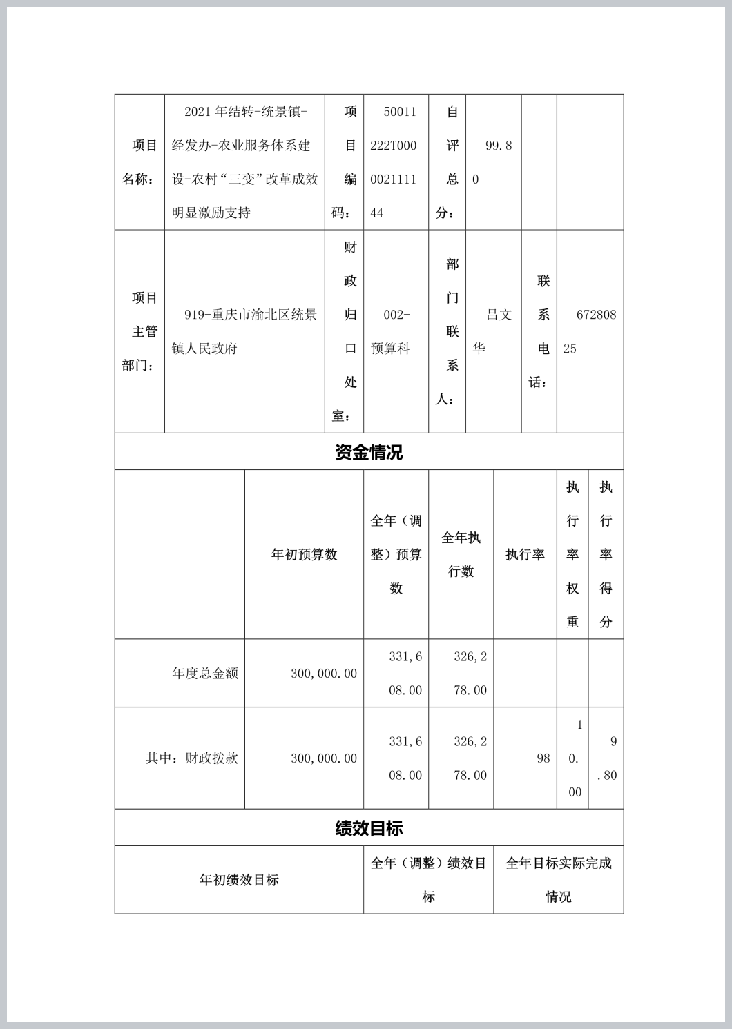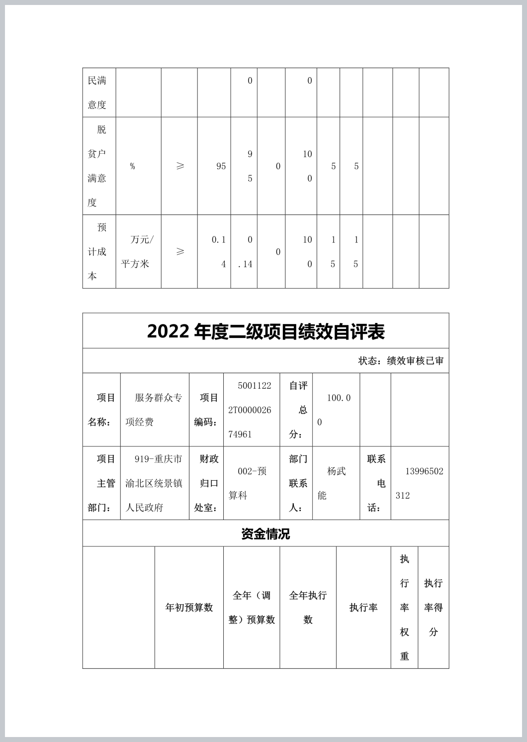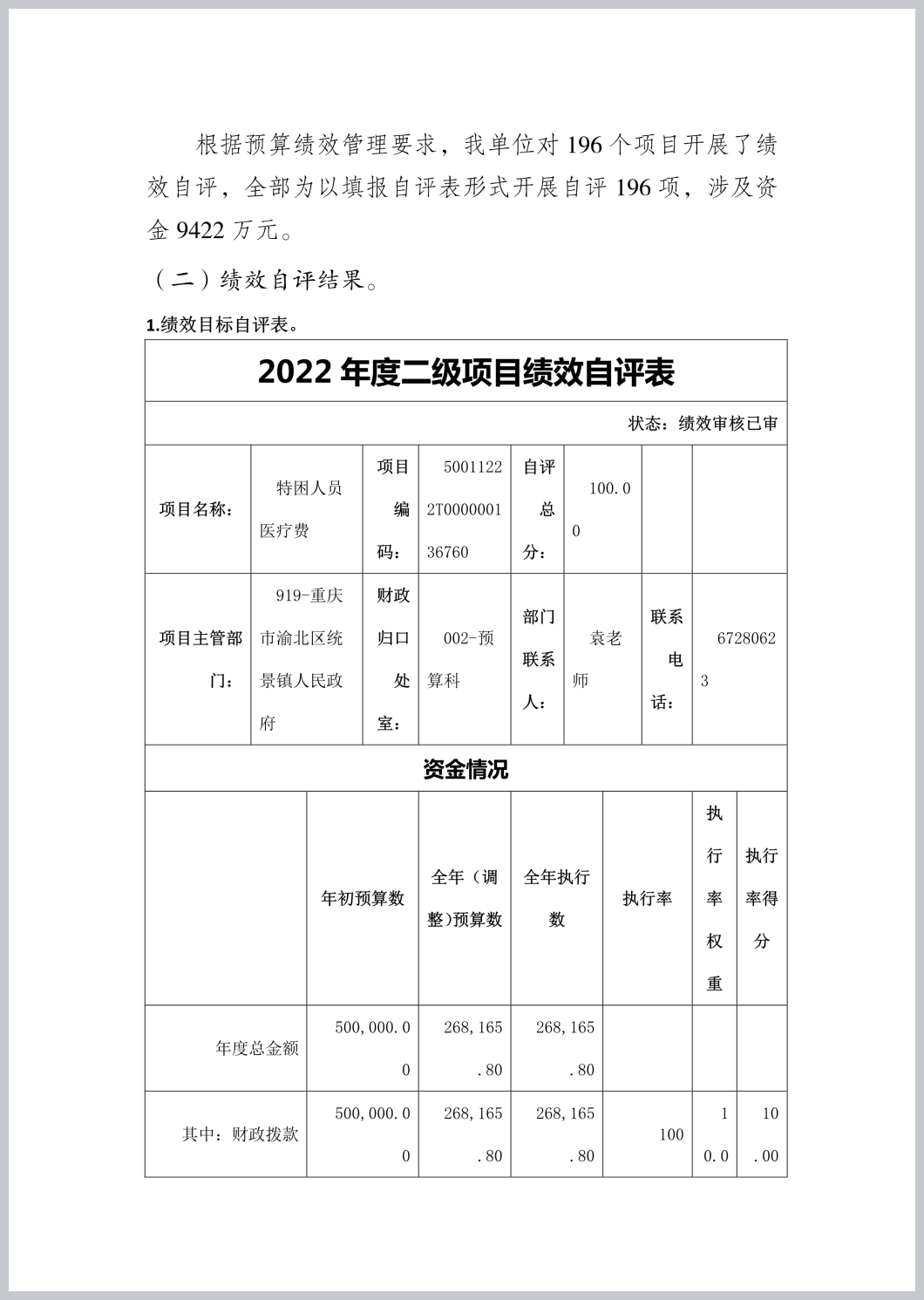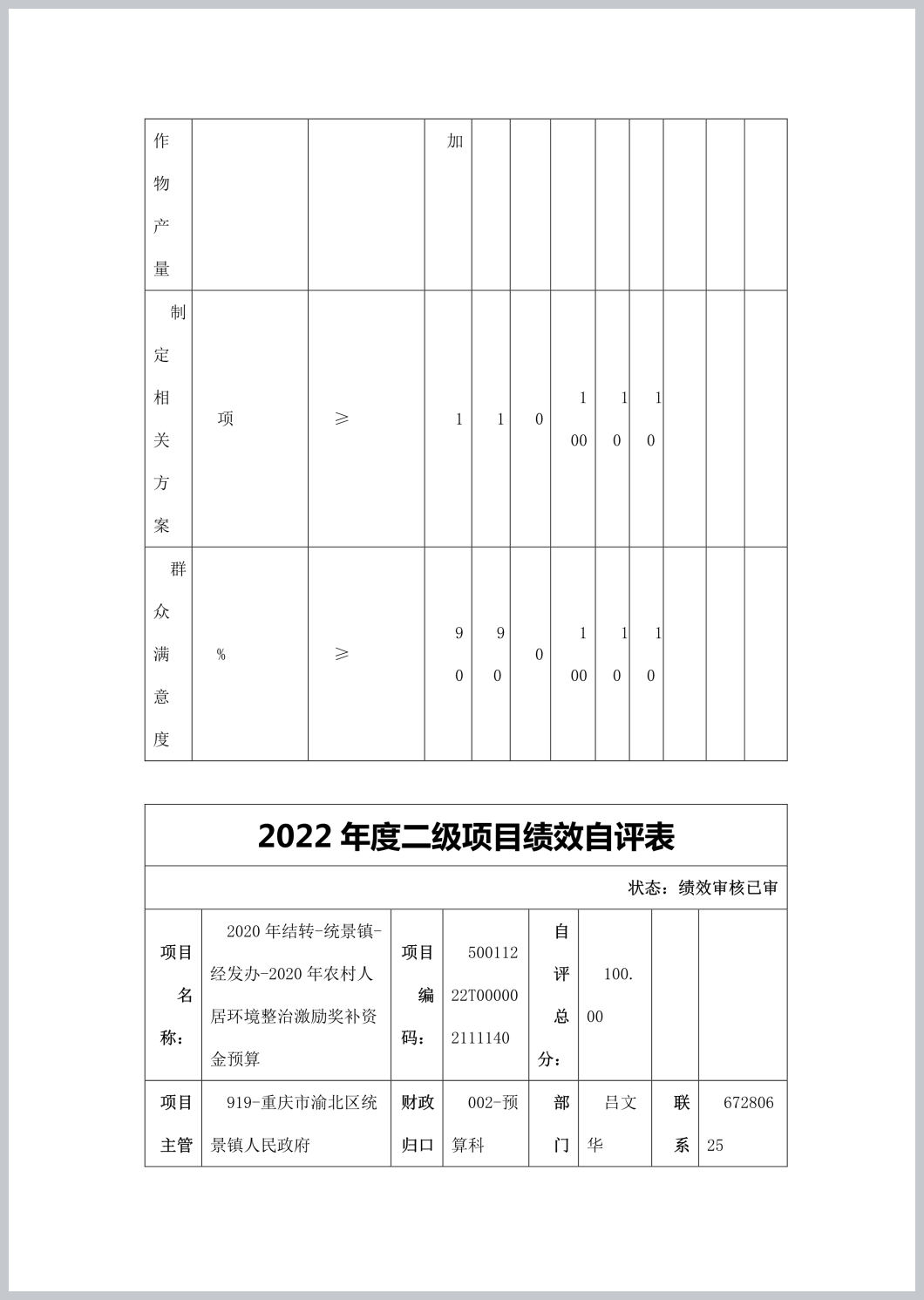 重庆市渝北区统景镇人民政府(本级)2022年部门决算公开