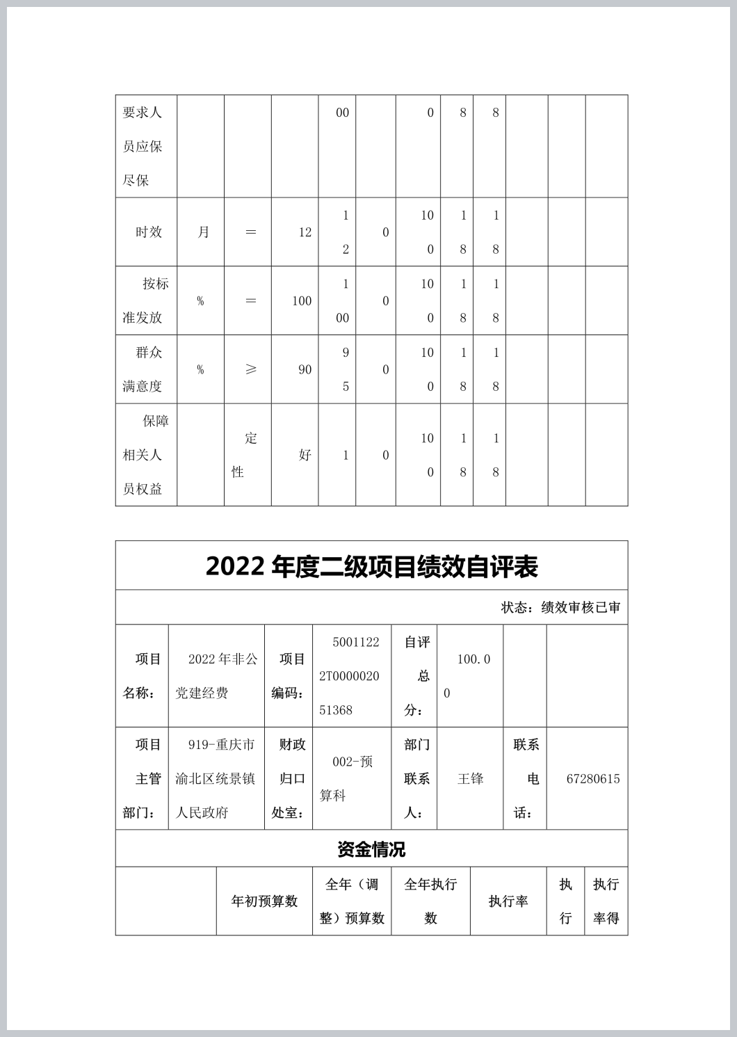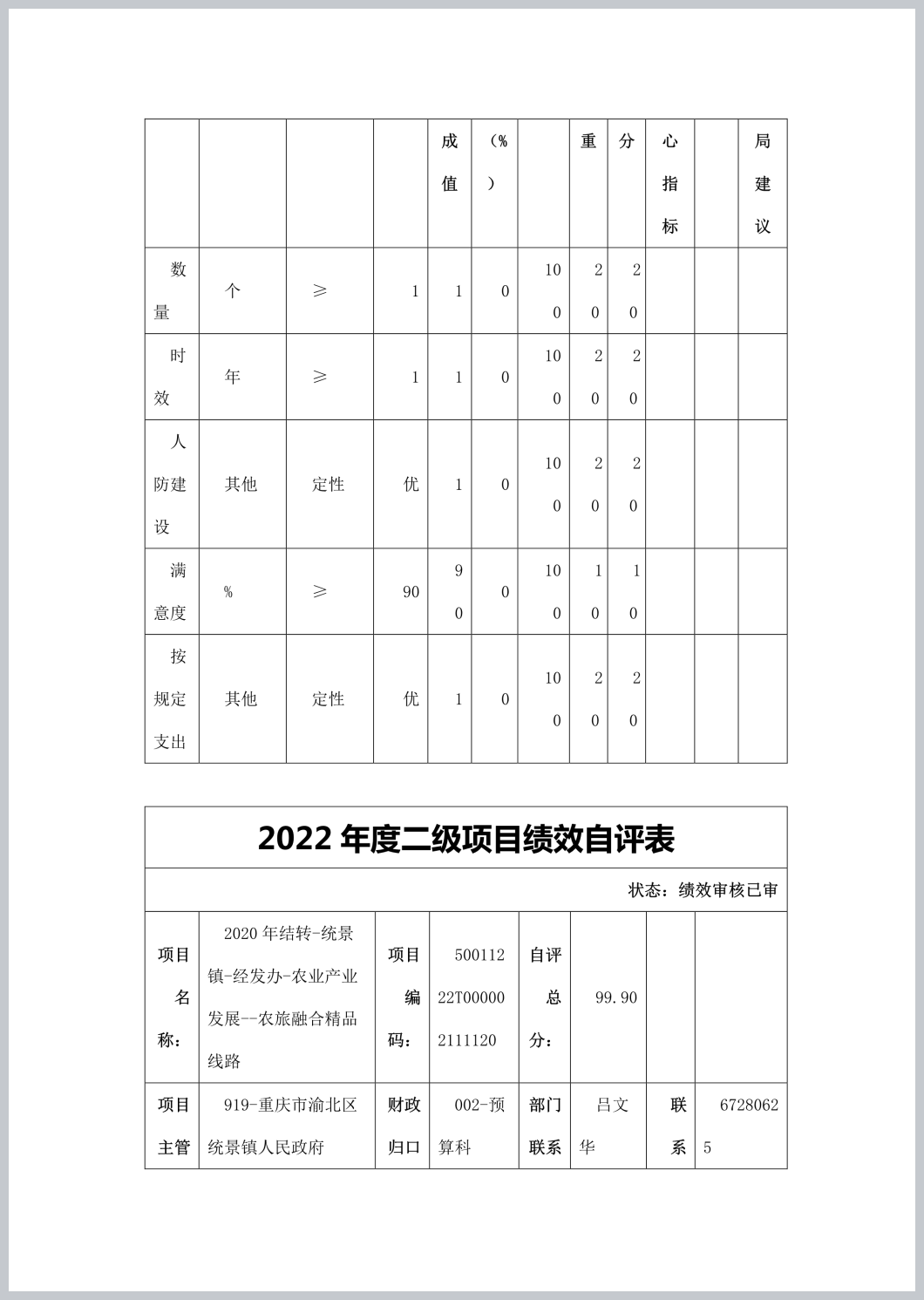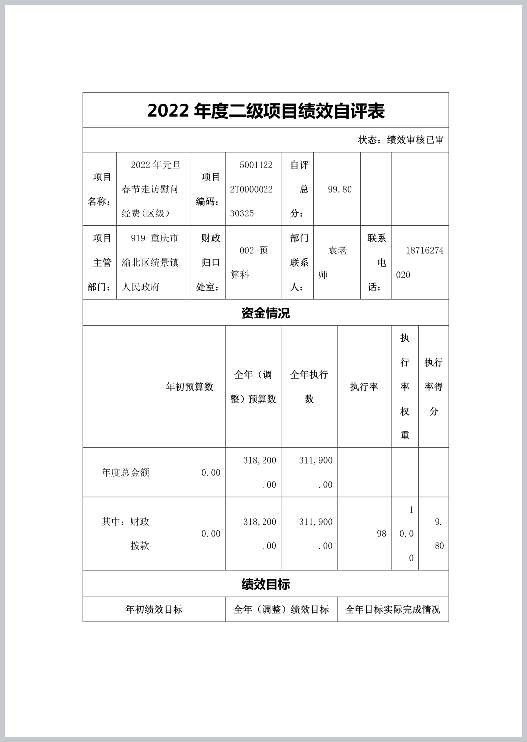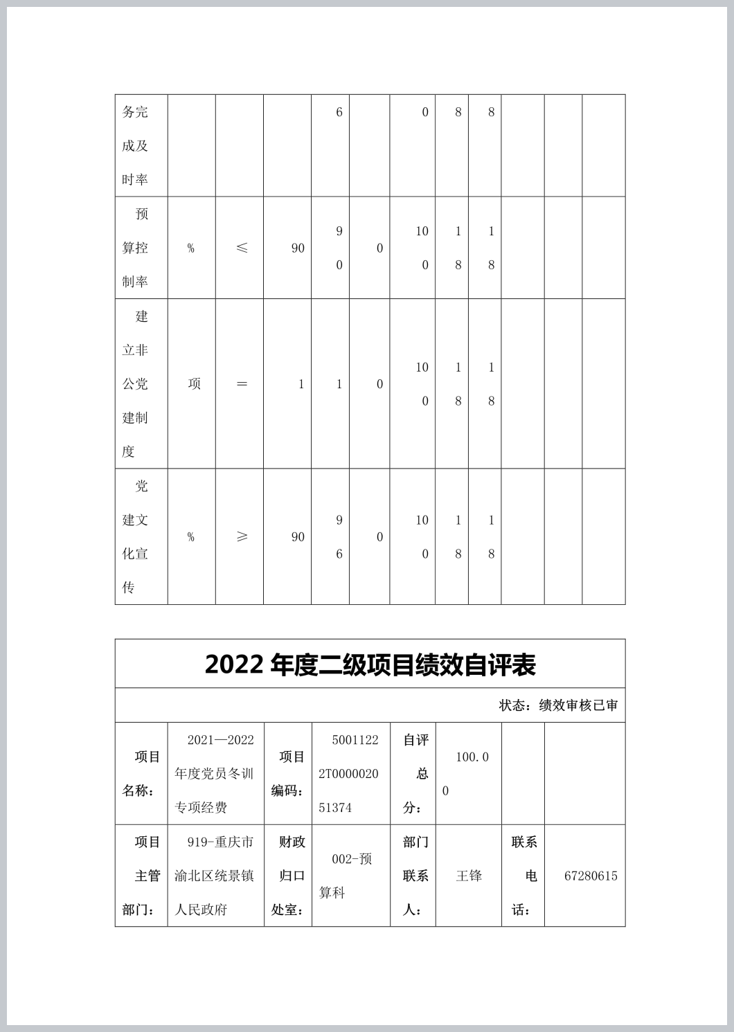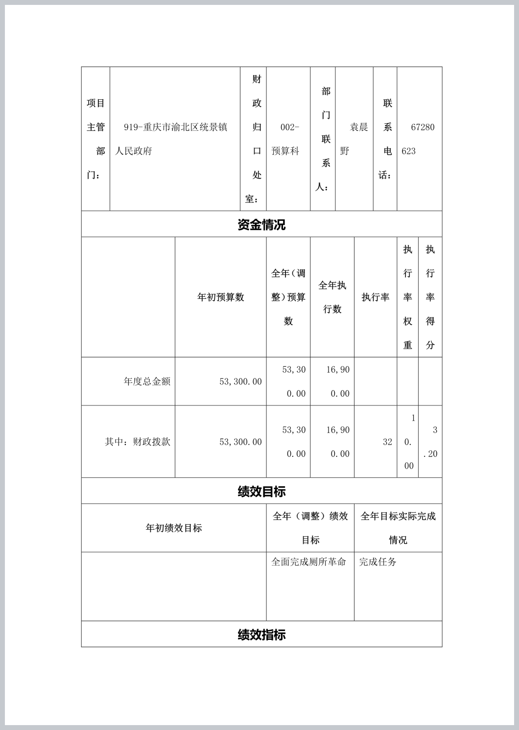 重庆市渝北区统景镇人民政府(本级)2022年部门决算公开