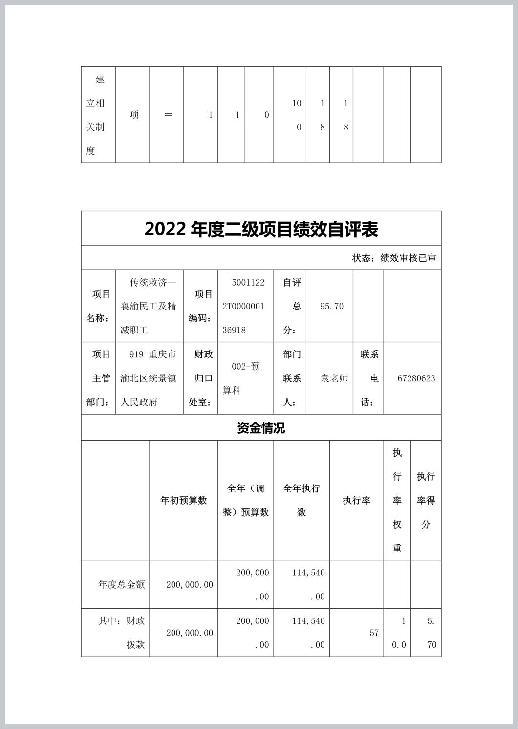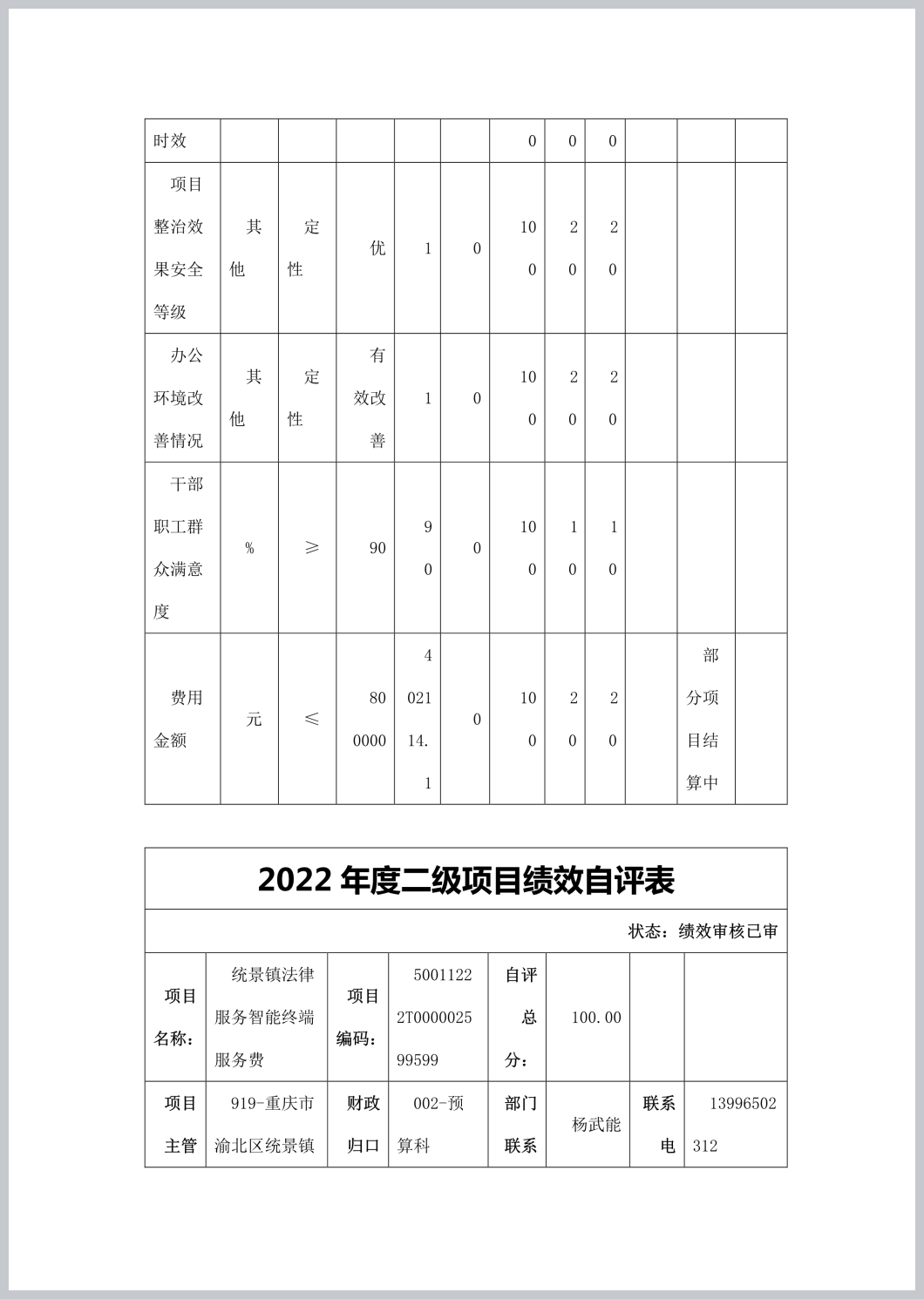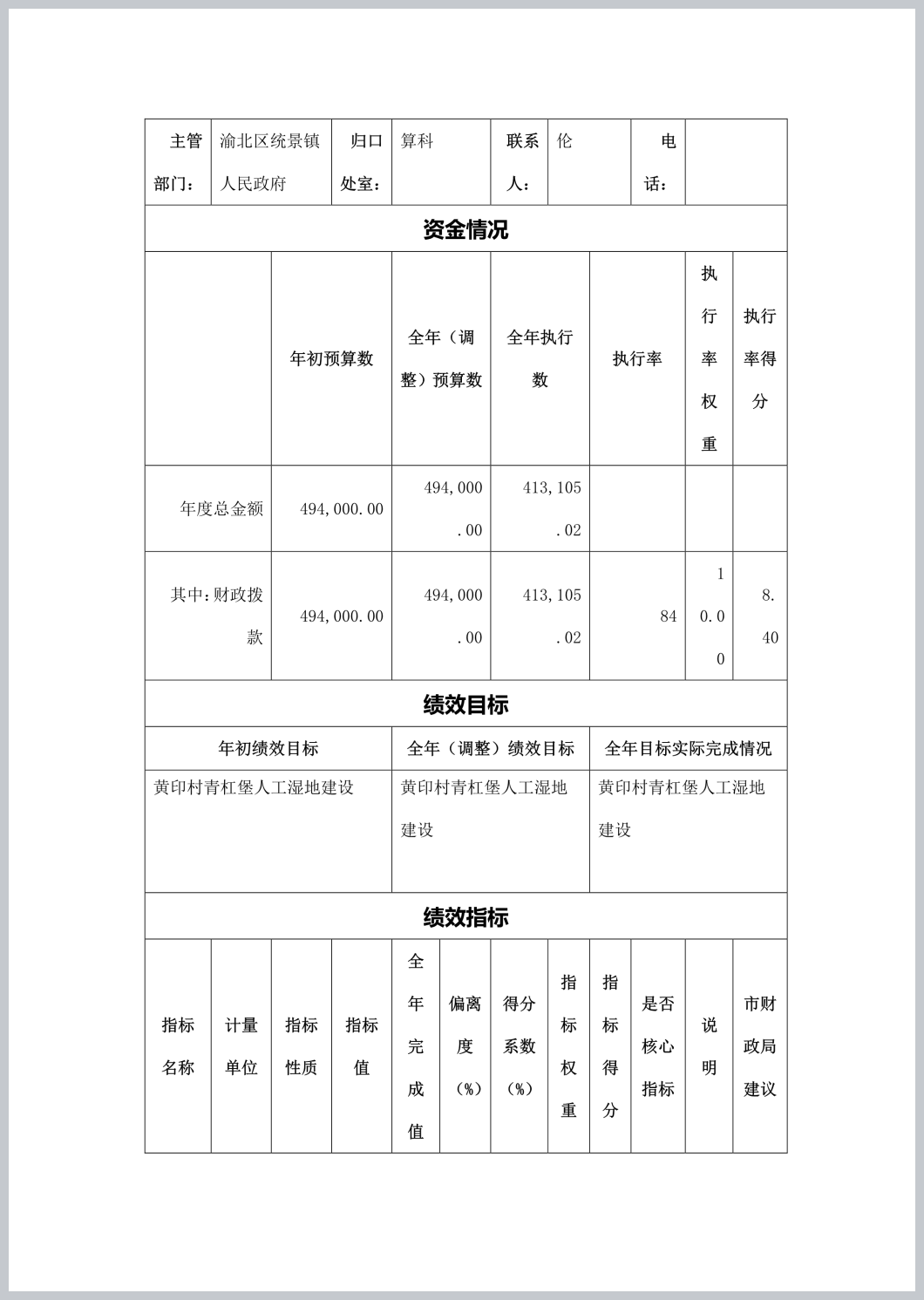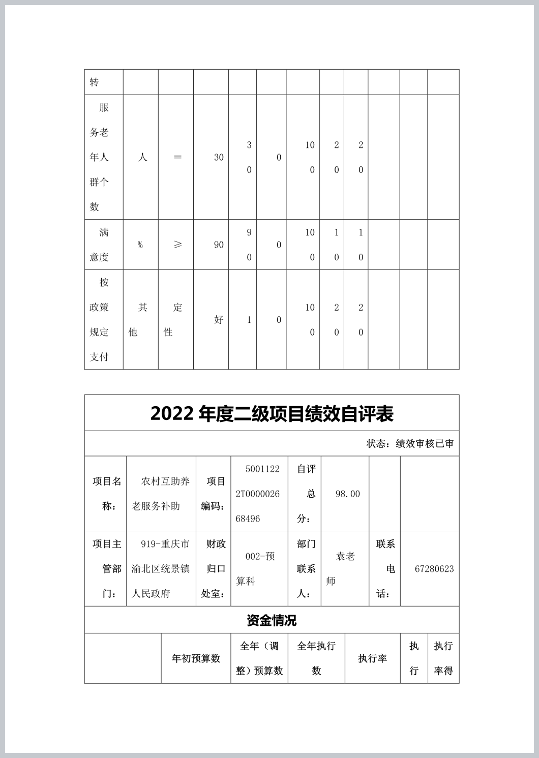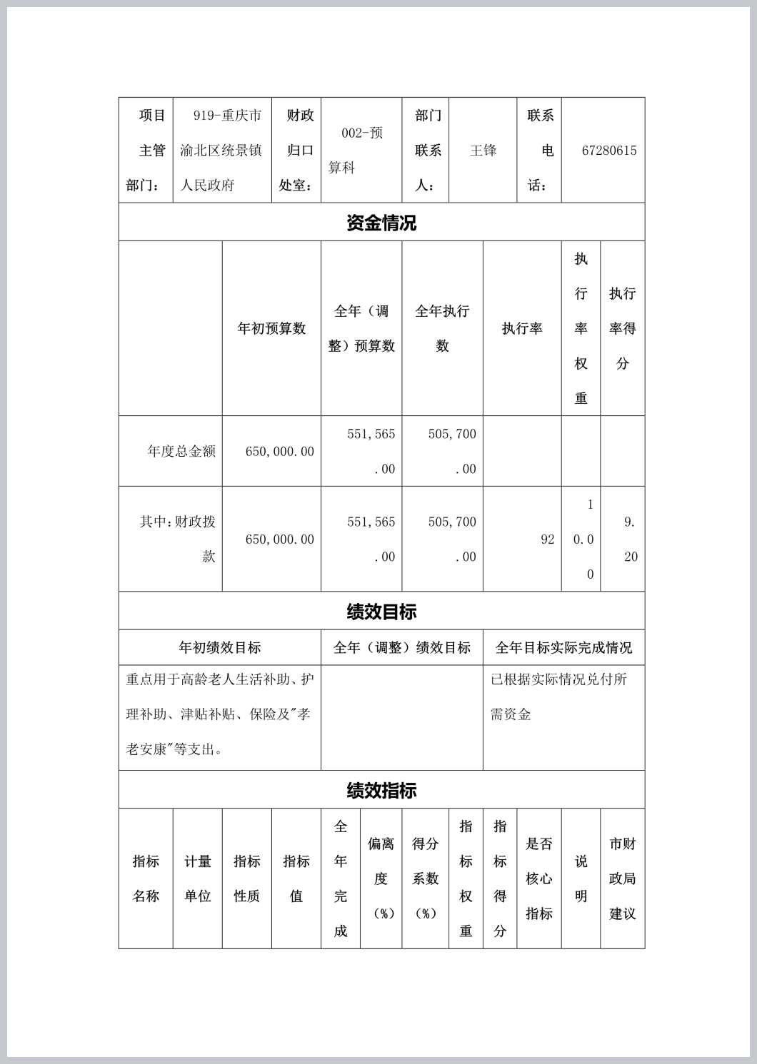 重庆市渝北区统景镇人民政府(本级)2022年部门决算公开
