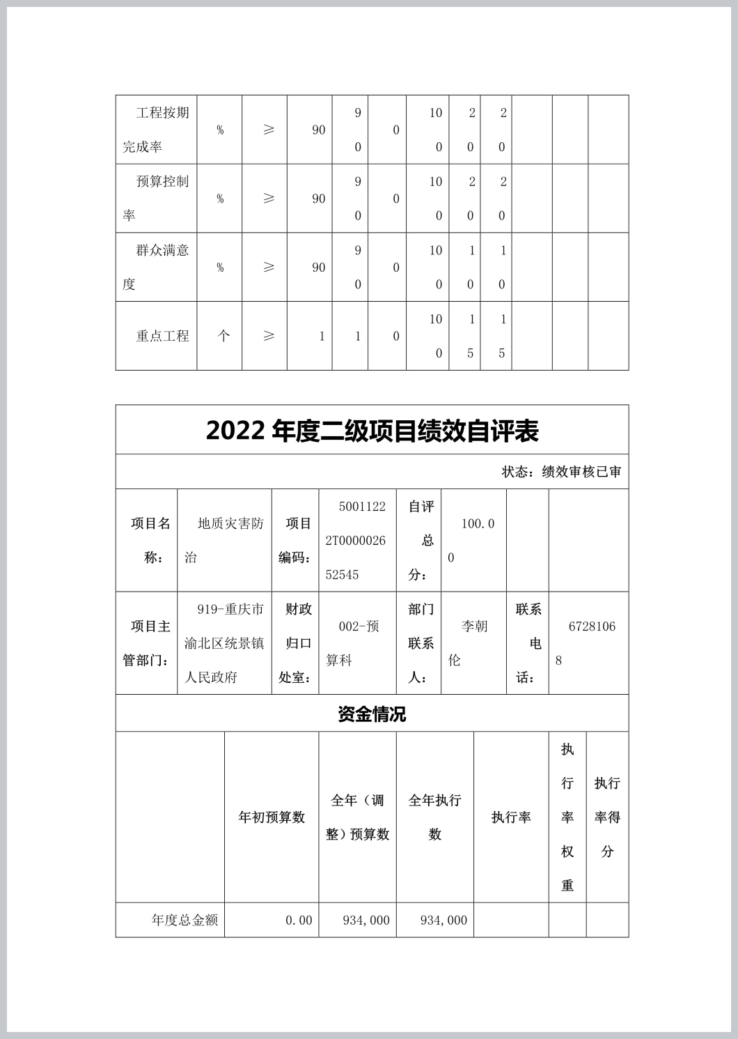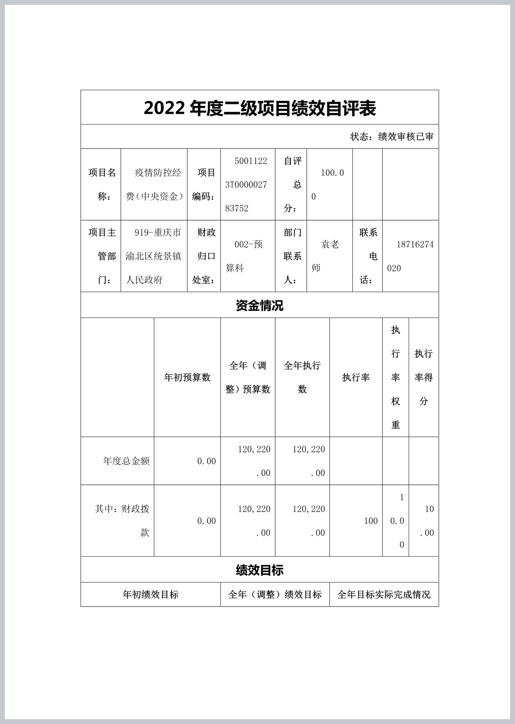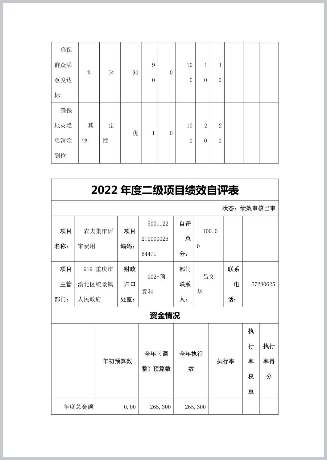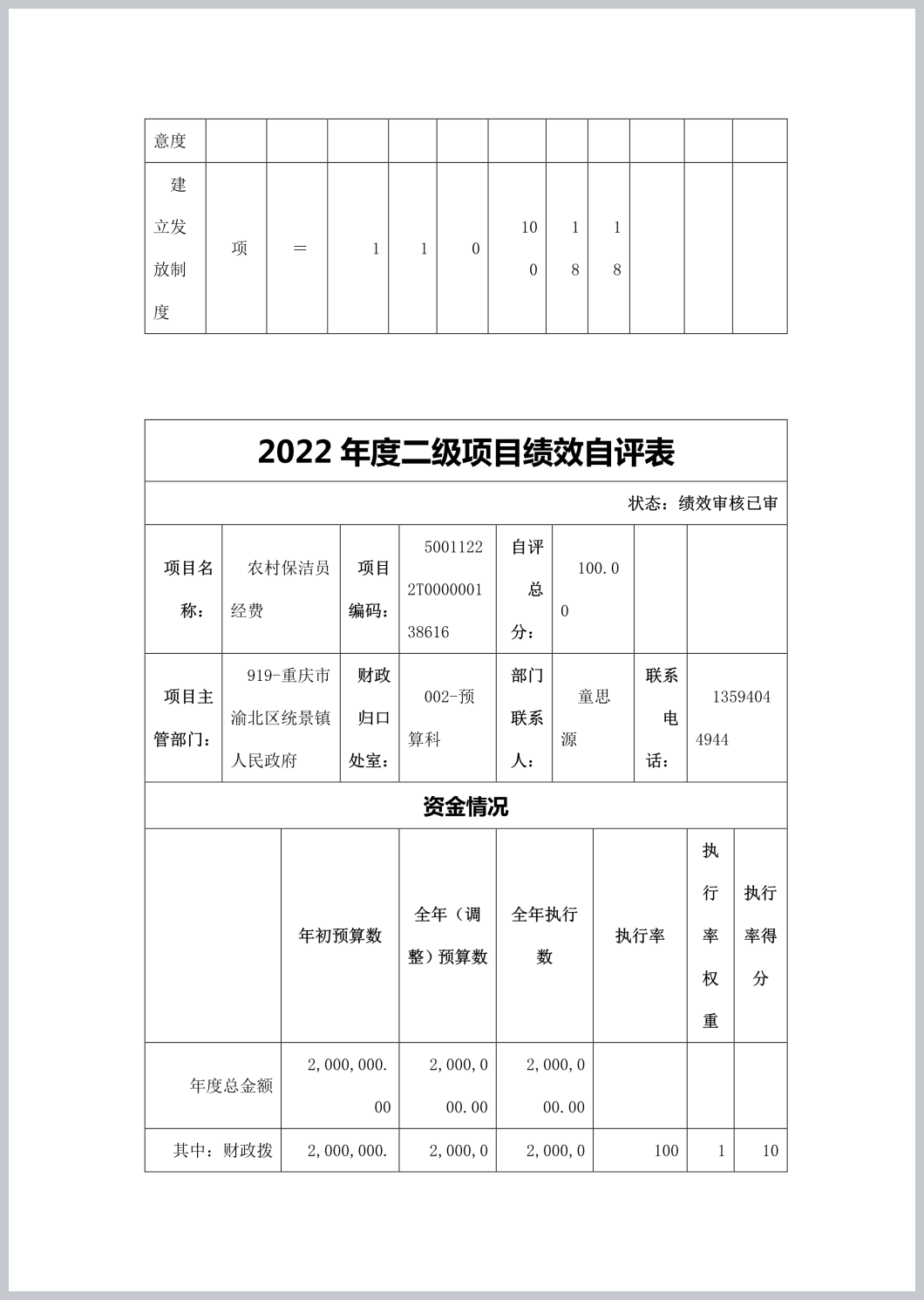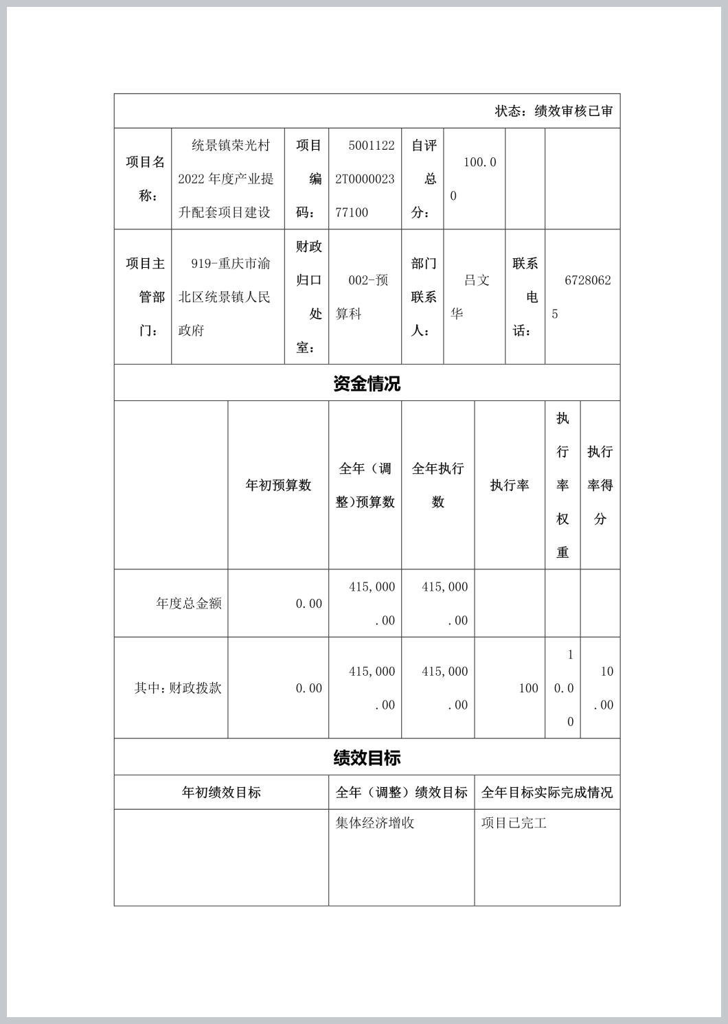 重庆市渝北区统景镇人民政府(本级)2022年部门决算公开