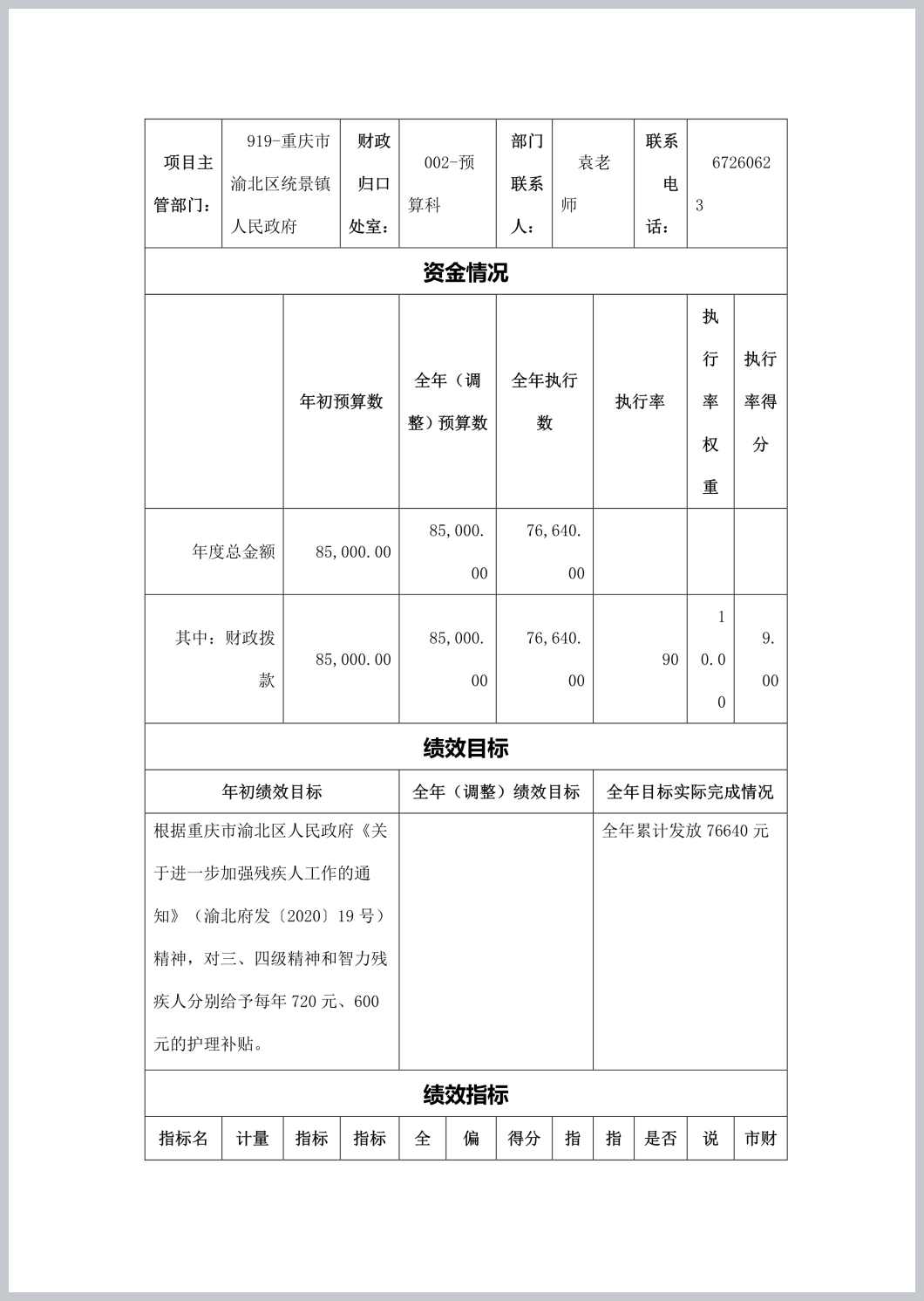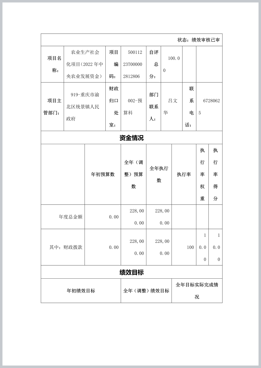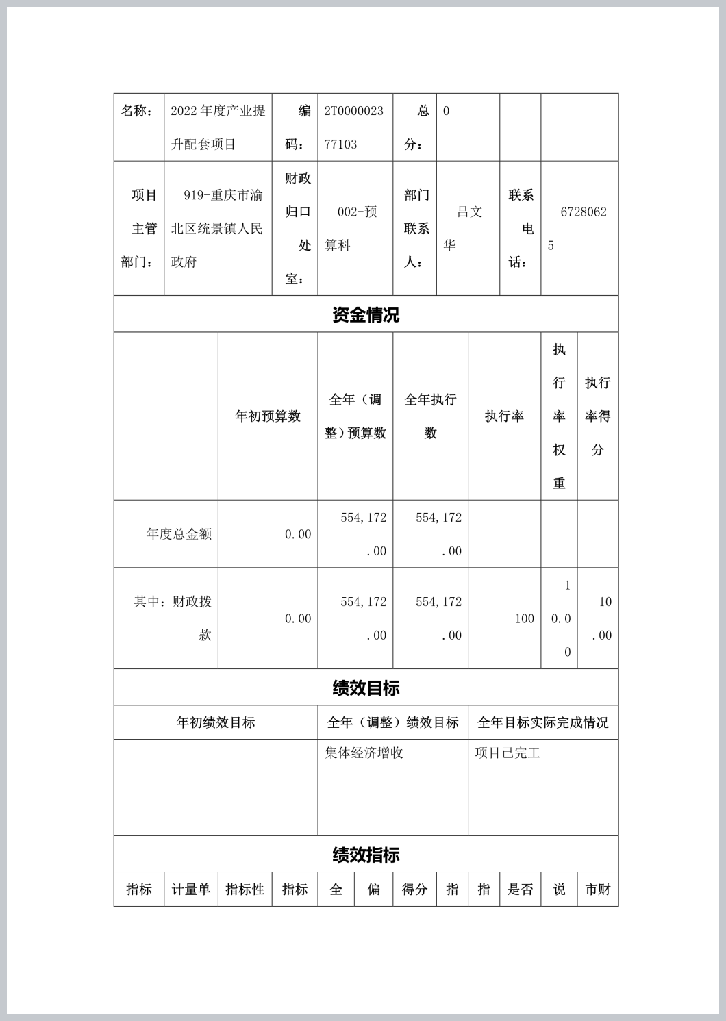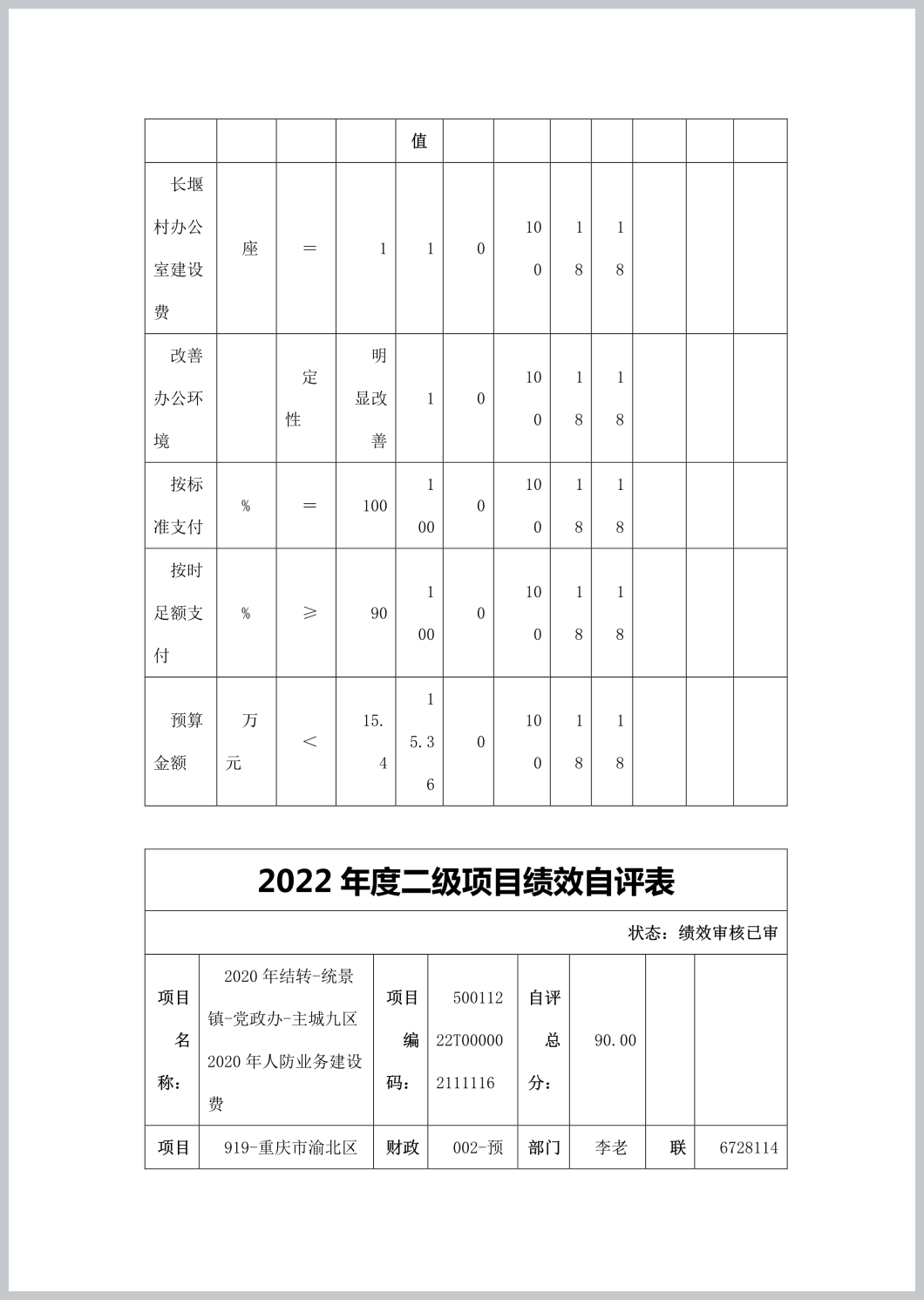 重庆市渝北区统景镇人民政府(本级)2022年部门决算公开