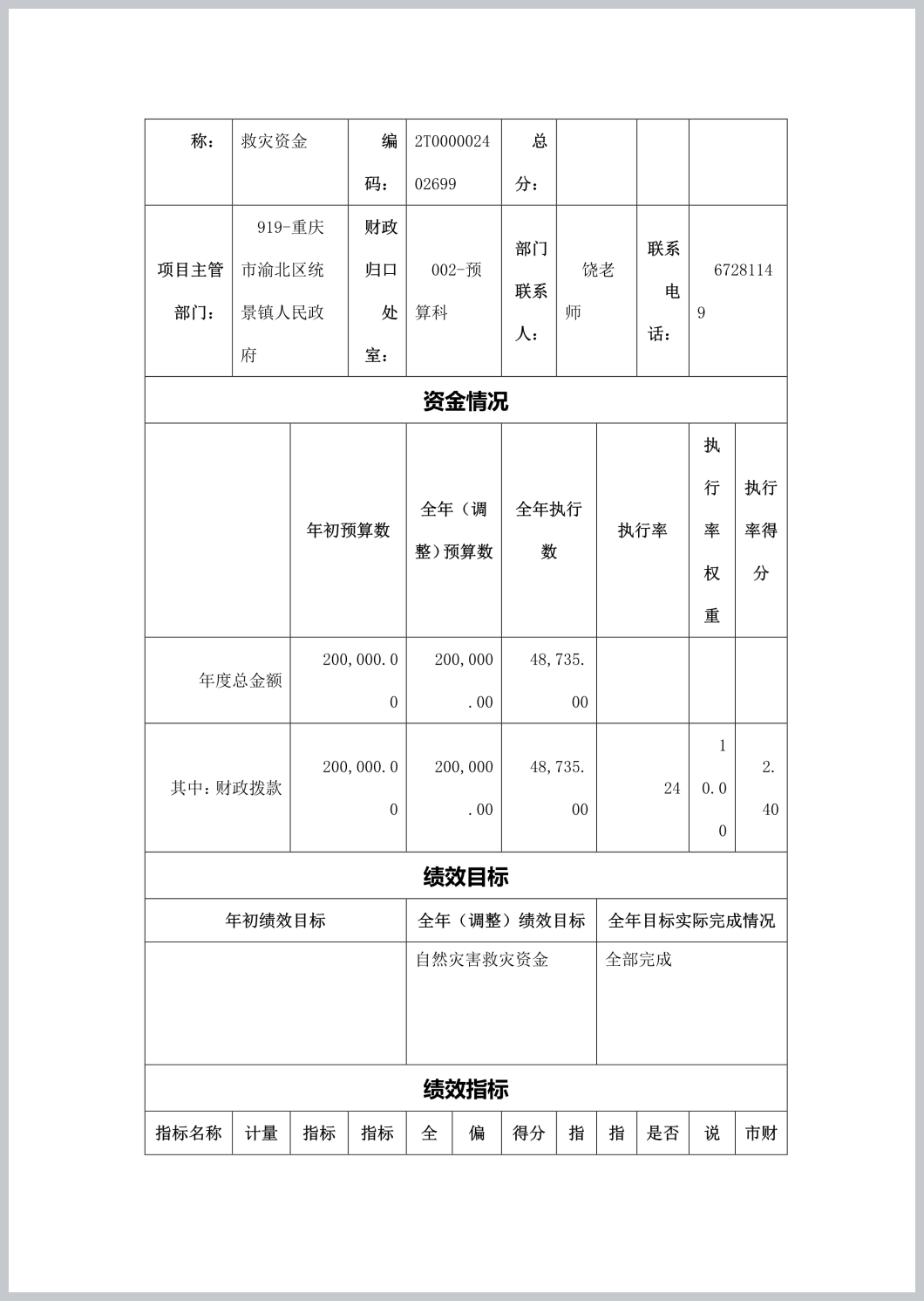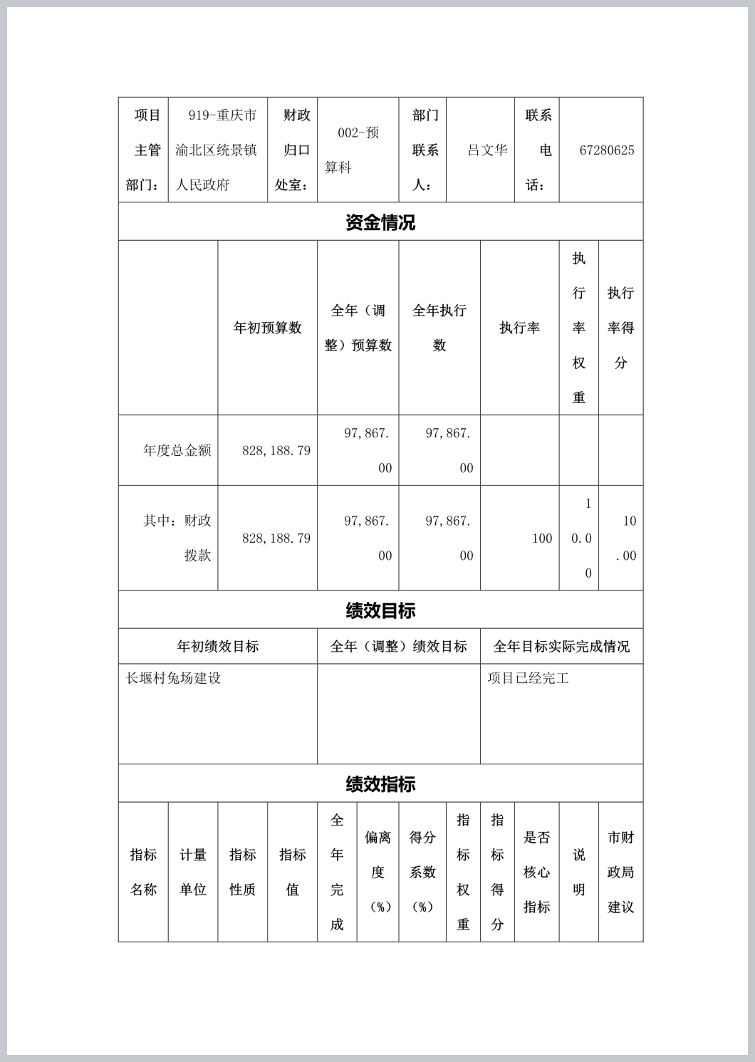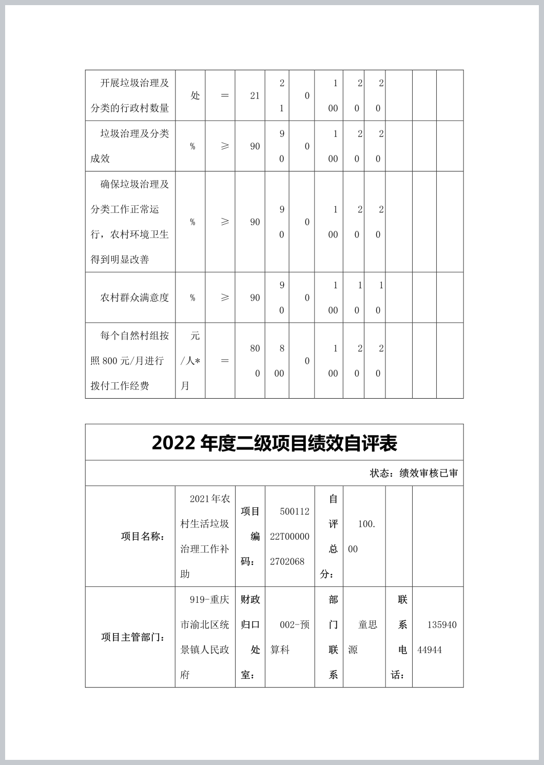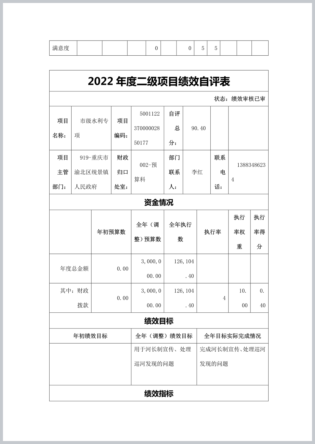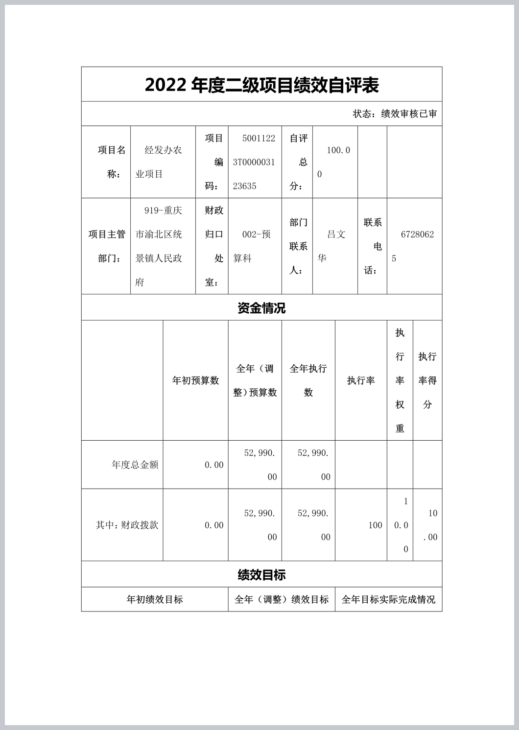 重庆市渝北区统景镇人民政府(本级)2022年部门决算公开