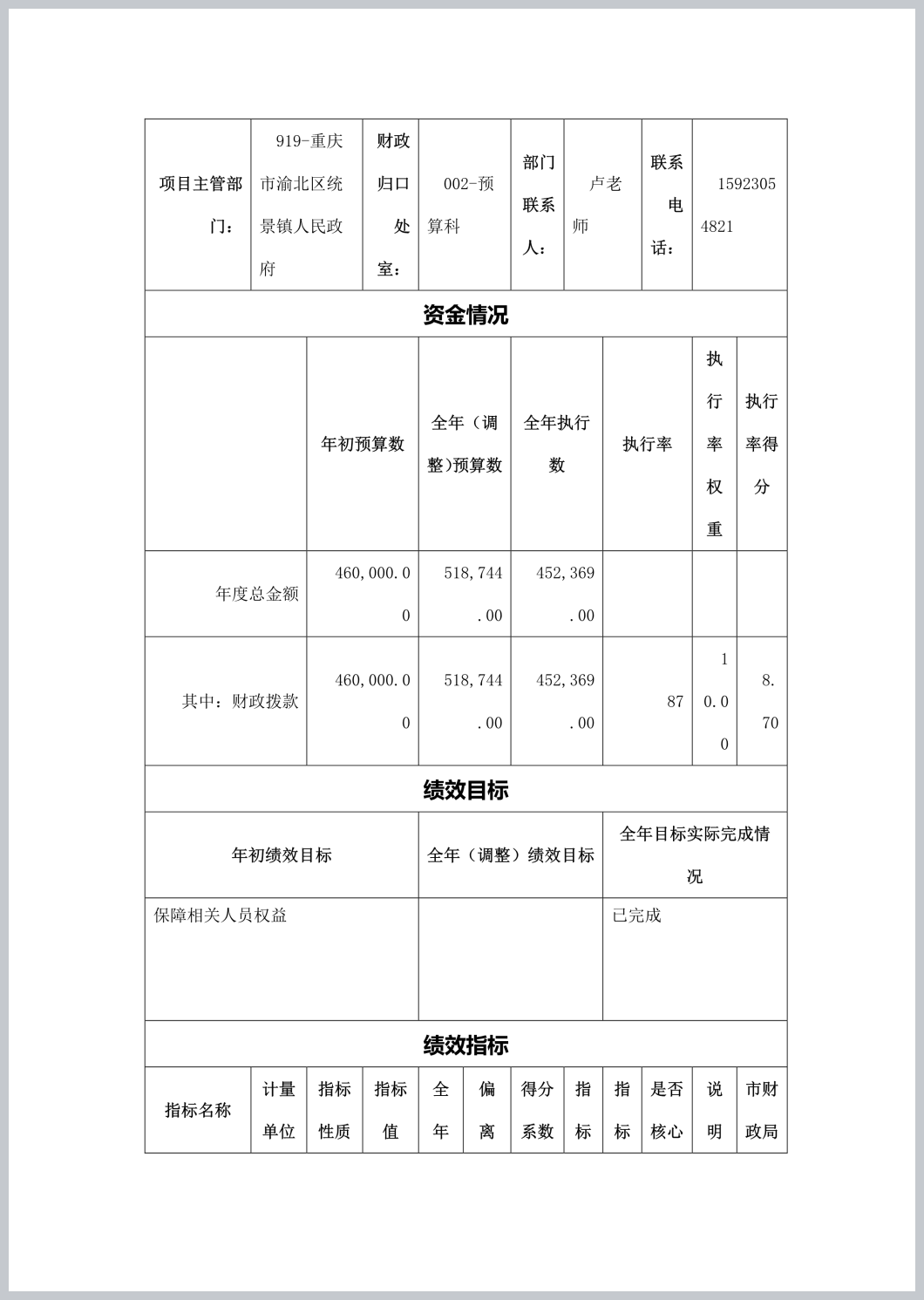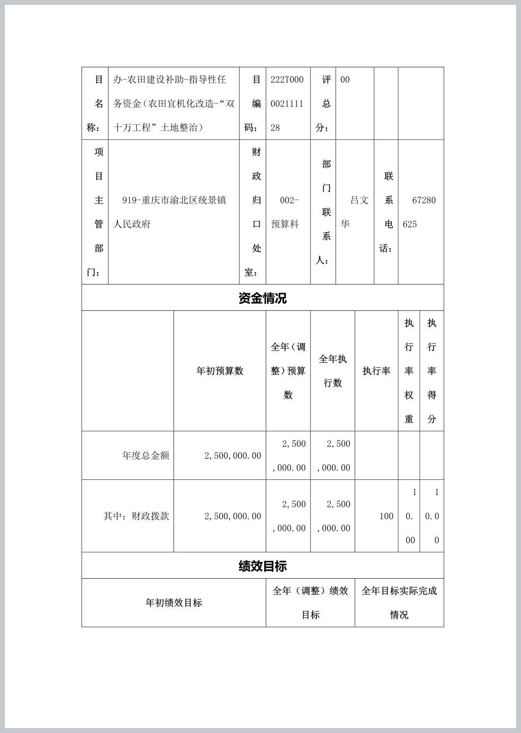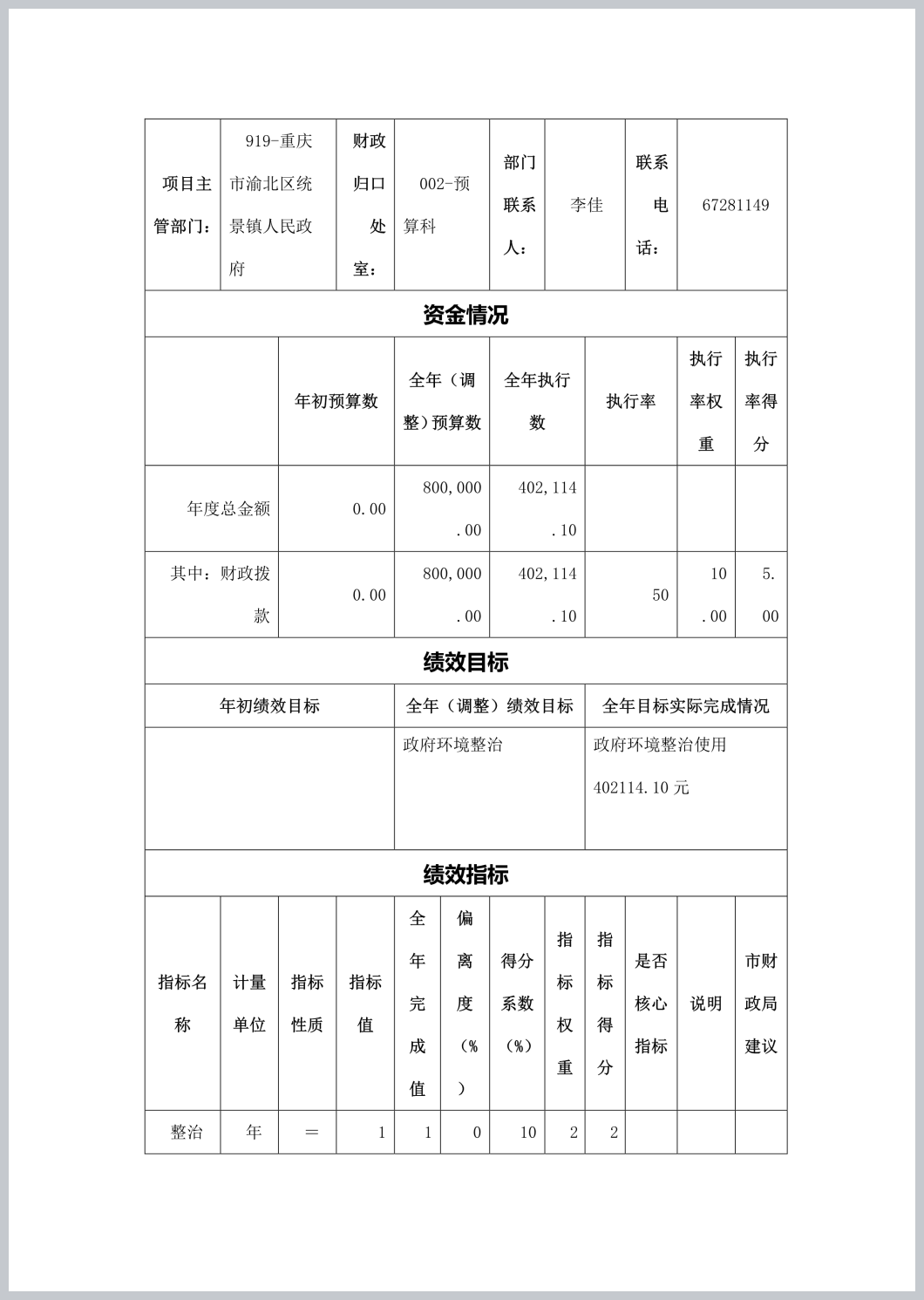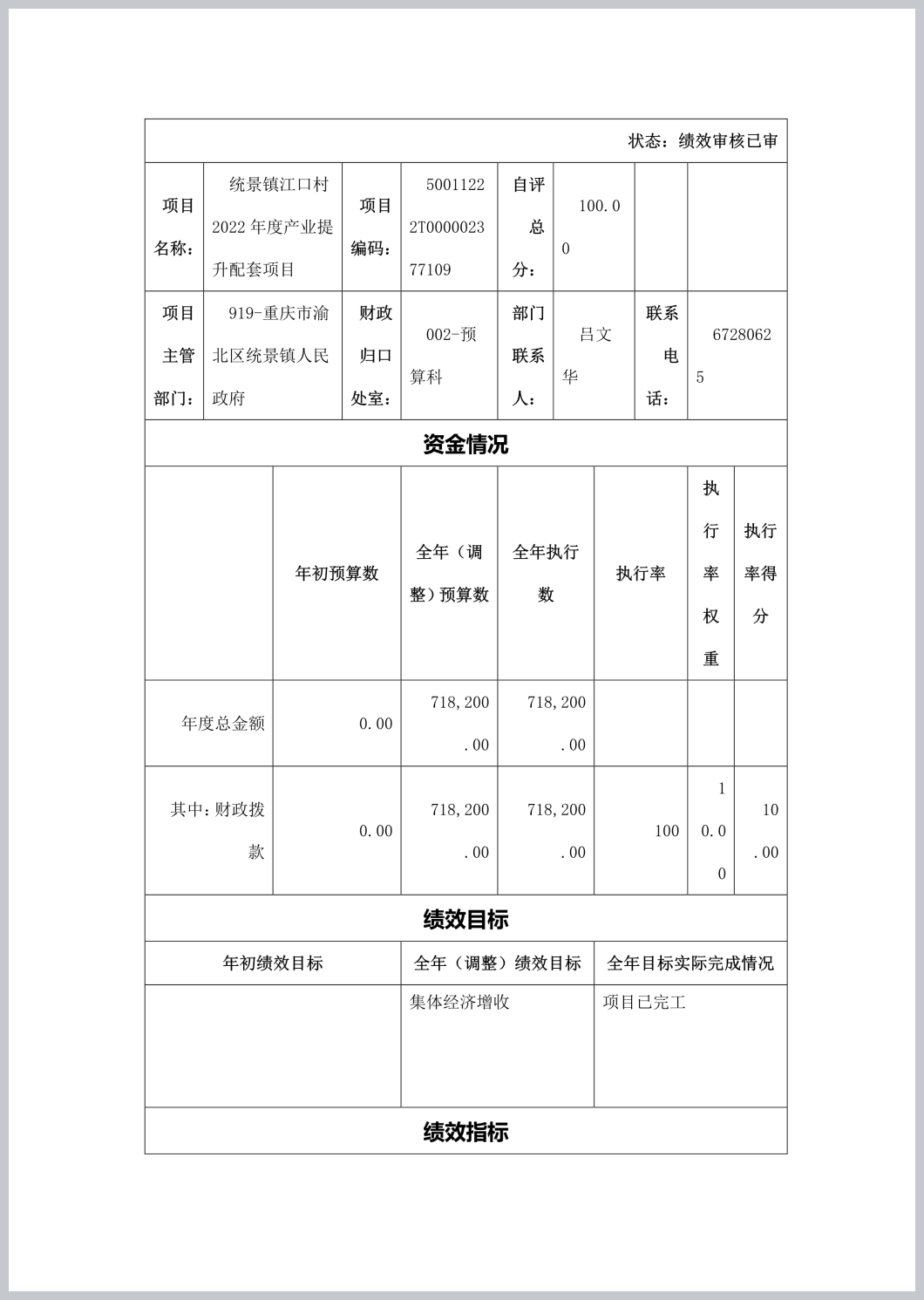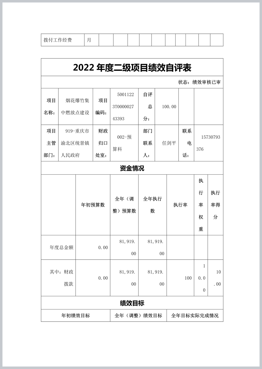 重庆市渝北区统景镇人民政府(本级)2022年部门决算公开