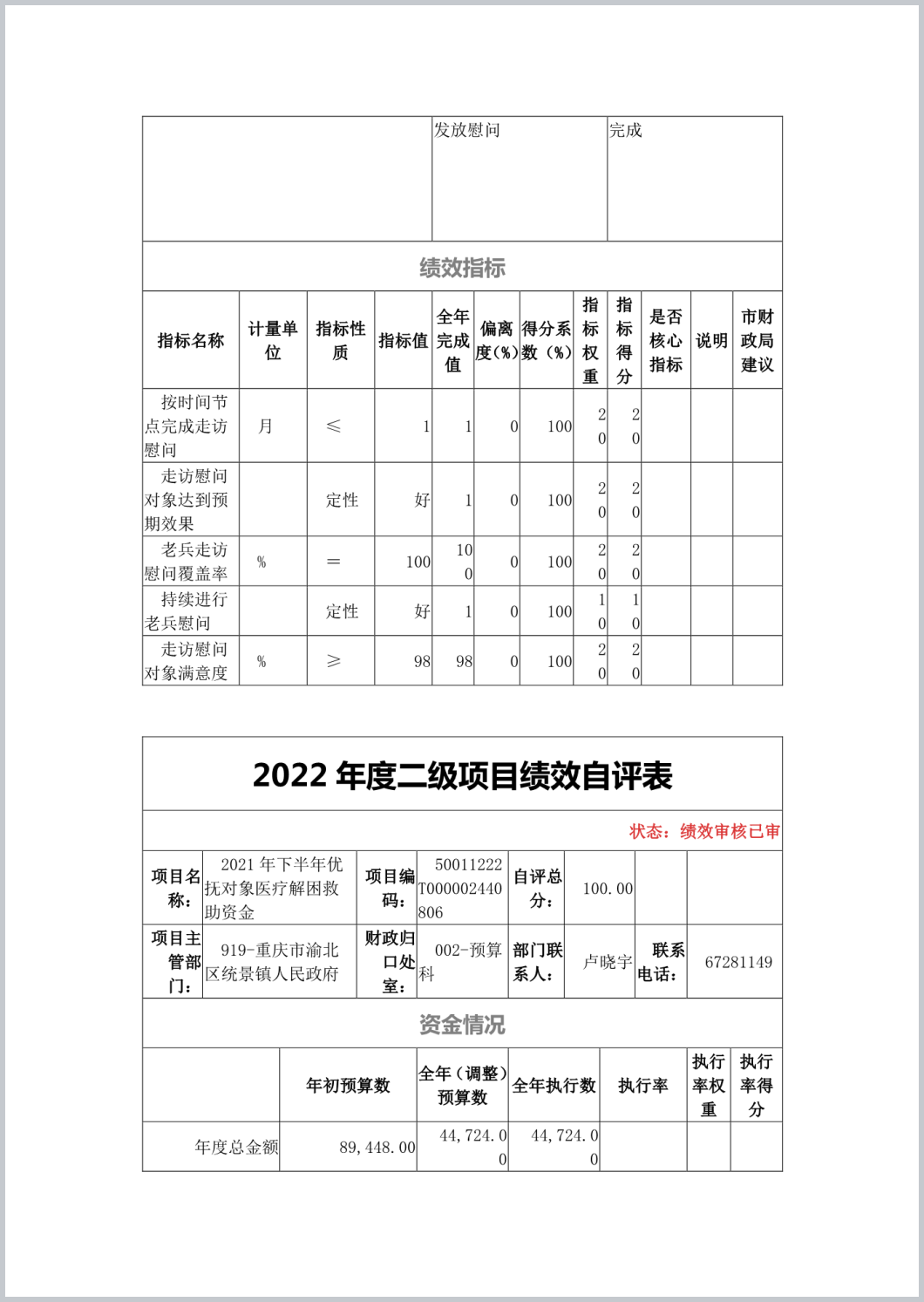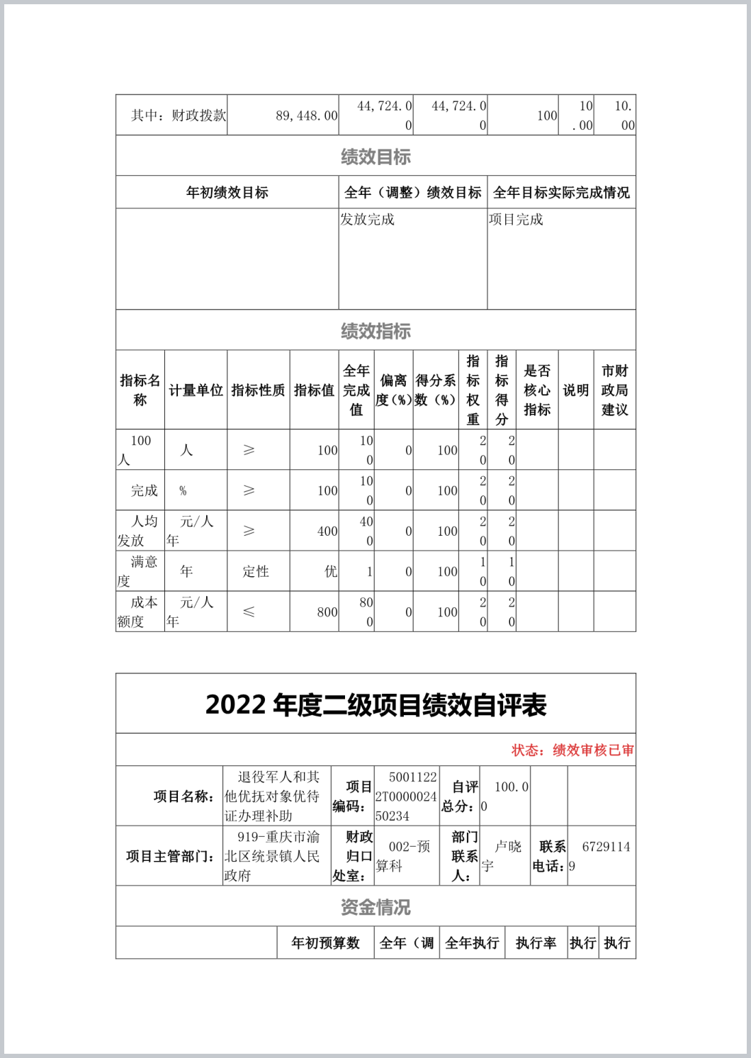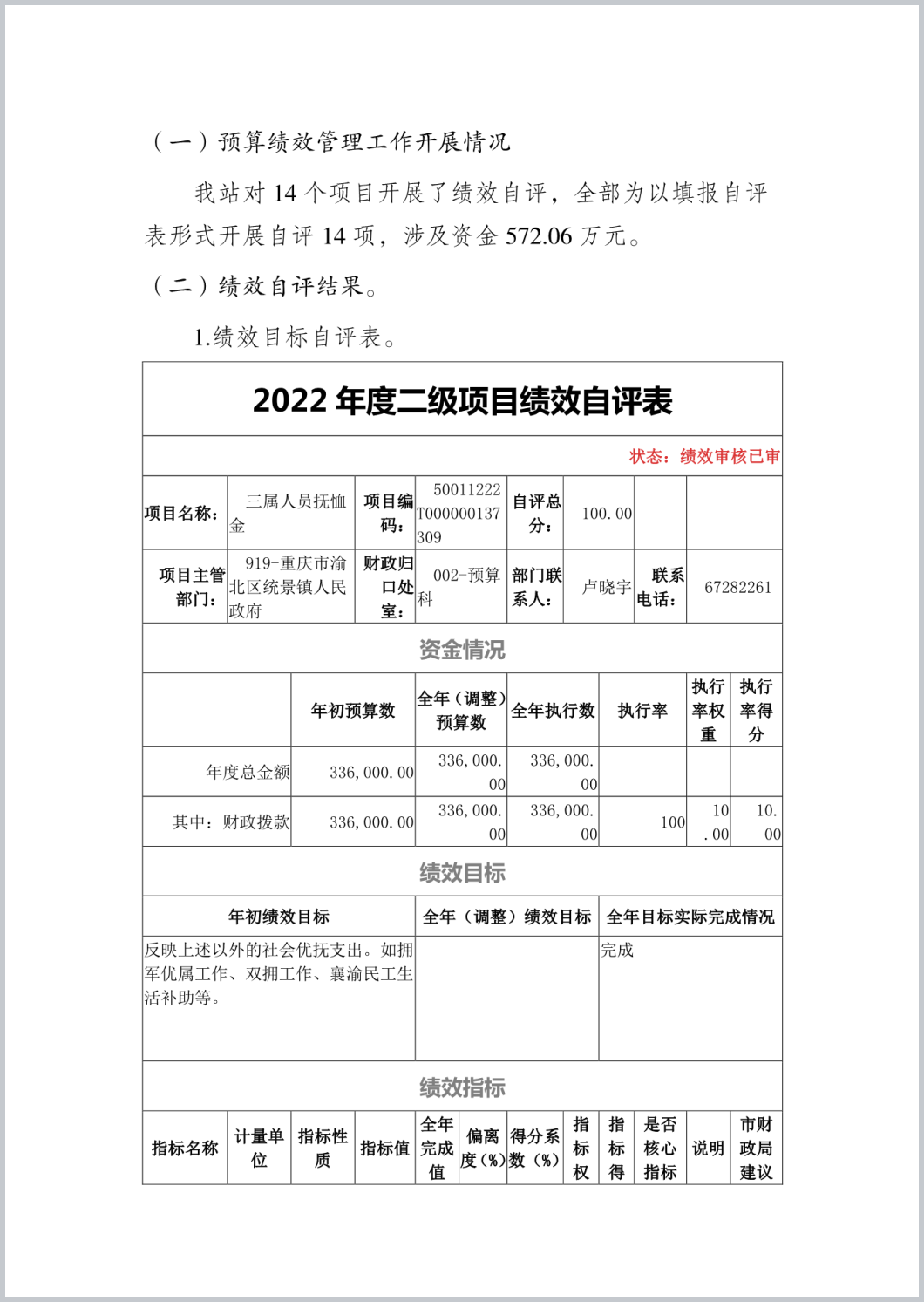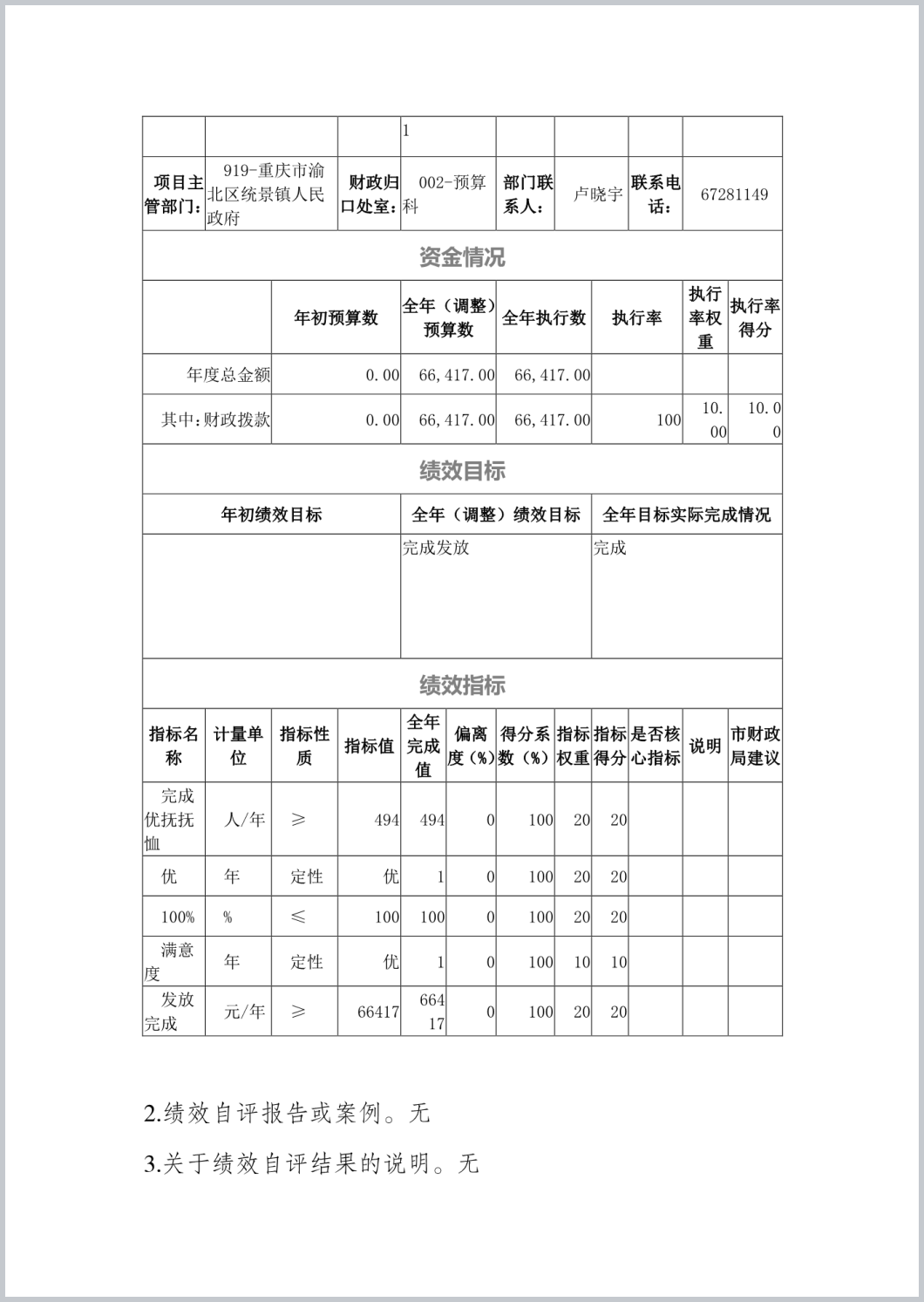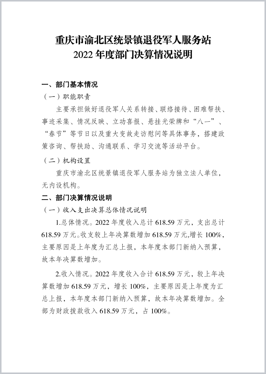 重庆市渝北区统景镇退役军人服务站2022年部门决算公开