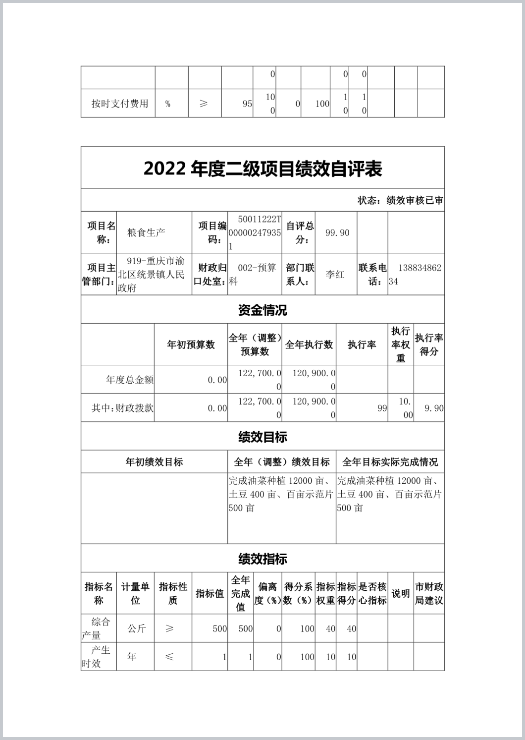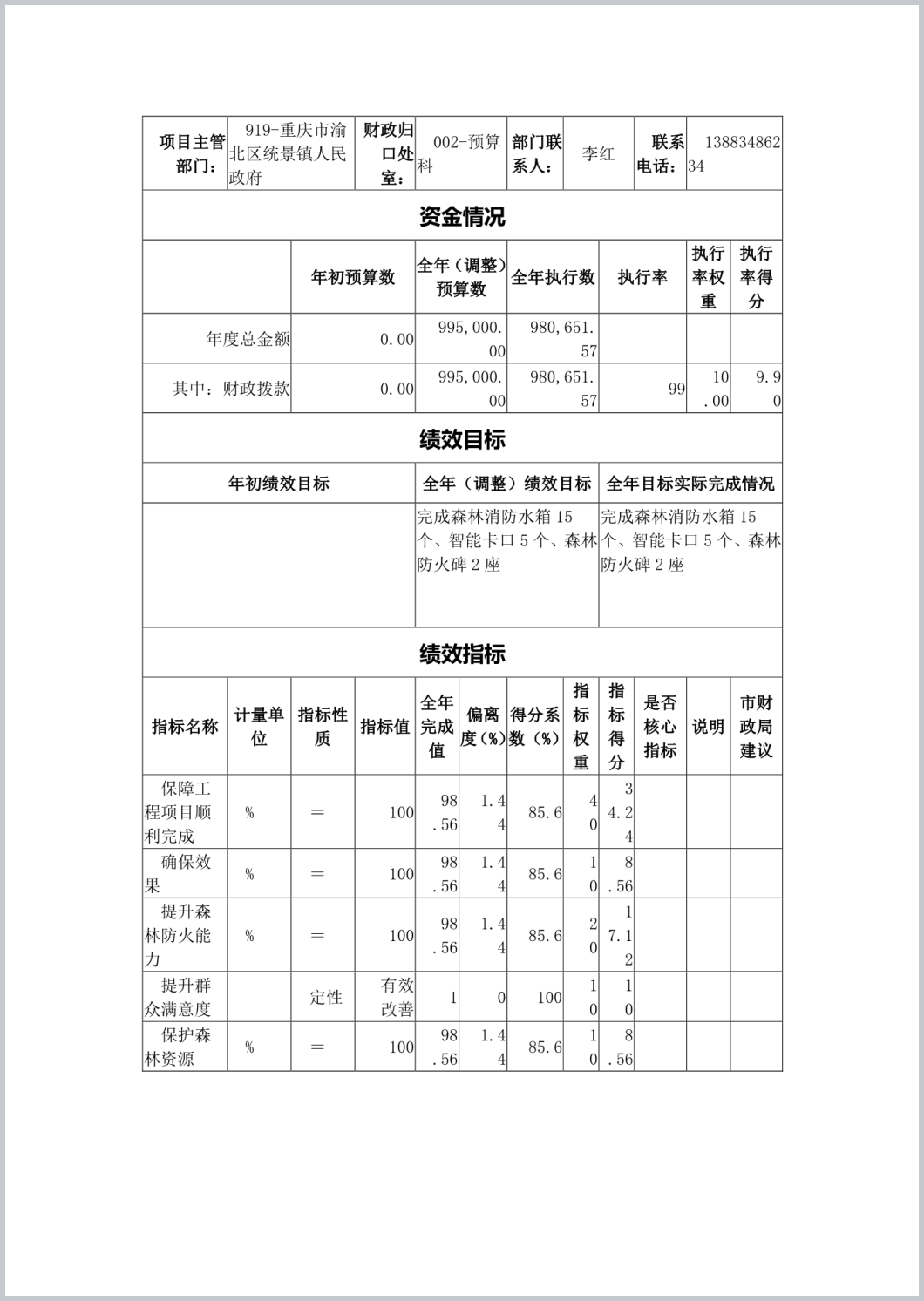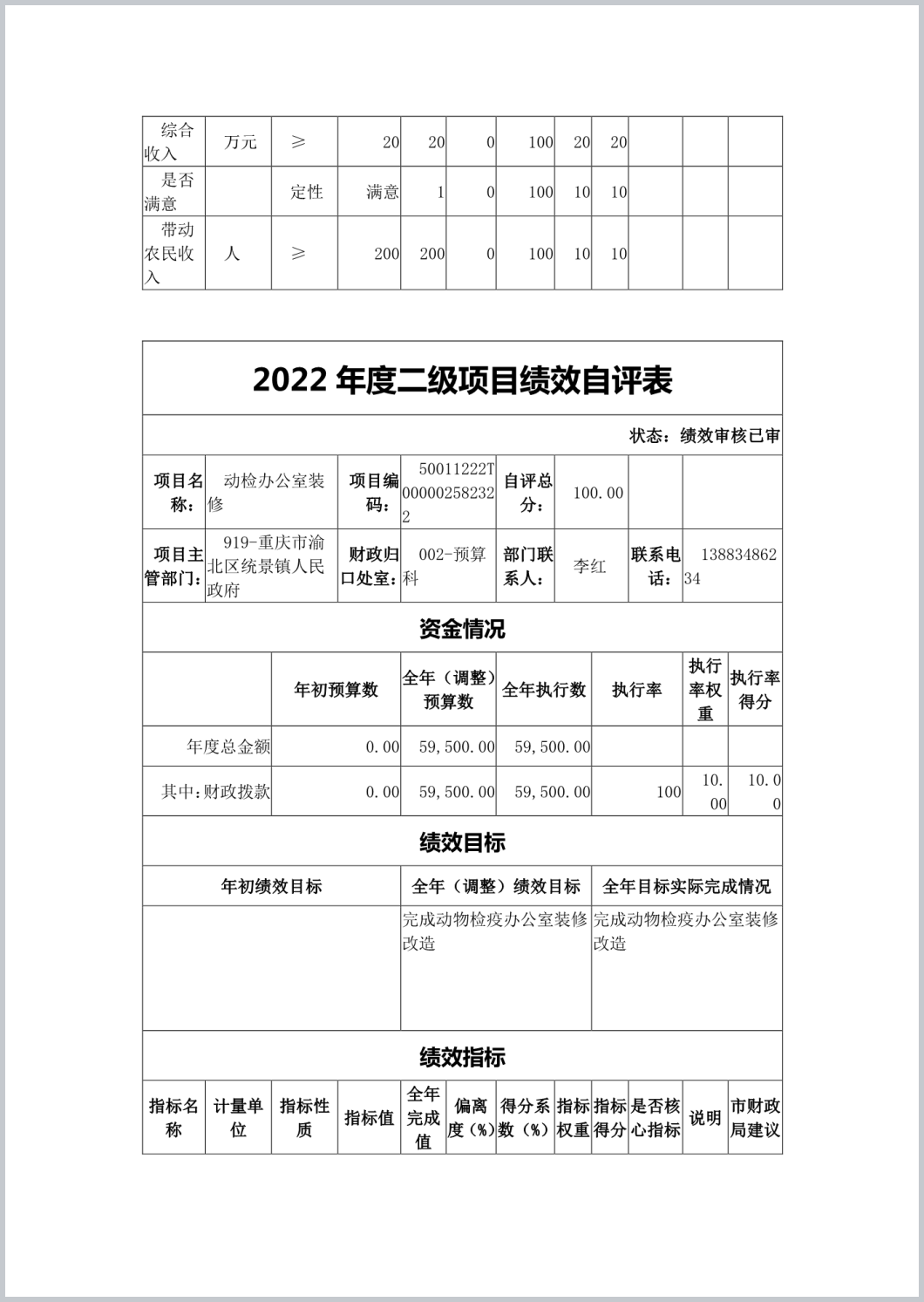 重庆市渝北区统景镇农业服务中心2022年部门决算公开