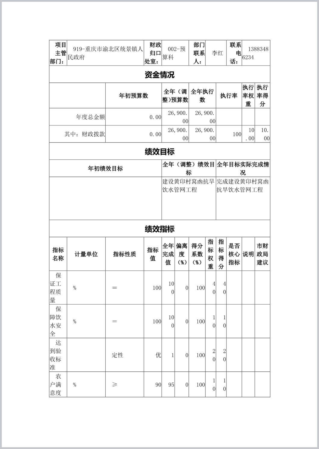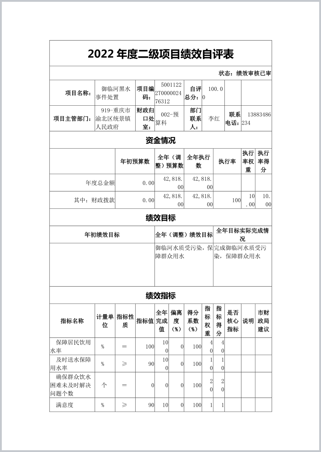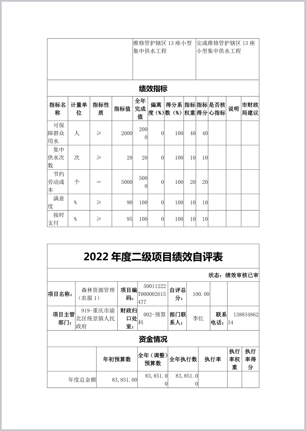 重庆市渝北区统景镇农业服务中心2022年部门决算公开