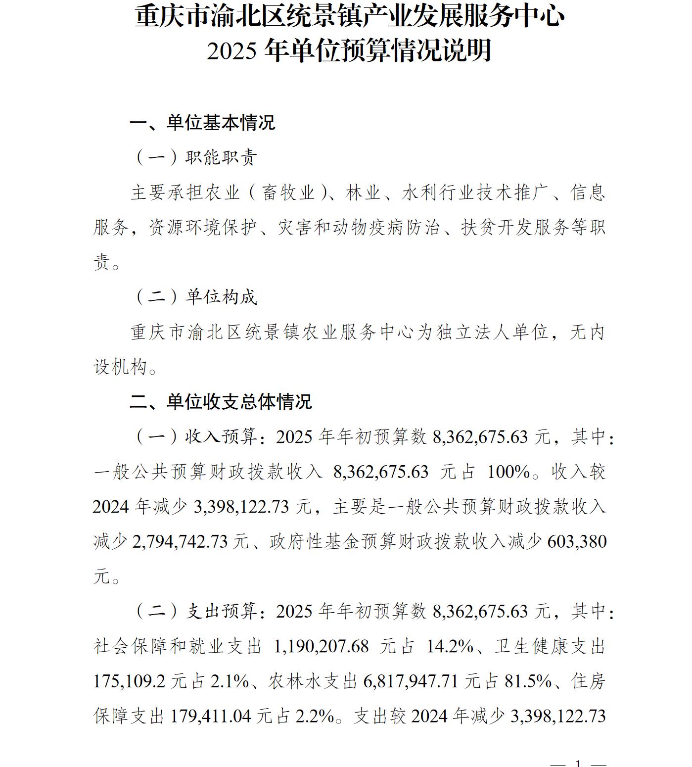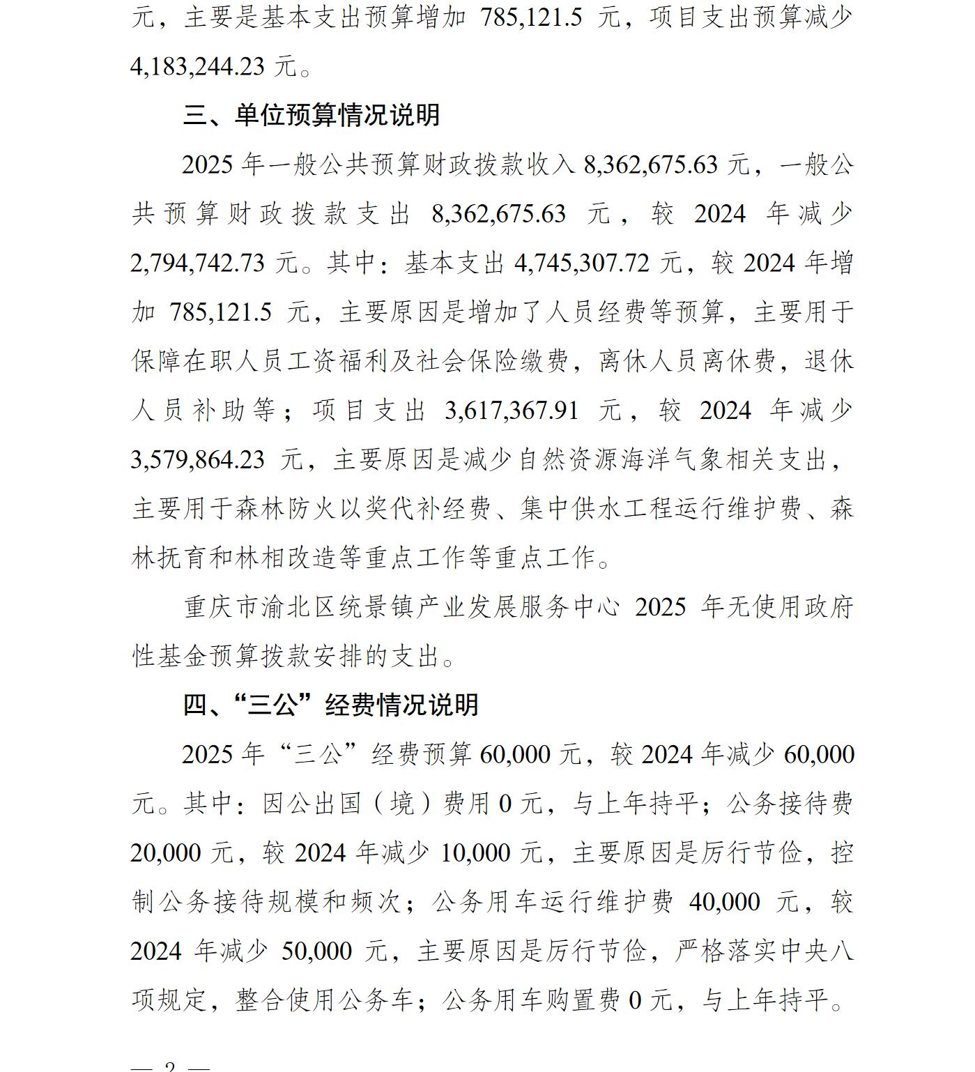 重庆市渝北区统景镇产业发展服务中心2025年单位预算情况说明