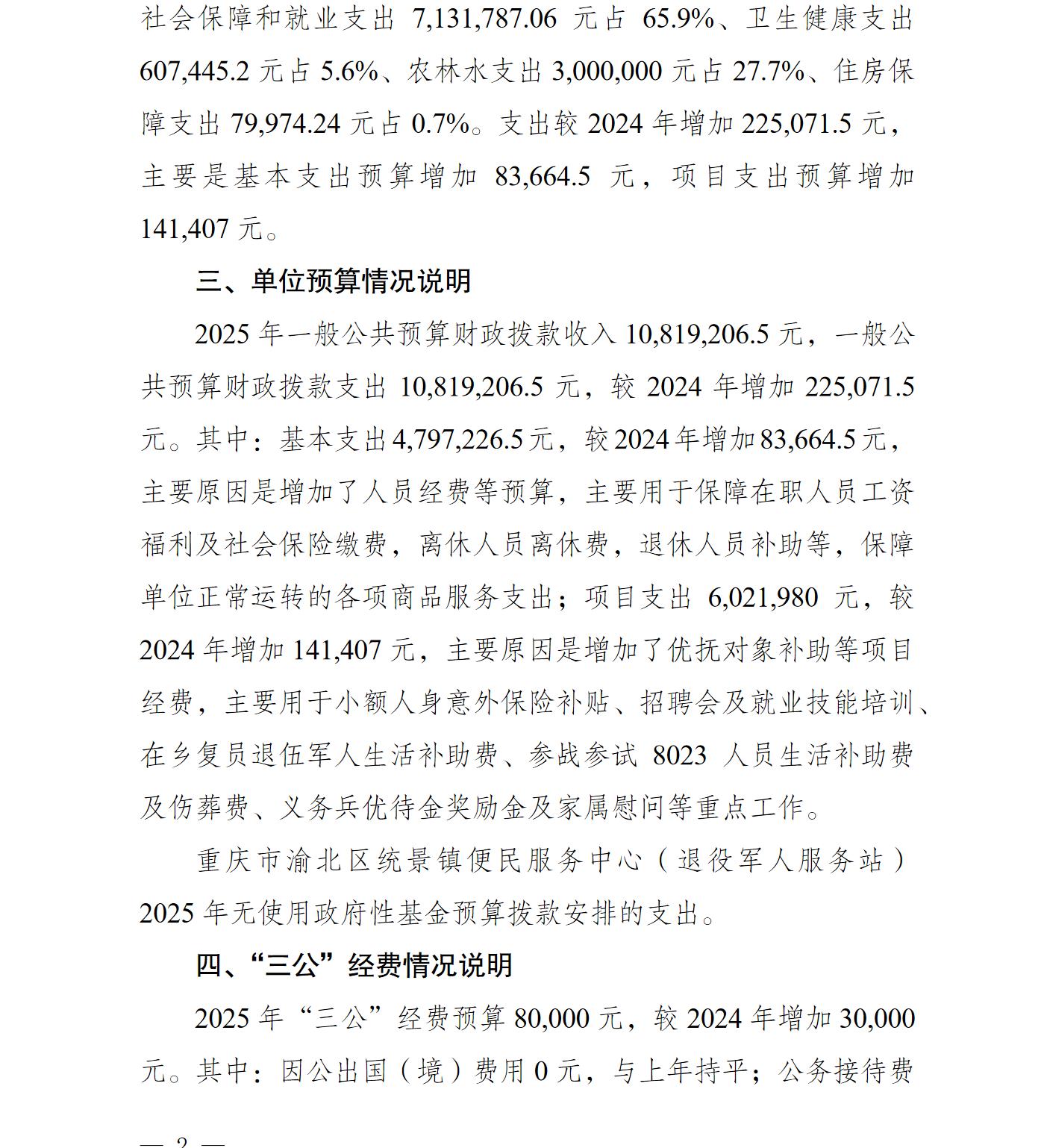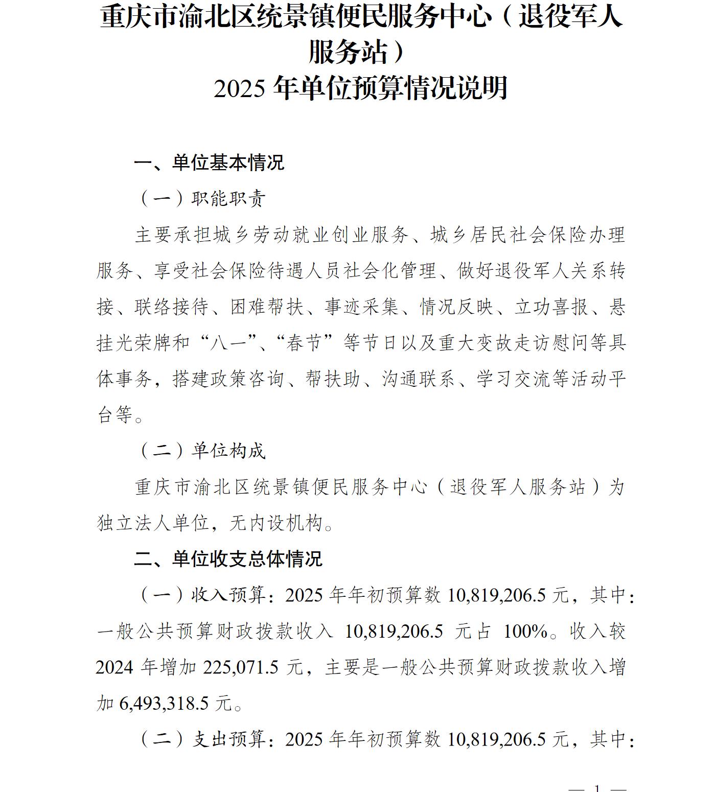 重庆市渝北区统景镇便民服务中心2025年单位预算情况说明