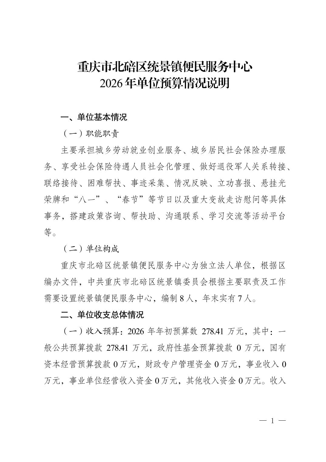 重庆市北碚区统景镇便民服务中心2026年单位预算情况说明及附表.pdf