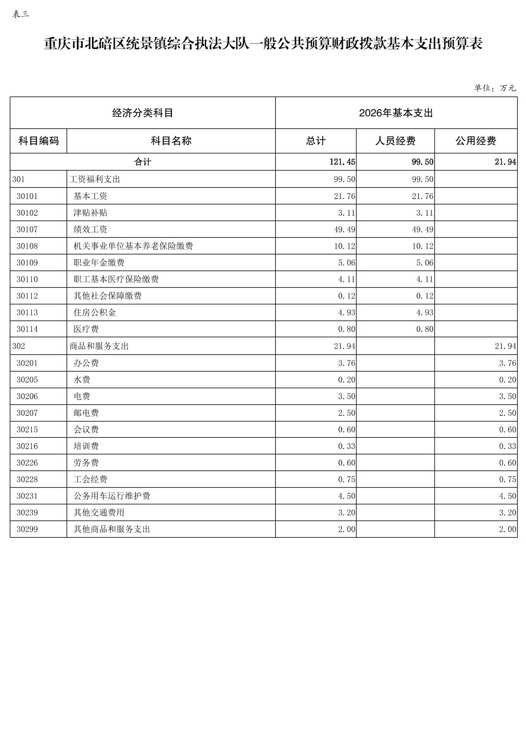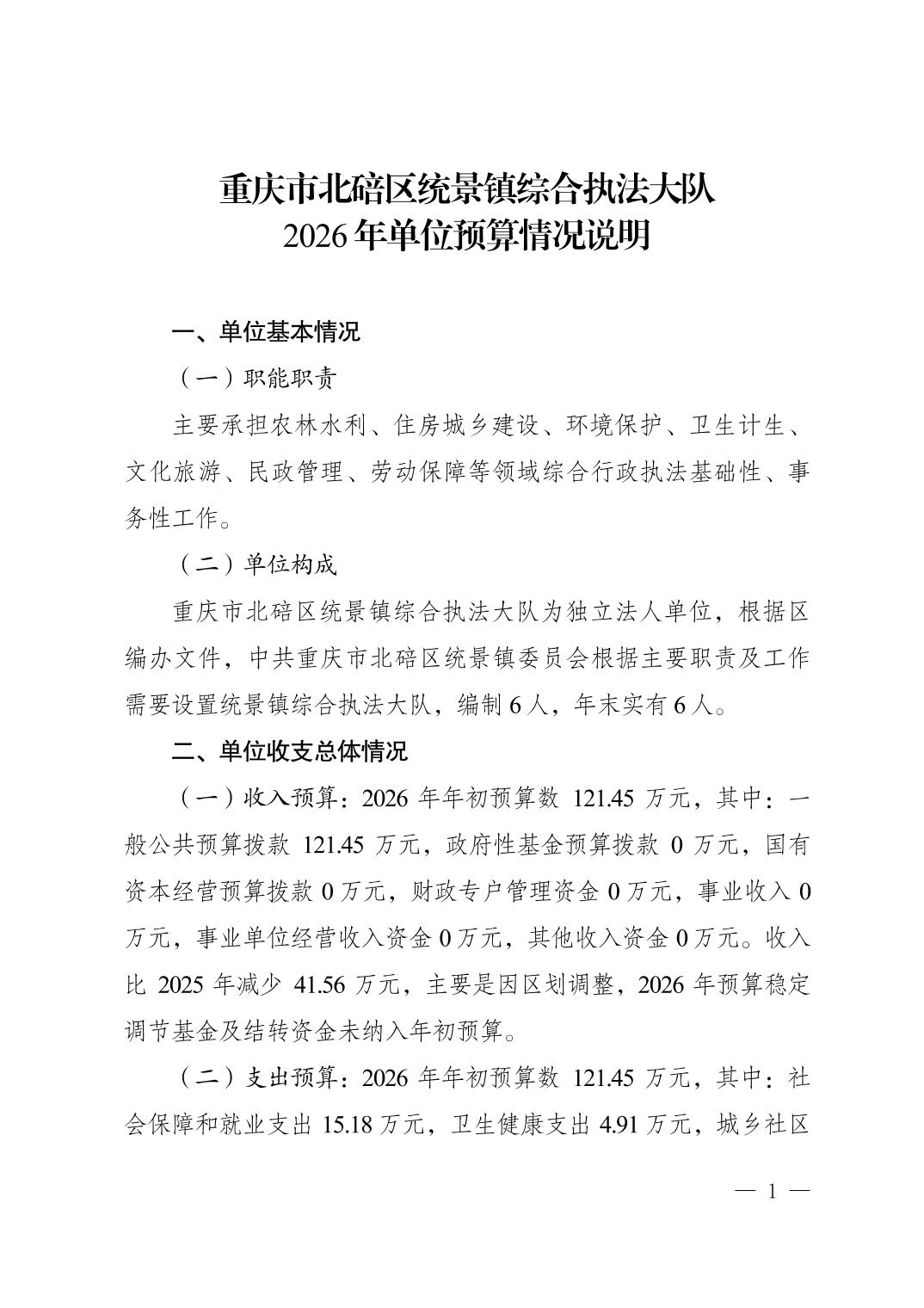 重庆市北碚区统景镇综合执法大队2026年单位预算情况说明及附表.pdf