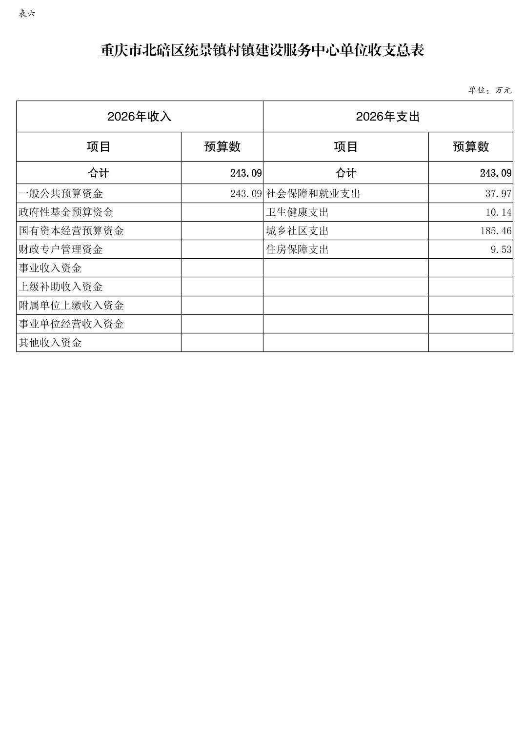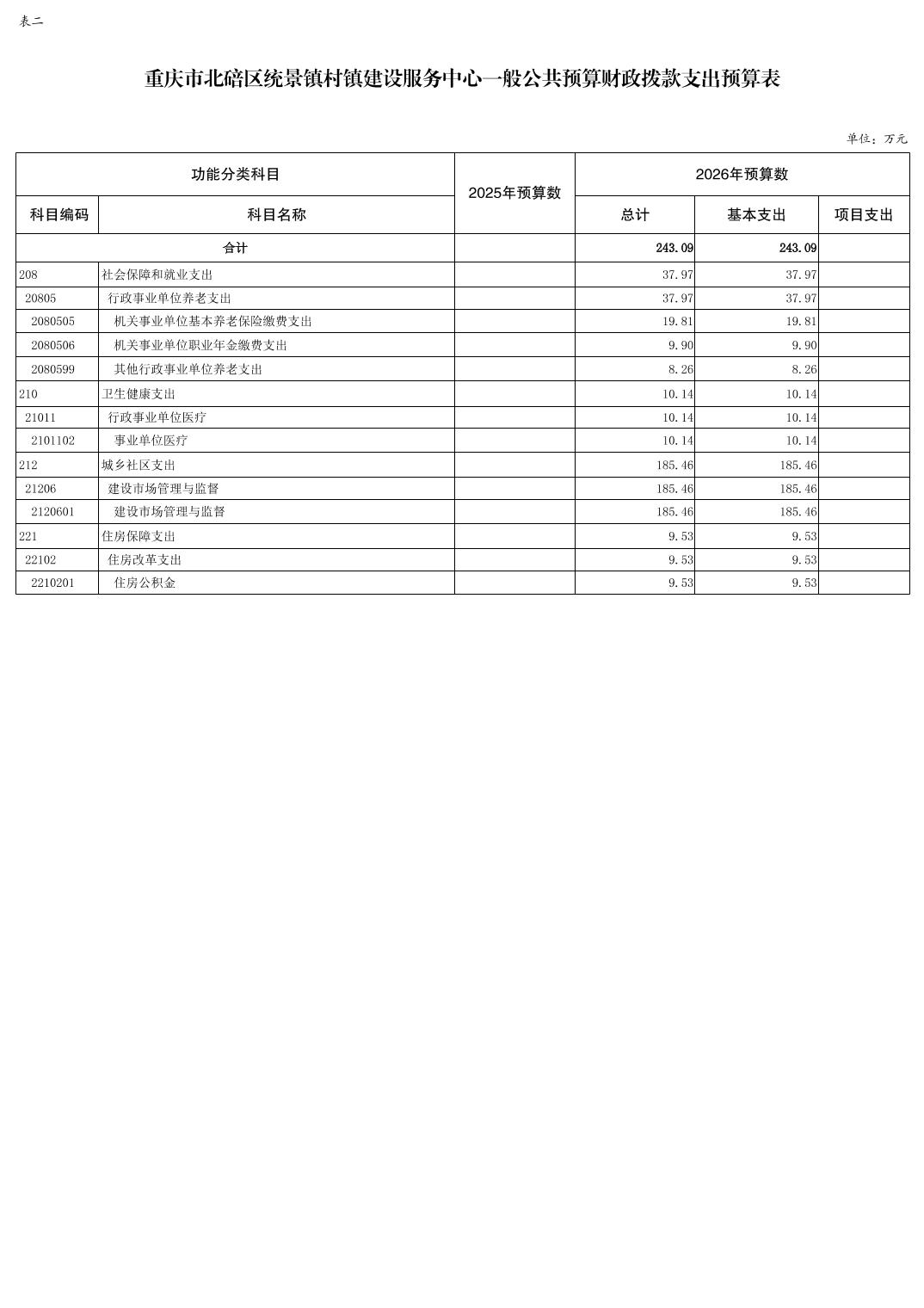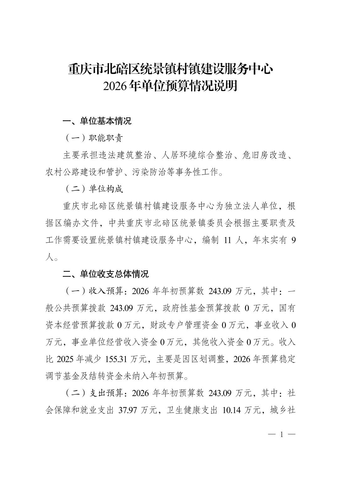 重庆市北碚区统景镇村镇建设服务中心2026年单位预算情况说明及附表.pdf