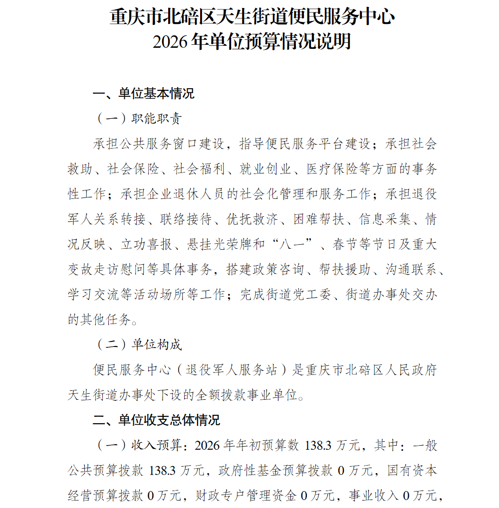 重庆市北碚区天生街道便民服务中心2026年单位预算情况说明及附表.pdf