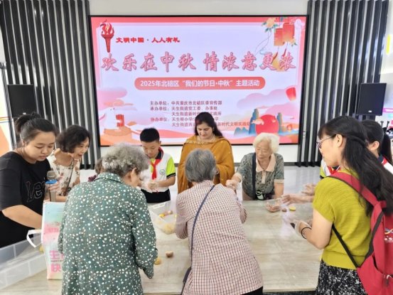 活动现场布置温馨雅致,先以趣味月饼制作拉开序幕,大家围坐在一起揉面团、包馅料、压模具,在动手协作中感受传统中秋习俗的乐趣,小朋友们发挥创意,制作出各种形状的月饼,整个现场洋溢着和谐融洽、其乐融融的温馨气息。