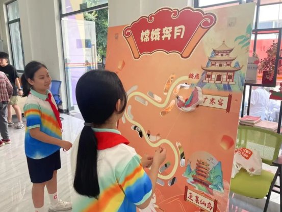 小朋友们配合默契,运用细线精准操控对板上设置的“嫦娥”道具,引导“嫦娥奔月”,展现了积极向上、勇于挑战的精神风貌。