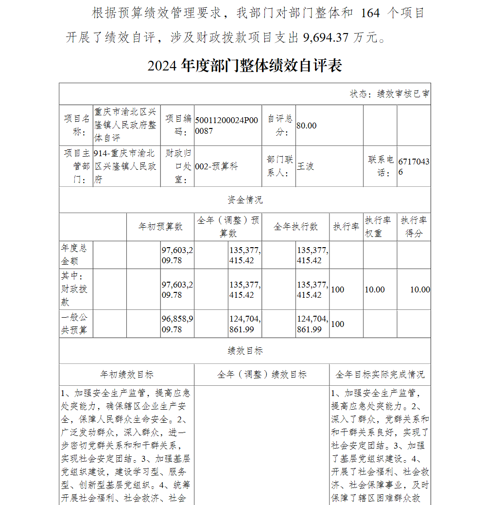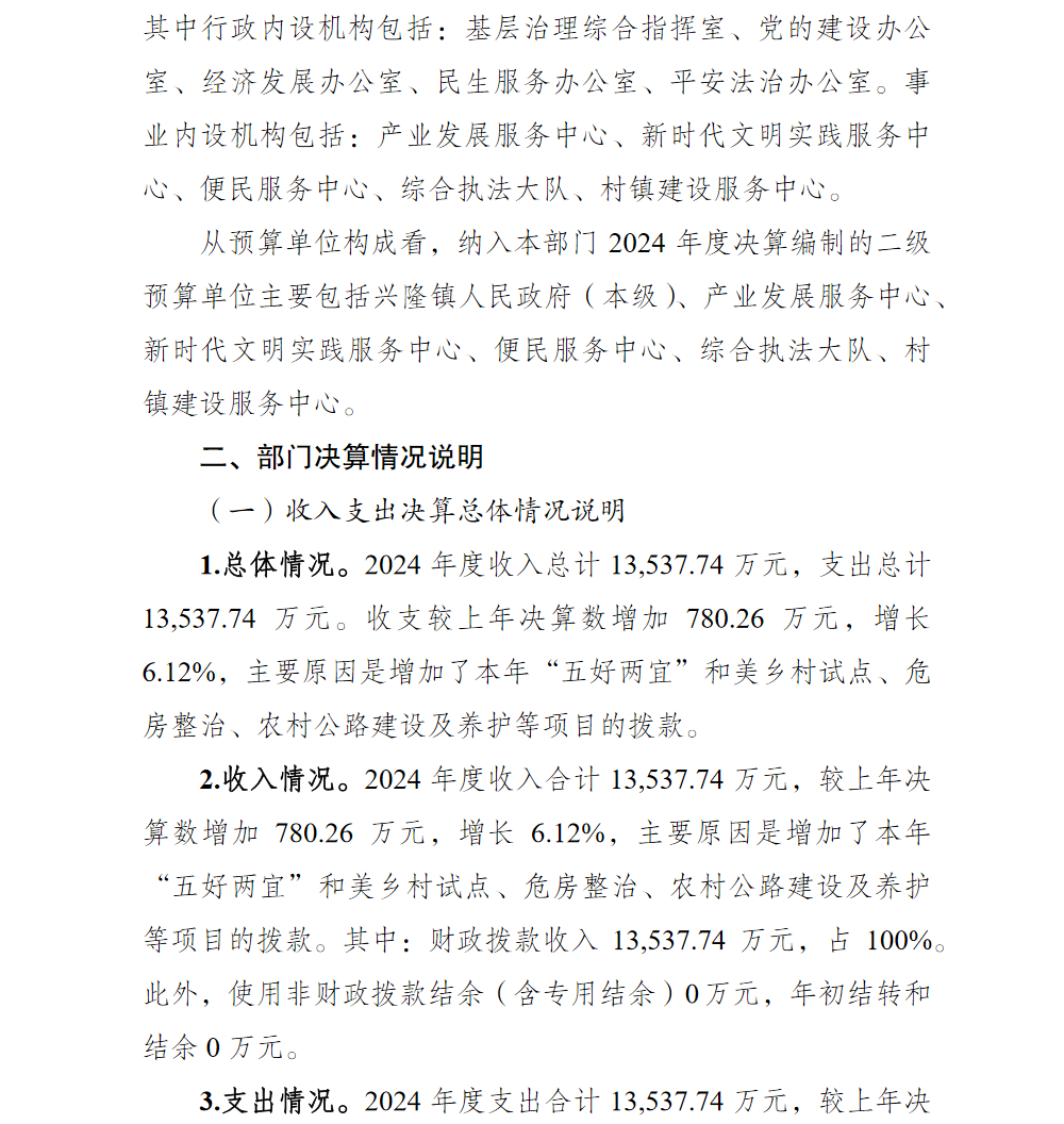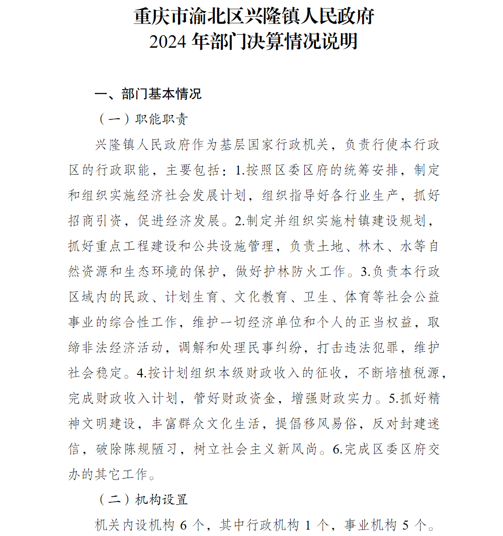重庆市渝北区兴隆镇人民政府2024年部门决算情况说明