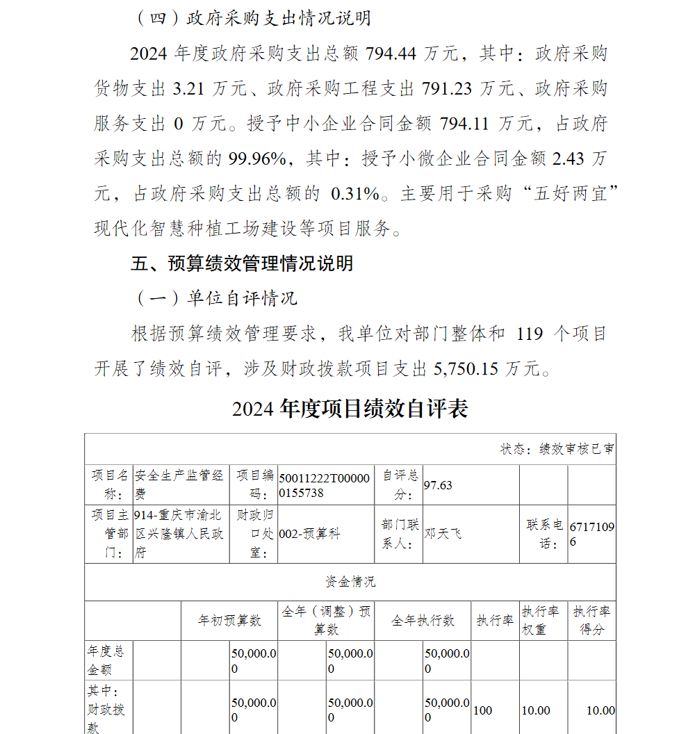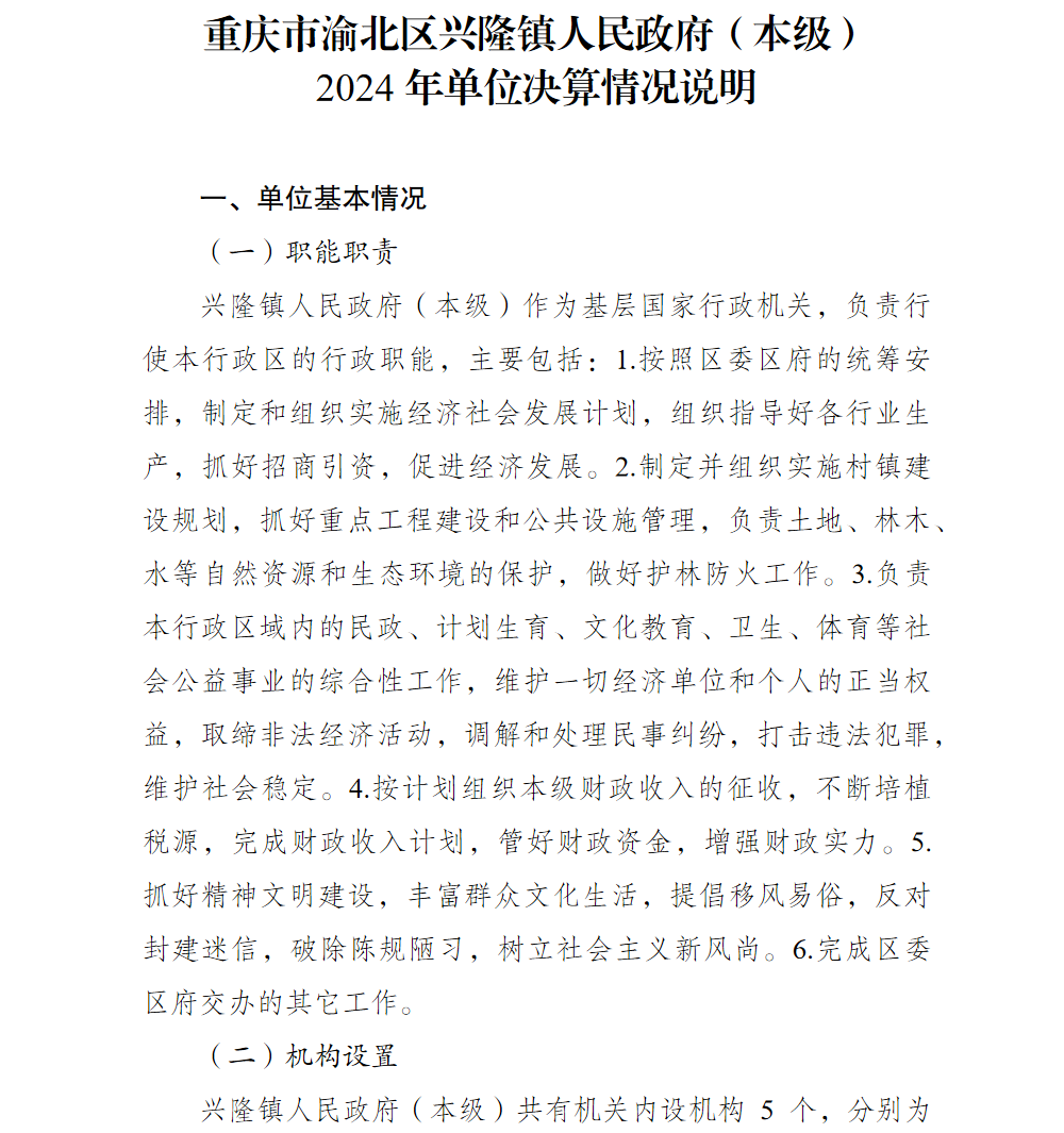 重庆市渝北区兴隆镇人民政府(本级)2024年单位决算情况说明