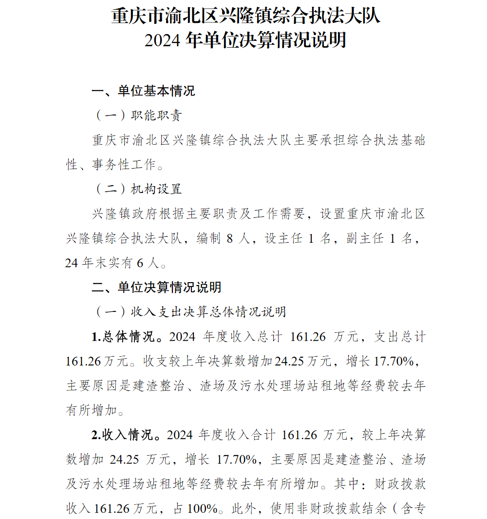重庆市渝北区兴隆镇综合行政执法大队2024年单位决算情况说明