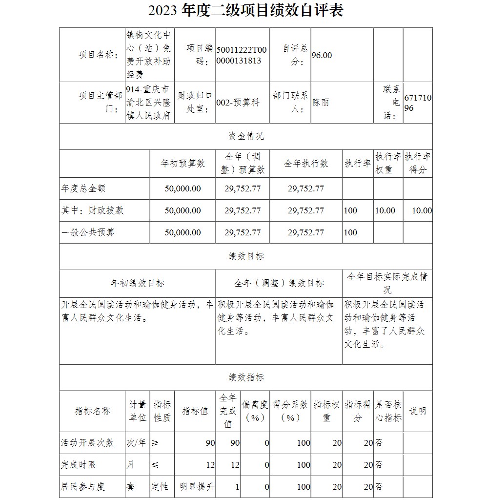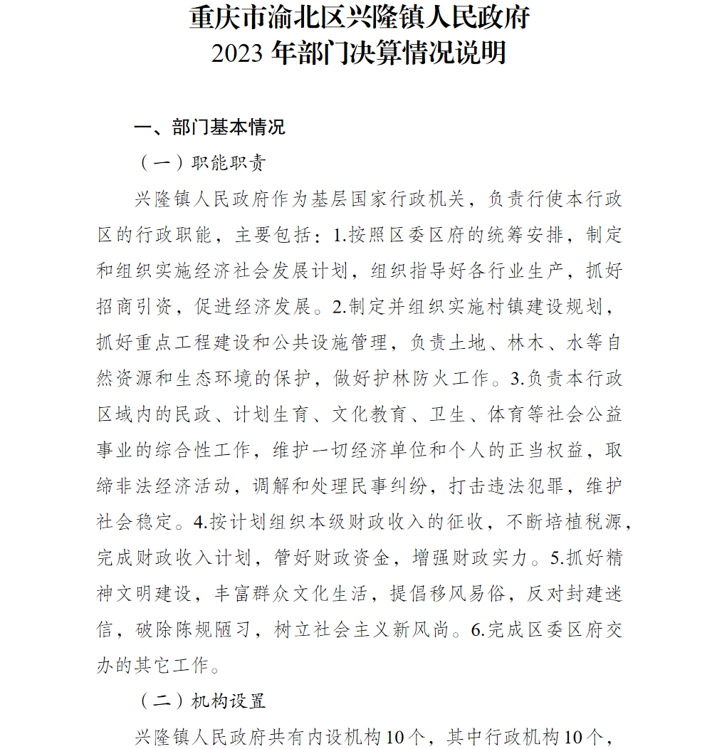 重庆市渝北区兴隆镇人民政府2023年部门决算公开