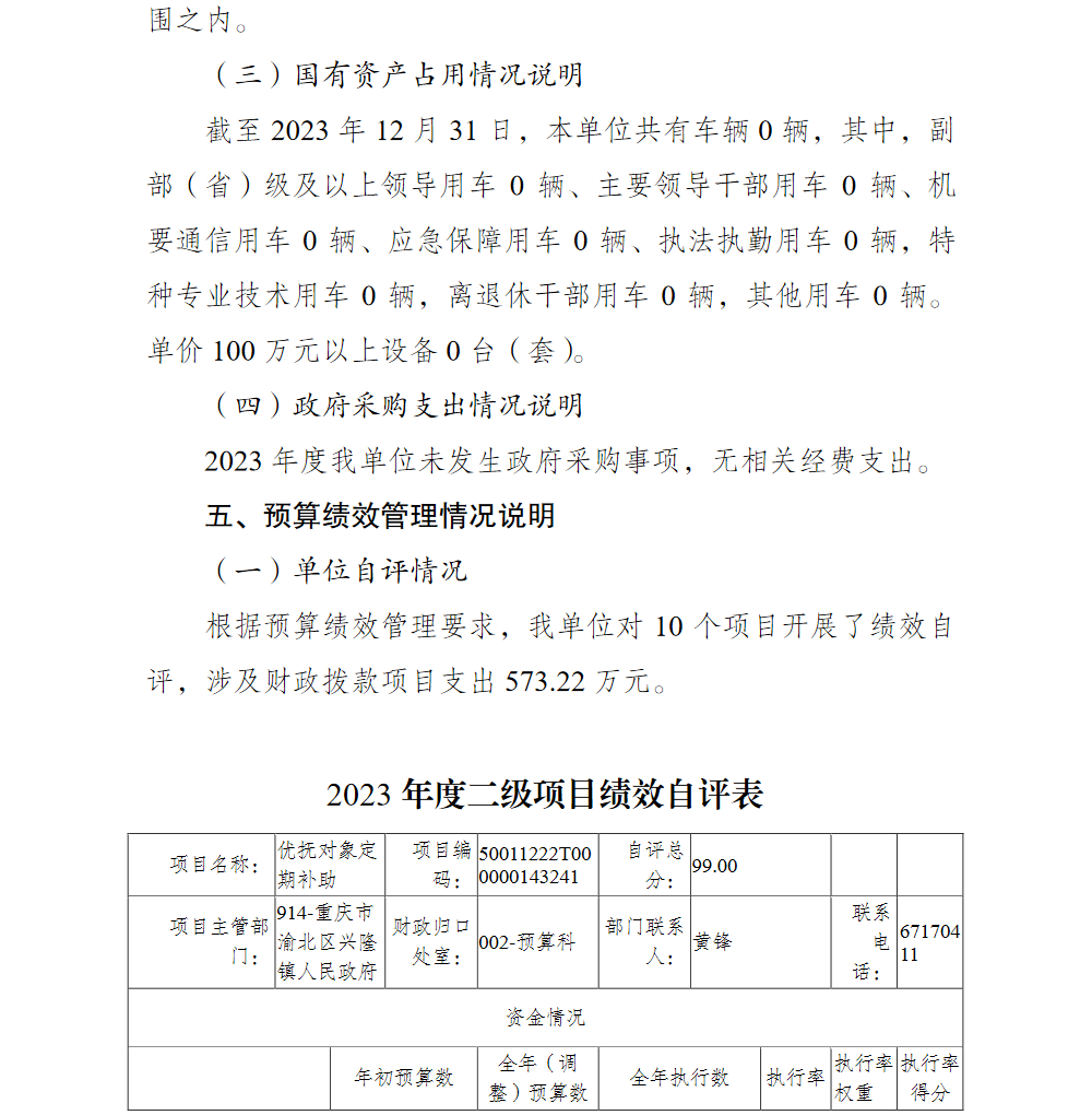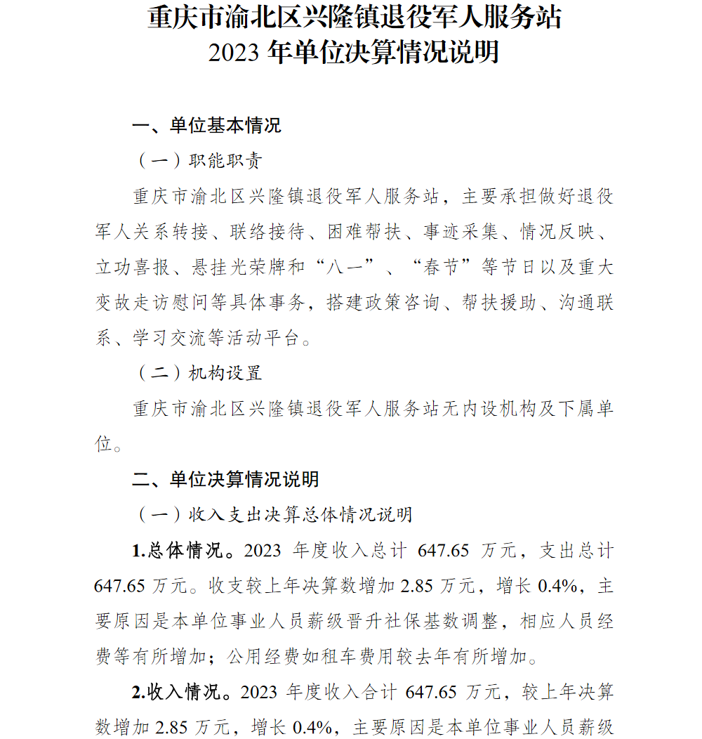 重庆市渝北区兴隆镇退役军人服务站2023年部门决算公开