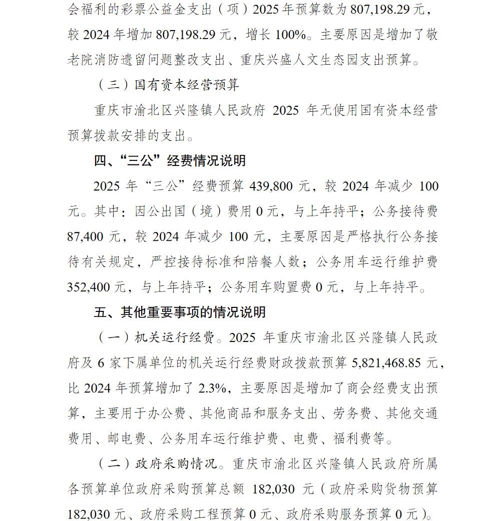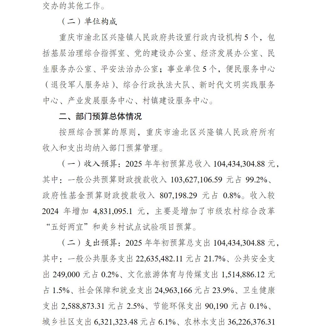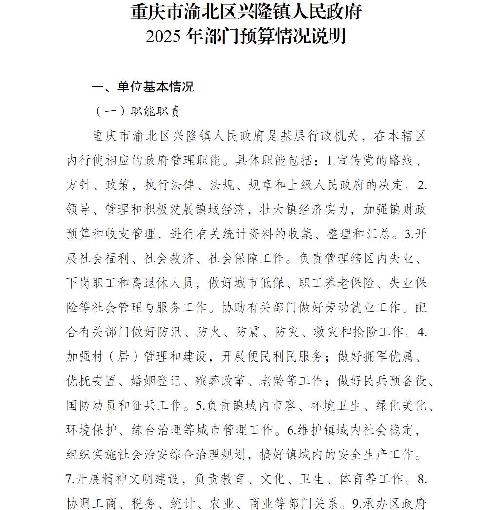 重庆市渝北区兴隆镇人民政府2025年部门预算情况说明