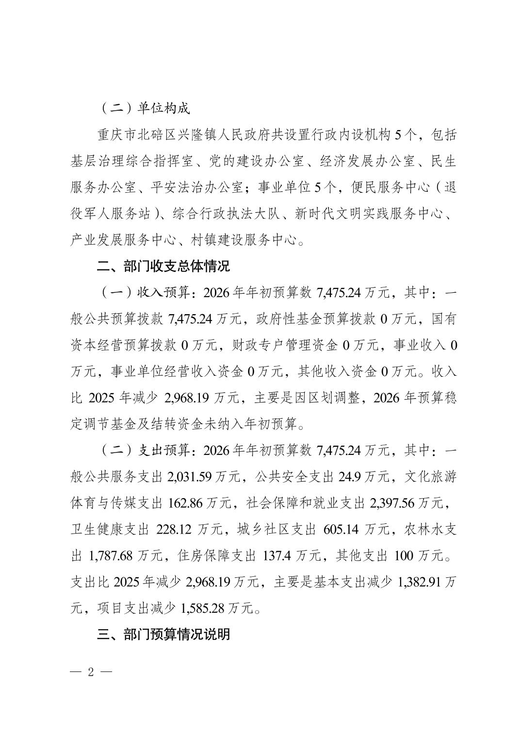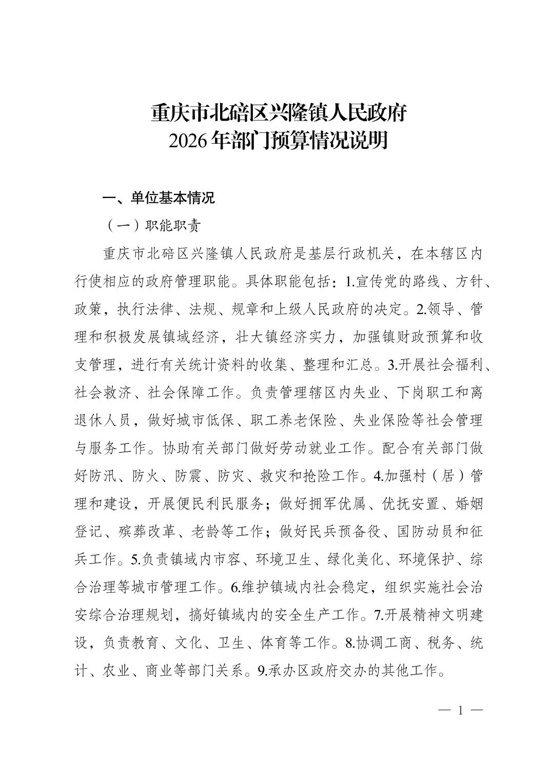 重庆市北碚区兴隆镇人民政府2026年部门预算情况说明.pdf