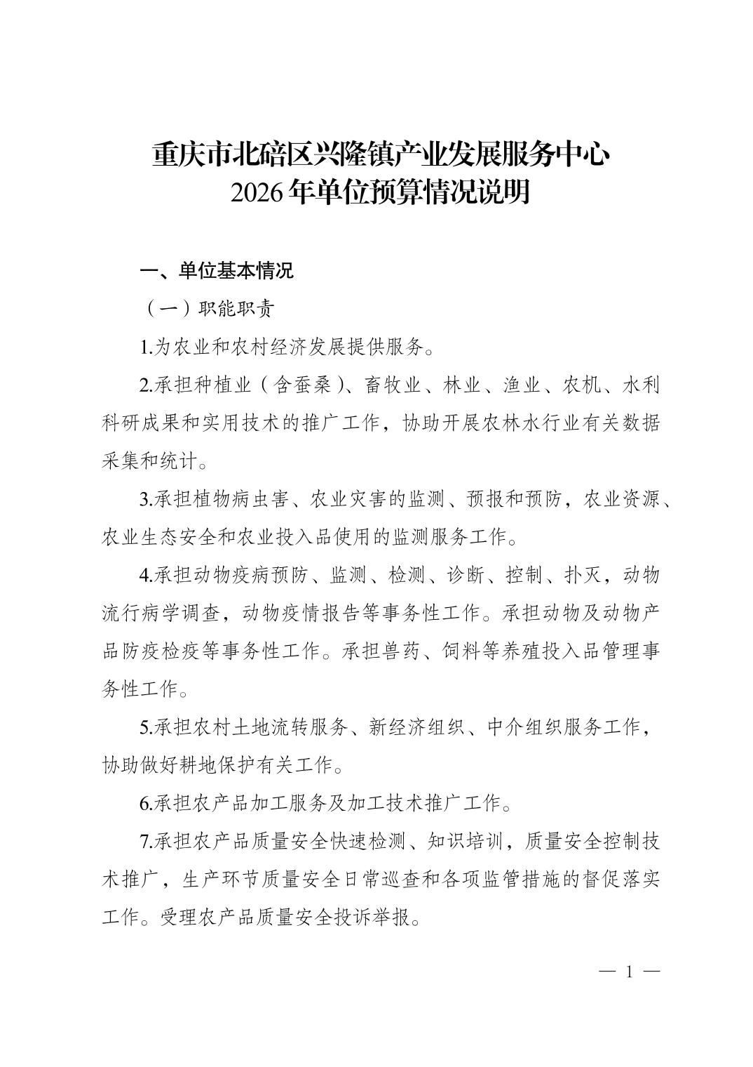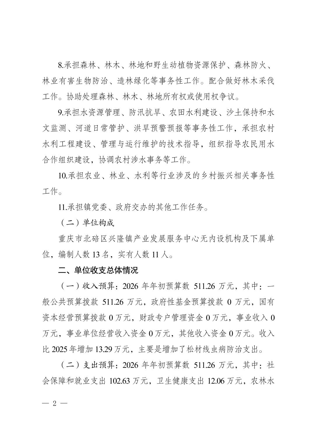 重庆市北碚区兴隆镇产业发展服务中心2026年单位预算情况说明.pdf