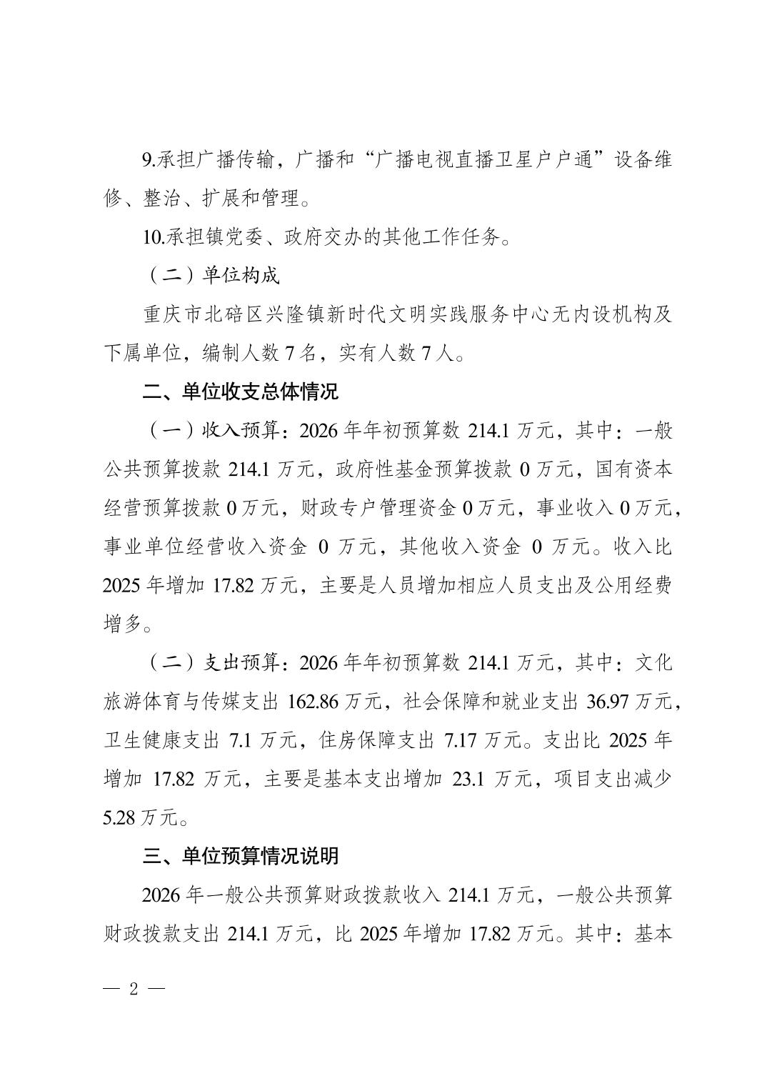 重庆市北碚区兴隆镇新时代文明实践服务中心2026年单位预算情况说明.pdf