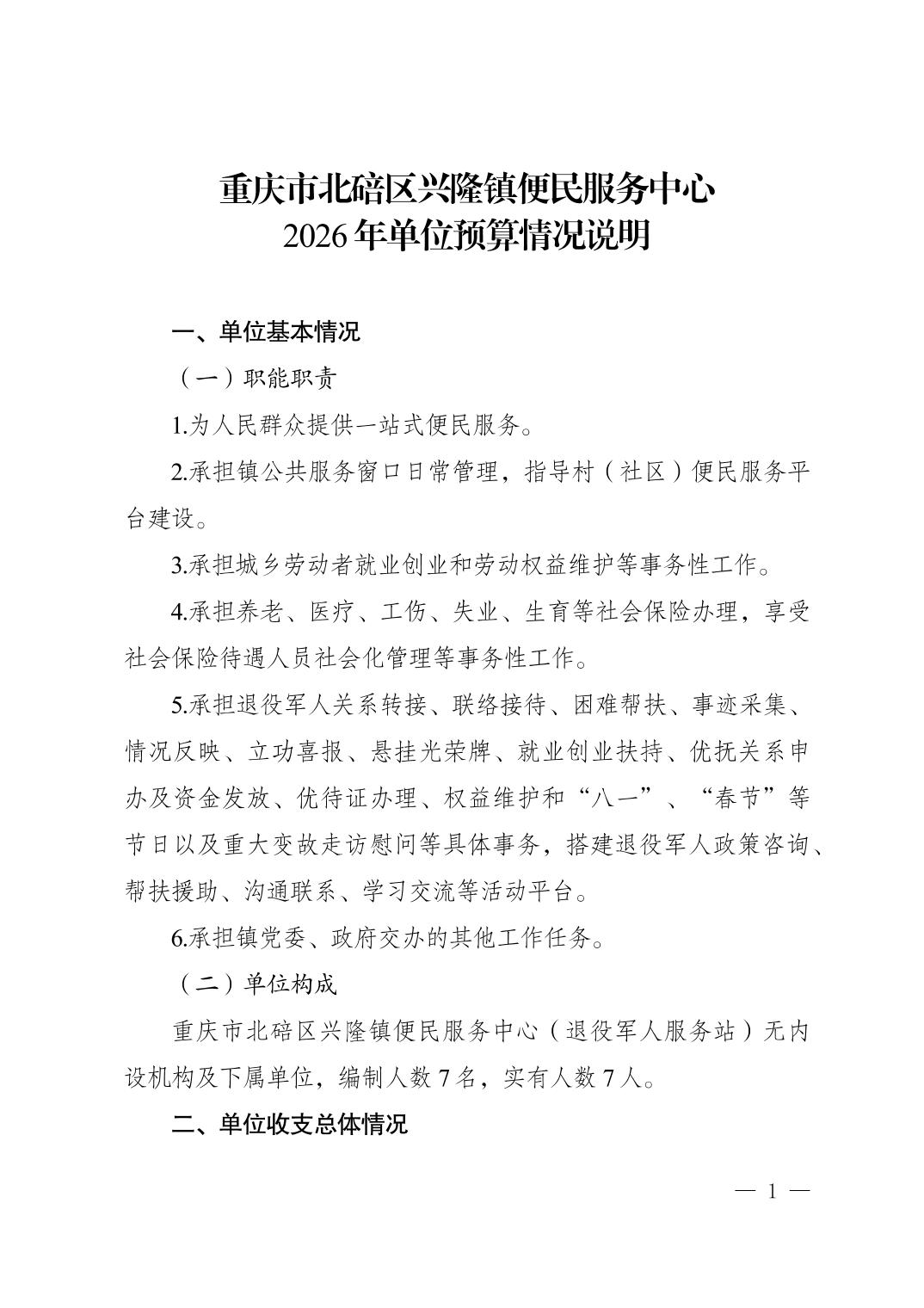 重庆市北碚区兴隆镇便民服务中心2026年单位预算情况说明.pdf