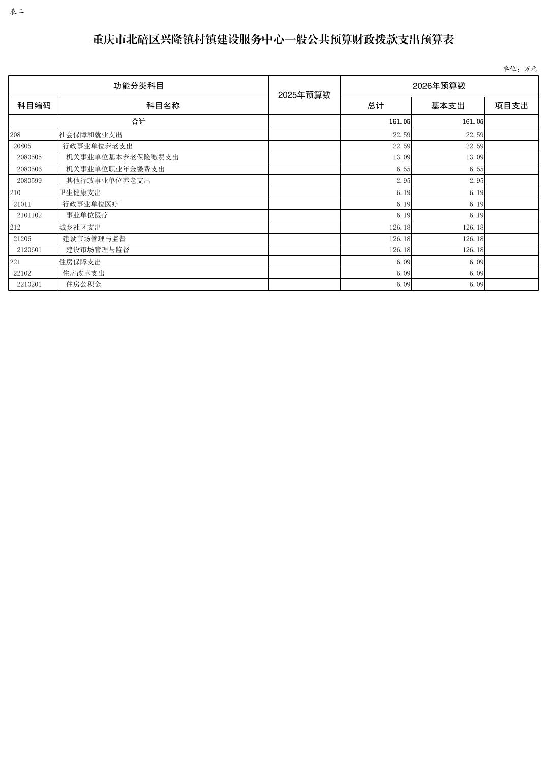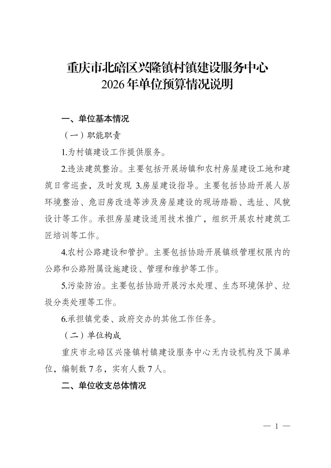 重庆市北碚区兴隆镇村镇建设服务中心2026年单位预算情况说明.pdf