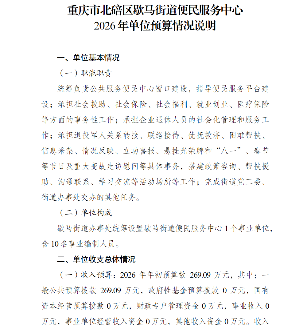 重庆市北碚区歇马街道便民服务中心2026年单位预算情况说明及附表.pdf