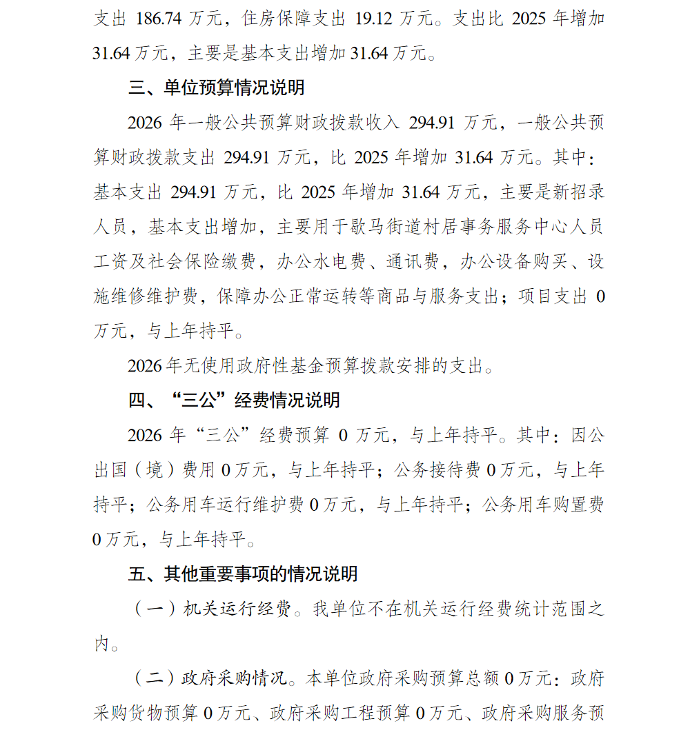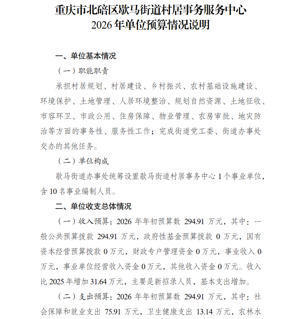 重庆市北碚区歇马街道村居事务服务中心2026年单位预算情况说明及附表.pdf