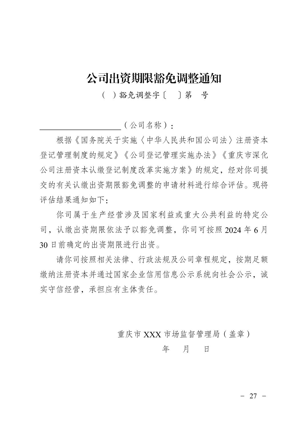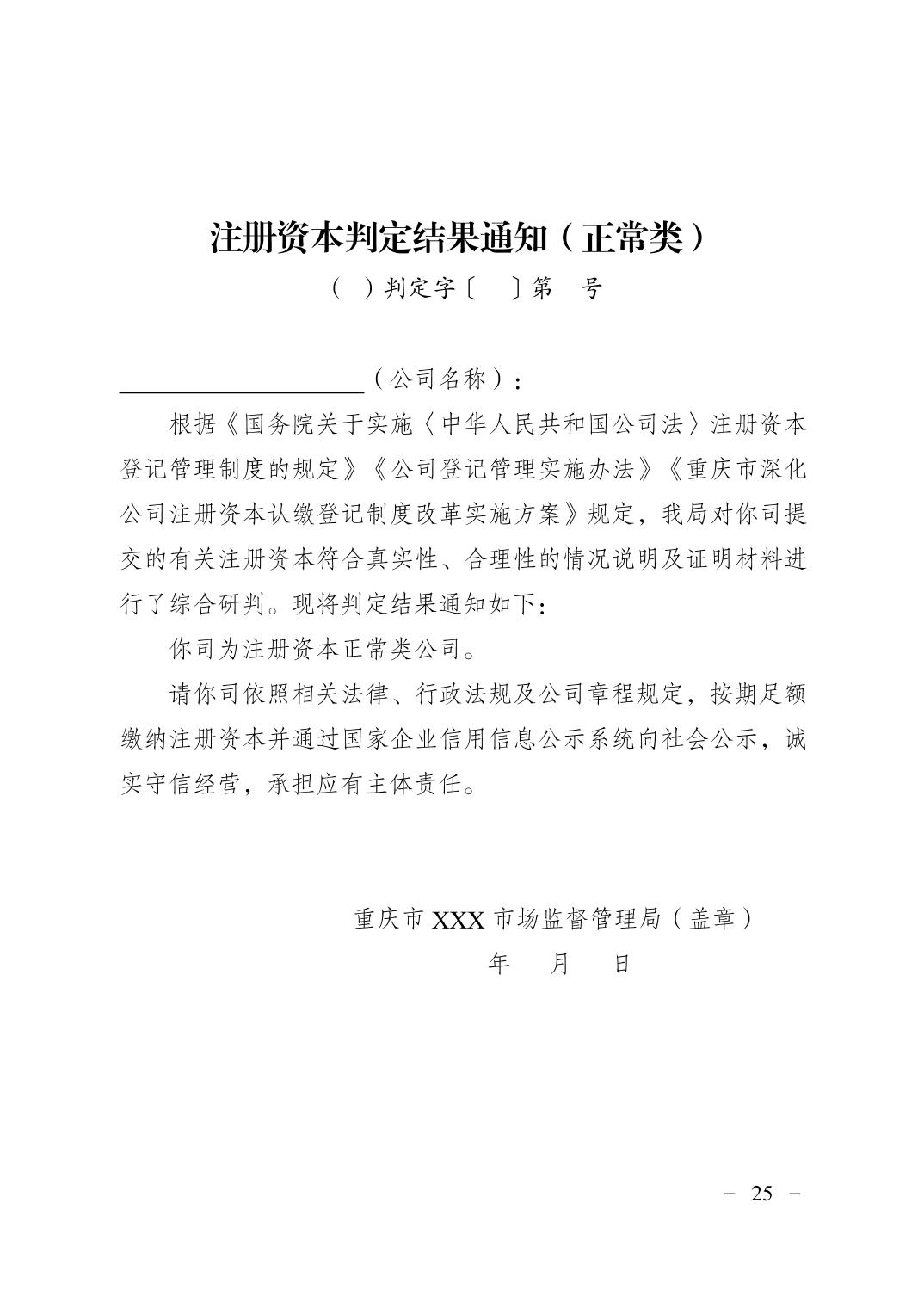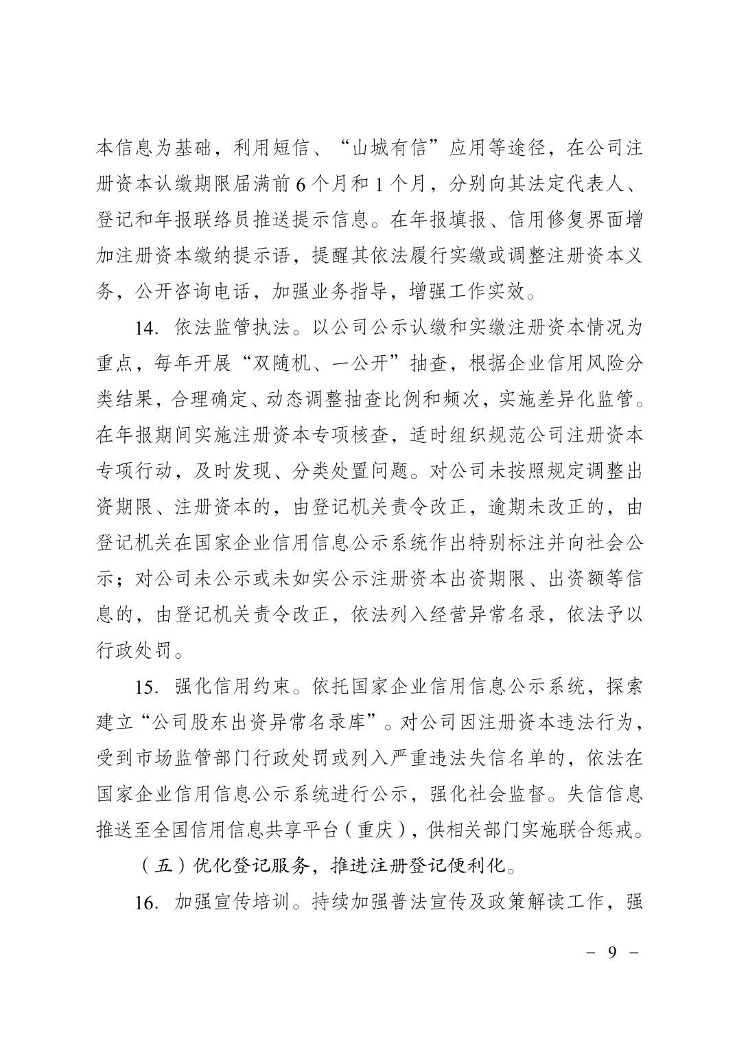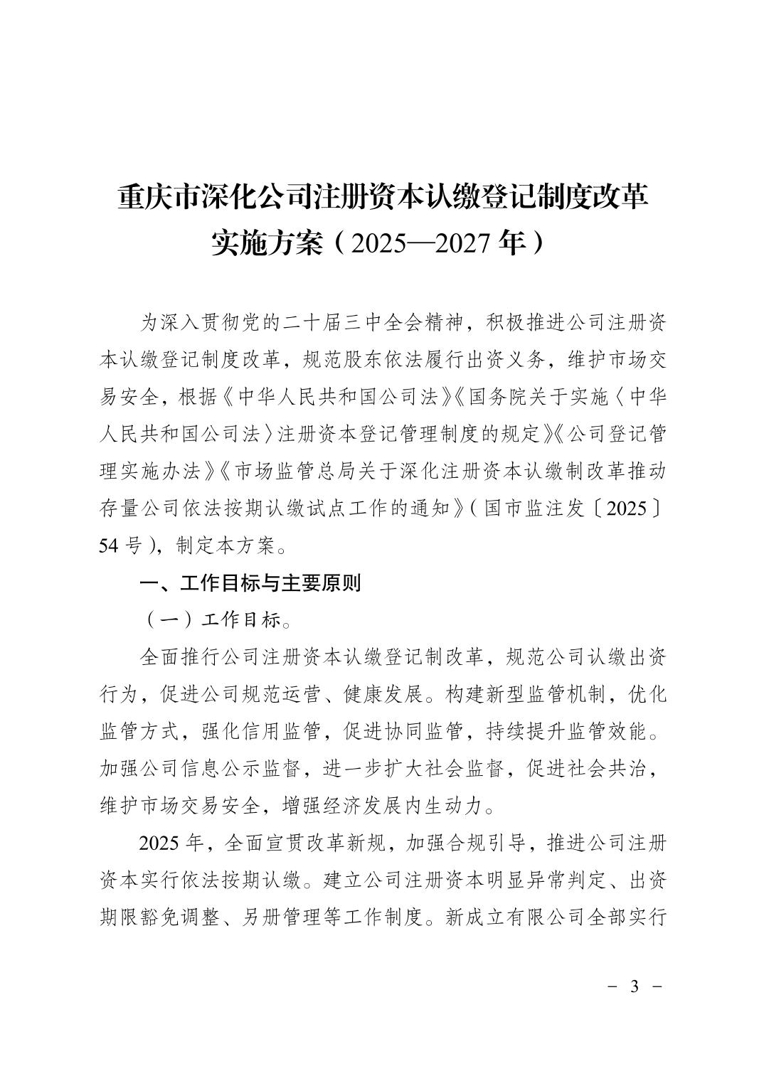 重庆市市场监督管理局关于印发《重庆市深化公司注册资本认缴登记制度改革实施方案(2025—2027年)》的通知