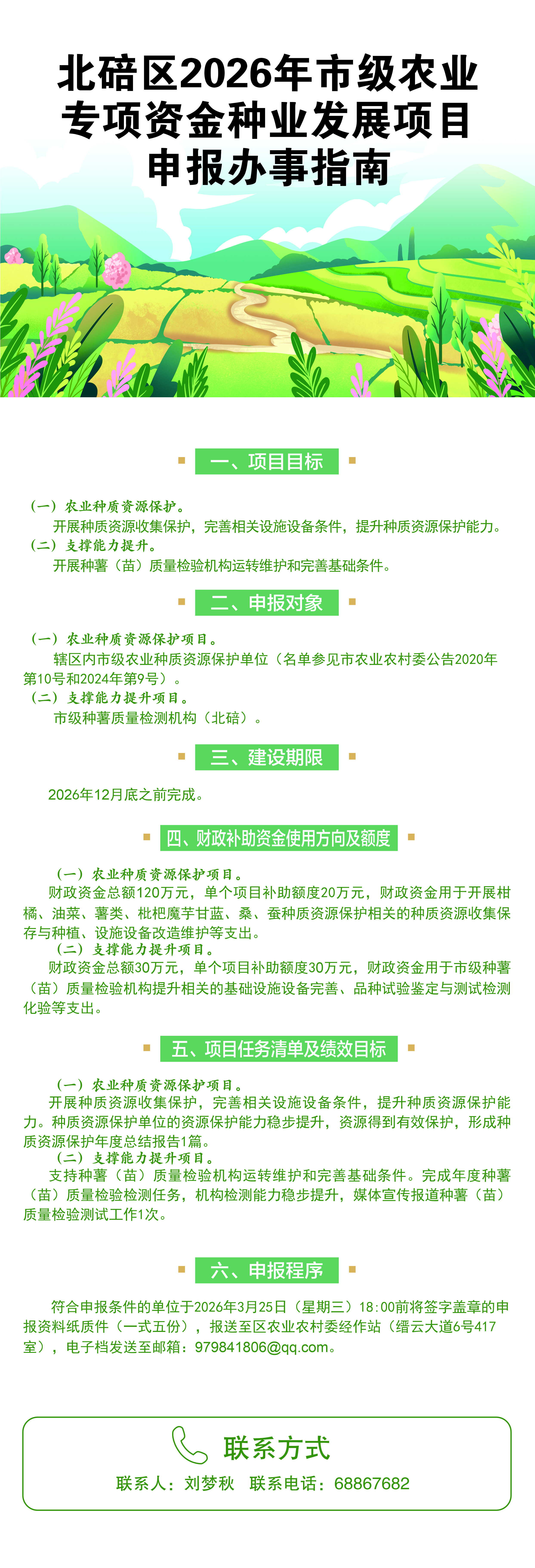 一图读懂——北碚区2026年市级农业专项资金种业发展项目申报办事指南