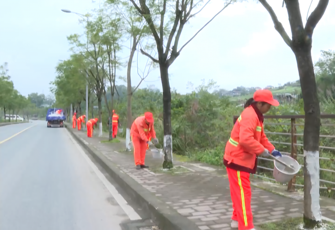 为做好冬季树木养护工作,增强其防寒、抗冻、防治病虫害的能力。连日来,北碚区交通运输委组织公路养护人员对辖区内各国省干线公路两侧的行道树进行涂白作业,为行道树穿上“冬衣”。